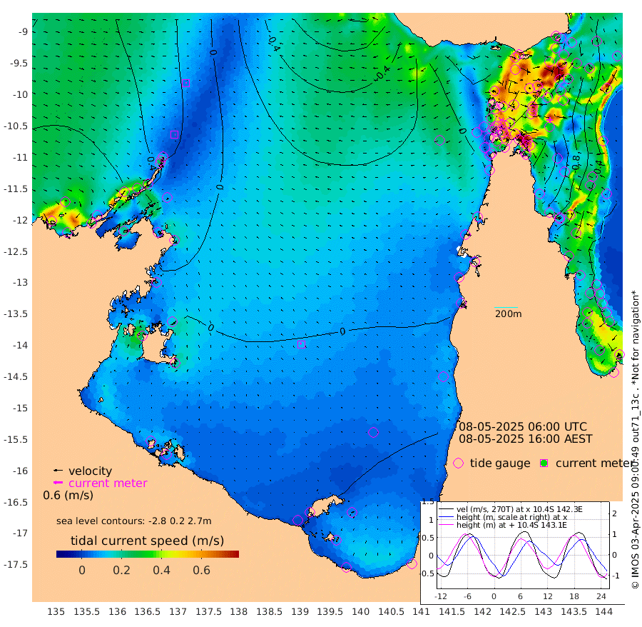 2cm/s 101T +3cm/s rms + 7cm/s -42T. ARA-GOC87 57m 11cm/s -52T +3cm/s rms + 2cm/s -2T. ARA-GOC87 60m 6cm/s 74T +2cm/s rms + 3cm/s 61T. ARA-GOC87 47m -117cm Daru -116cm Bobo Island -46cm Meer Island Barge -69cm Bramble Cay -101cm Unnamed Cay -104cm Pearce Cay -95cm Stephens Island -95cm Merrie England Shoals -119cm Mutacomal Reef -82cm Darnley Island Barge -55cm East Cay -100cm Yorke Island Barge -109cm Rennel Island -111cm Aureed Island -117cm Dungeness Reef -118cm Zagai Island -126cm Yam Island -79cm Dauan Island -79cm Saibai Island -82cm Phipi Reef -118cm Warrior Reef - West -75cm Mabuiag Island Barge -112cm Half Way Island -123cm Coconut Island -123cm Dugong Islet -125cm Poll Island -125cm Kirkcaldie Reef -132cm Suarji Island -114cm Sue Islet -43cm Hawkesbury Island -112cm Alert Patches -123cm Twin Island -42cm Badu Island -125cm St Pauls (Moa Island) -74cm Kubin (Moa Island) -99cm Ince Point -88cm Thursday Island -90cm Nardana Patches -66cm Turtle Head -64cm Round Island -38cm Goods Island -24cm Booby Island -37cm White Rocks Area -35cm Carpentaria -111cm Papou Point -50cm Bampfield Head -11cm Crab Island -35cm Red Wallis Island -66cm Packe Island -139cm Harrington Reef -59cm Herald Camp -36cm Sharp Point -56cm Red Island Point -95cm Possession Island -117cm Alpha Rock -128cm Frederick Point -125cm Wyborn Reef Light -128cm Tetley Island -53cm Triangle Reef -124cm Turtle Head Island -56cm Maclennan Cay -22cm Raine Island -94cm Mcsweeny Reef -79cm Collette Reef -42cm Shadwell Reef -84cm Hannibal Island -71cm Round Point -3cm Vrilya Point -66cm Cape Grenville -59cm Hicks Island -63cm Sir Charles Hardy Island -21cm Harvey Island -47cm Kay Reef -34cm Rocky Island -23cm Chapman Island -25cm Ham Reef -30cm Jubilee Reef -35cm Night Island -27cm Unnamed Reef No. 3 -35cm Morris Island -28cm 1st 3 Mile Opening -33cm Creech Reef -34cm Fife Island -27cm Eden Reef -32cm Stanley Island -41cm Normanby River 48cm Yabooma Island 47cm Hutchison River 53cm Elcho Island 51cm North West Crocodile Island 3cm Cape Wessel 39cm Stevens Island -2cm Guluwuru Island 45cm Hopeful Bay 21cm Auster Point 16cm Two Island Bay 39cm Cadell Strait 18cm Mallison Island 5cm Melville Bay (Gove Harbour) -1cm Truant Island -1cm Cape Arnhem 8cm Cape Grey 11cm Hawk Island 17cm Milner Bay (Groote Eylandt) 19cm Cape Beatrice 12cm West Island 13cm Centre Island 34cm Mornington Island 34cm West Wellesley Islands 46cm Bountiful Island 88cm Albert River Mouth 98cm Sweers Island 81cm Karumba 24cm Nassau River Offshore 8cm Christmas Creek 15cm Archer River -4cm Boyd Point 6cm Weipa (Humbug Point) 12cm Pennefather River -11cm Cullen Point