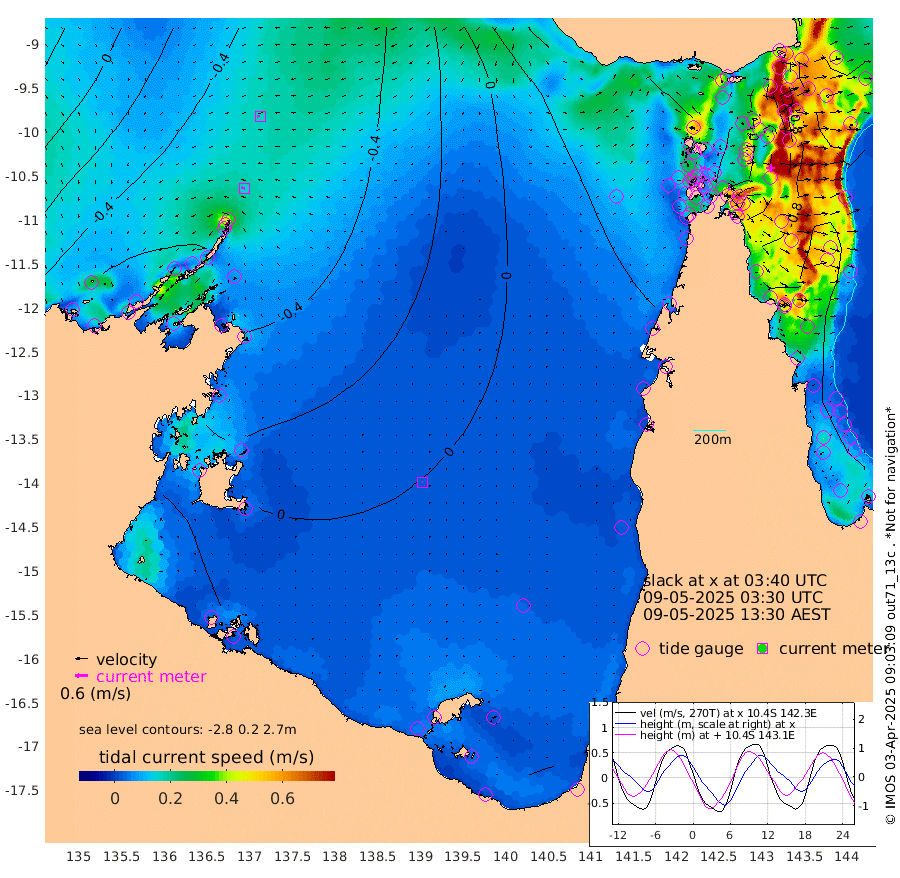 16cm/s -84T +3cm/s rms + 7cm/s -42T. ARA-GOC87 57m 3cm/s -107T +3cm/s rms + 2cm/s -2T. ARA-GOC87 60m 16cm/s -88T +2cm/s rms + 3cm/s 61T. ARA-GOC87 47m -79cm Daru -89cm Bobo Island -88cm Meer Island Barge -105cm Bramble Cay -100cm Unnamed Cay -91cm Pearce Cay -100cm Stephens Island -107cm Merrie England Shoals -88cm Mutacomal Reef -93cm Darnley Island Barge -103cm East Cay -81cm Yorke Island Barge -87cm Rennel Island -81cm Aureed Island -59cm Dungeness Reef -21cm Zagai Island -21cm Yam Island 33cm Dauan Island 23cm Saibai Island 22cm Phipi Reef -15cm Warrior Reef - West 22cm Mabuiag Island Barge -78cm Half Way Island -72cm Coconut Island -70cm Dugong Islet -41cm Poll Island -46cm Kirkcaldie Reef -22cm Suarji Island -35cm Sue Islet 16cm Hawkesbury Island -16cm Alert Patches -20cm Twin Island 15cm Badu Island -2cm St Pauls (Moa Island) 8cm Kubin (Moa Island) -1cm Ince Point 5cm Thursday Island 5cm Nardana Patches 4cm Turtle Head 4cm Round Island 6cm Goods Island 16cm Booby Island 2cm White Rocks Area 15cm Carpentaria -10cm Papou Point -13cm Bampfield Head 20cm Crab Island 14cm Red Wallis Island 3cm Packe Island -79cm Harrington Reef 11cm Herald Camp 9cm Sharp Point 3cm Red Island Point -7cm Possession Island -29cm Alpha Rock -46cm Frederick Point -84cm Wyborn Reef Light -73cm Tetley Island -74cm Triangle Reef -79cm Turtle Head Island -85cm Maclennan Cay -84cm Raine Island -93cm Mcsweeny Reef -94cm Collette Reef -84cm Shadwell Reef -105cm Hannibal Island -110cm Round Point 29cm Vrilya Point -101cm Cape Grenville -97cm Hicks Island -103cm Sir Charles Hardy Island -29cm Harvey Island -107cm Kay Reef -93cm Rocky Island -95cm Chapman Island -88cm Ham Reef -89cm Jubilee Reef -80cm Night Island -92cm Unnamed Reef No. 3 -98cm Morris Island -86cm 1st 3 Mile Opening -90cm Creech Reef -98cm Fife Island -109cm Eden Reef -98cm Stanley Island -111cm Normanby River -76cm Yabooma Island -95cm Hutchison River -74cm Elcho Island -62cm North West Crocodile Island -79cm Cape Wessel -83cm Stevens Island -87cm Guluwuru Island -76cm Hopeful Bay -72cm Auster Point -61cm Two Island Bay -81cm Cadell Strait -151cm Mallison Island -75cm Melville Bay (Gove Harbour) -81cm Truant Island -52cm Cape Arnhem -33cm Cape Grey -15cm Hawk Island 5cm Milner Bay (Groote Eylandt) 12cm Cape Beatrice 38cm West Island 41cm Centre Island 30cm Mornington Island 26cm West Wellesley Islands 20cm Bountiful Island 44cm Albert River Mouth 48cm Sweers Island 50cm Karumba 21cm Nassau River Offshore 7cm Christmas Creek 3cm Archer River 5cm Boyd Point 2cm Weipa (Humbug Point) 23cm Pennefather River 23cm Cullen Point