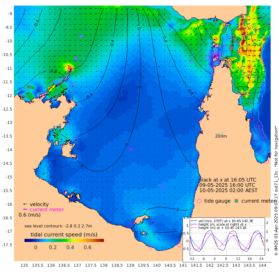 11cm/s -94T +3cm/s rms + 7cm/s -42T. ARA-GOC87 57m 6cm/s 58T +3cm/s rms + 2cm/s -2T. ARA-GOC87 60m 12cm/s -115T +2cm/s rms + 3cm/s 61T. ARA-GOC87 47m -41cm Daru -51cm Bobo Island -47cm Meer Island Barge -66cm Bramble Cay -55cm Unnamed Cay -58cm Pearce Cay -57cm Stephens Island -69cm Merrie England Shoals -51cm Mutacomal Reef -50cm Darnley Island Barge -59cm East Cay -40cm Yorke Island Barge -46cm Rennel Island -39cm Aureed Island -19cm Dungeness Reef 21cm Zagai Island 22cm Yam Island 66cm Dauan Island 62cm Saibai Island 47cm Phipi Reef 20cm Warrior Reef - West 61cm Mabuiag Island Barge -41cm Half Way Island -28cm Coconut Island -29cm Dugong Islet -3cm Poll Island -5cm Kirkcaldie Reef 34cm Suarji Island 5cm Sue Islet 56cm Hawkesbury Island 28cm Alert Patches 24cm Twin Island 64cm Badu Island 40cm St Pauls (Moa Island) 53cm Kubin (Moa Island) 43cm Ince Point 52cm Thursday Island 51cm Nardana Patches 54cm Turtle Head 56cm Round Island 62cm Goods Island 78cm Booby Island 68cm White Rocks Area 88cm Carpentaria 32cm Papou Point 83cm Bampfield Head 62cm Crab Island 68cm Red Wallis Island 48cm Packe Island -35cm Harrington Reef 75cm Herald Camp 15cm Sharp Point 40cm Red Island Point 39cm Possession Island 12cm Alpha Rock -4cm Frederick Point -43cm Wyborn Reef Light -34cm Tetley Island -38cm Triangle Reef -40cm Turtle Head Island -39cm Maclennan Cay -42cm Raine Island -51cm Mcsweeny Reef -54cm Collette Reef -45cm Shadwell Reef -64cm Hannibal Island -73cm Round Point 61cm Vrilya Point -59cm Cape Grenville -53cm Hicks Island -43cm Sir Charles Hardy Island -16cm Harvey Island -62cm Kay Reef -49cm Rocky Island -50cm Chapman Island -45cm Ham Reef -45cm Jubilee Reef -45cm Night Island -49cm Unnamed Reef No. 3 -53cm Morris Island -33cm 1st 3 Mile Opening -44cm Creech Reef -63cm Fife Island -62cm Eden Reef -54cm Stanley Island -67cm Normanby River -85cm Yabooma Island -108cm Hutchison River -94cm Elcho Island -91cm North West Crocodile Island -65cm Cape Wessel -98cm Stevens Island -64cm Guluwuru Island -92cm Hopeful Bay -70cm Auster Point -72cm Two Island Bay -108cm Cadell Strait -130cm Mallison Island -63cm Melville Bay (Gove Harbour) -62cm Truant Island -39cm Cape Arnhem -23cm Cape Grey -30cm Hawk Island -4cm Milner Bay (Groote Eylandt) -8cm Cape Beatrice 16cm West Island 20cm Centre Island -14cm Mornington Island -6cm West Wellesley Islands -9cm Bountiful Island -29cm Albert River Mouth -39cm Sweers Island -35cm Karumba -12cm Nassau River Offshore 4cm Christmas Creek 14cm Archer River 34cm Boyd Point 35cm Weipa (Humbug Point) 29cm Pennefather River 58cm Cullen Point