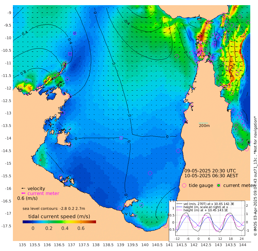 3cm/s -117T +3cm/s rms + 7cm/s -42T. ARA-GOC87 57m 11cm/s -163T +3cm/s rms + 2cm/s -2T. ARA-GOC87 60m 4cm/s -121T +2cm/s rms + 3cm/s 61T. ARA-GOC87 47m 9cm Daru 7cm Bobo Island 44cm Meer Island Barge 49cm Bramble Cay 35cm Unnamed Cay 16cm Pearce Cay 32cm Stephens Island 41cm Merrie England Shoals 22cm Mutacomal Reef 30cm Darnley Island Barge 52cm East Cay 14cm Yorke Island Barge 18cm Rennel Island 3cm Aureed Island -5cm Dungeness Reef -35cm Zagai Island -23cm Yam Island -35cm Dauan Island -36cm Saibai Island -40cm Phipi Reef -30cm Warrior Reef - West -30cm Mabuiag Island Barge 13cm Half Way Island -7cm Coconut Island 6cm Dugong Islet -18cm Poll Island -13cm Kirkcaldie Reef -40cm Suarji Island -20cm Sue Islet 14cm Hawkesbury Island -31cm Alert Patches -30cm Twin Island -2cm Badu Island -41cm St Pauls (Moa Island) -1cm Kubin (Moa Island) -25cm Ince Point -21cm Thursday Island -23cm Nardana Patches -5cm Turtle Head 3cm Round Island 13cm Goods Island 12cm Booby Island 17cm White Rocks Area -9cm Carpentaria -34cm Papou Point 15cm Bampfield Head 2cm Crab Island 12cm Red Wallis Island 11cm Packe Island -5cm Harrington Reef 20cm Herald Camp -20cm Sharp Point -11cm Red Island Point -27cm Possession Island -16cm Alpha Rock -18cm Frederick Point 11cm Wyborn Reef Light 4cm Tetley Island 32cm Triangle Reef 1cm Turtle Head Island 42cm Maclennan Cay 51cm Raine Island 27cm Mcsweeny Reef 33cm Collette Reef 43cm Shadwell Reef 39cm Hannibal Island 52cm Round Point -6cm Vrilya Point 50cm Cape Grenville 47cm Hicks Island 59cm Sir Charles Hardy Island 13cm Harvey Island 61cm Kay Reef 56cm Rocky Island 59cm Chapman Island 55cm Ham Reef 53cm Jubilee Reef 45cm Night Island 55cm Unnamed Reef No. 3 58cm Morris Island 50cm 1st 3 Mile Opening 51cm Creech Reef 58cm Fife Island 68cm Eden Reef 61cm Stanley Island 67cm Normanby River 107cm Yabooma Island 106cm Hutchison River 93cm Elcho Island 90cm North West Crocodile Island 57cm Cape Wessel 89cm Stevens Island 47cm Guluwuru Island 87cm Hopeful Bay 61cm Auster Point 64cm Two Island Bay 81cm Cadell Strait 102cm Mallison Island 47cm Melville Bay (Gove Harbour) 46cm Truant Island 23cm Cape Arnhem 8cm Cape Grey 2cm Hawk Island -13cm Milner Bay (Groote Eylandt) -11cm Cape Beatrice -31cm West Island -41cm Centre Island -13cm Mornington Island -8cm West Wellesley Islands 17cm Bountiful Island 6cm Albert River Mouth -7cm Sweers Island 1cm Karumba 15cm Nassau River Offshore 22cm Christmas Creek 19cm Archer River 13cm Boyd Point 27cm Weipa (Humbug Point) -8cm Pennefather River 6cm Cullen Point