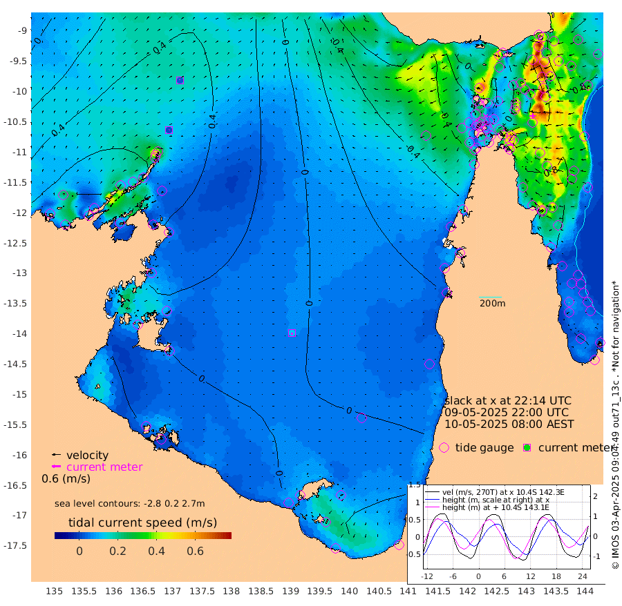 2cm/s 45T +3cm/s rms + 7cm/s -42T. ARA-GOC87 57m 13cm/s -167T +3cm/s rms + 2cm/s -2T. ARA-GOC87 60m 3cm/s -7T +2cm/s rms + 3cm/s 61T. ARA-GOC87 47m 72cm Daru 74cm Bobo Island 64cm Meer Island Barge 87cm Bramble Cay 86cm Unnamed Cay 77cm Pearce Cay 81cm Stephens Island 94cm Merrie England Shoals 86cm Mutacomal Reef 72cm Darnley Island Barge 78cm East Cay 66cm Yorke Island Barge 74cm Rennel Island 64cm Aureed Island 52cm Dungeness Reef 19cm Zagai Island 28cm Yam Island -14cm Dauan Island -12cm Saibai Island -8cm Phipi Reef 25cm Warrior Reef - West -18cm Mabuiag Island Barge 69cm Half Way Island 56cm Coconut Island 64cm Dugong Islet 40cm Poll Island 42cm Kirkcaldie Reef 12cm Suarji Island 31cm Sue Islet -14cm Hawkesbury Island 8cm Alert Patches 16cm Twin Island -23cm Badu Island 4cm St Pauls (Moa Island) -5cm Kubin (Moa Island) -1cm Ince Point -10cm Thursday Island -8cm Nardana Patches -10cm Turtle Head -12cm Round Island -18cm Goods Island -37cm Booby Island -22cm White Rocks Area -53cm Carpentaria 5cm Papou Point -34cm Bampfield Head -40cm Crab Island -25cm Red Wallis Island 1cm Packe Island 65cm Harrington Reef -15cm Herald Camp -4cm Sharp Point -12cm Red Island Point -6cm Possession Island 30cm Alpha Rock 39cm Frederick Point 76cm Wyborn Reef Light 68cm Tetley Island 58cm Triangle Reef 61cm Turtle Head Island 63cm Maclennan Cay 56cm Raine Island 76cm Mcsweeny Reef 75cm Collette Reef 62cm Shadwell Reef 86cm Hannibal Island 92cm Round Point -49cm Vrilya Point 81cm Cape Grenville 74cm Hicks Island 80cm Sir Charles Hardy Island 23cm Harvey Island 83cm Kay Reef 68cm Rocky Island 67cm Chapman Island 62cm Ham Reef 62cm Jubilee Reef 60cm Night Island 65cm Unnamed Reef No. 3 71cm Morris Island 52cm 1st 3 Mile Opening 61cm Creech Reef 76cm Fife Island 79cm Eden Reef 71cm Stanley Island 86cm Normanby River 89cm Yabooma Island 102cm Hutchison River 85cm Elcho Island 83cm North West Crocodile Island 67cm Cape Wessel 90cm Stevens Island 66cm Guluwuru Island 83cm Hopeful Bay 62cm Auster Point 68cm Two Island Bay 92cm Cadell Strait 137cm Mallison Island 62cm Melville Bay (Gove Harbour) 62cm Truant Island 37cm Cape Arnhem 16cm Cape Grey 17cm Hawk Island -8cm Milner Bay (Groote Eylandt) -4cm Cape Beatrice -24cm West Island -34cm Centre Island 1cm Mornington Island 1cm West Wellesley Islands 20cm Bountiful Island 12cm Albert River Mouth 2cm Sweers Island 11cm Karumba 21cm Nassau River Offshore 17cm Christmas Creek -3cm Archer River -13cm Boyd Point -7cm Weipa (Humbug Point) -36cm Pennefather River -32cm Cullen Point