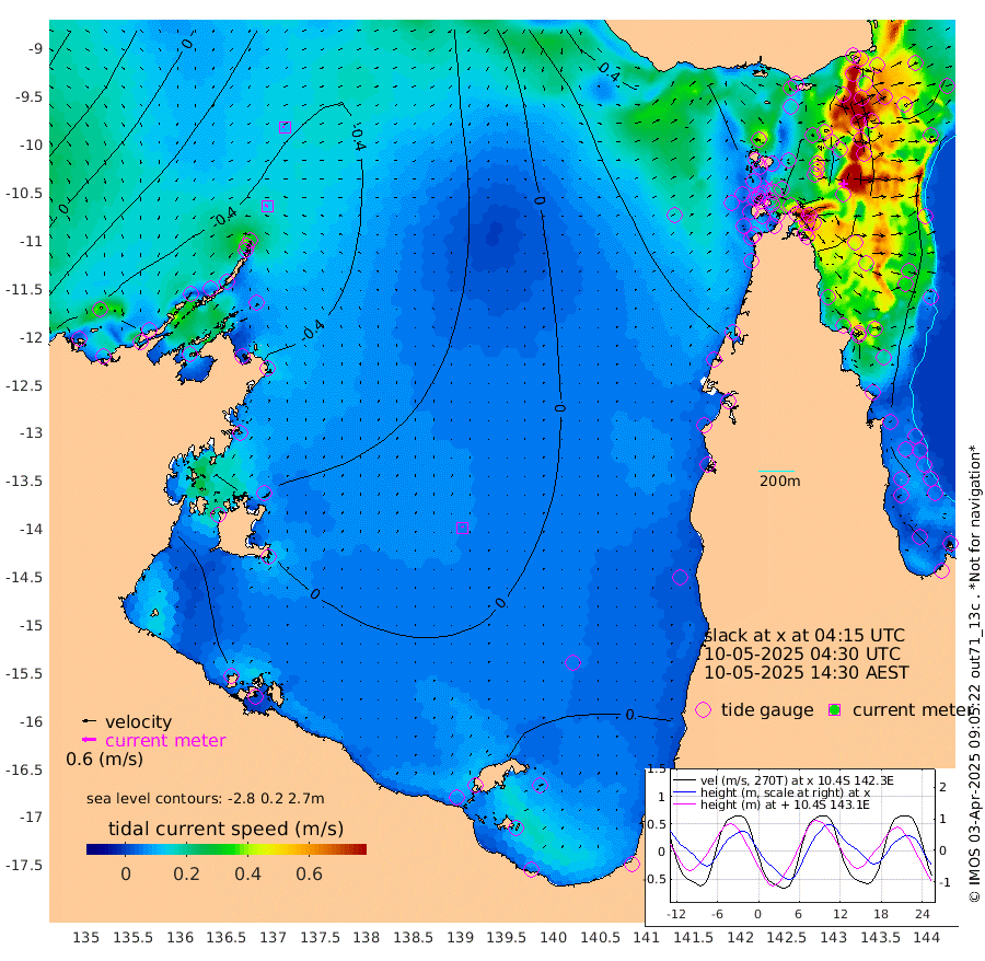 12cm/s -80T +3cm/s rms + 7cm/s -42T. ARA-GOC87 57m 6cm/s -15T +3cm/s rms + 2cm/s -2T. ARA-GOC87 60m 11cm/s -85T +2cm/s rms + 3cm/s 61T. ARA-GOC87 47m -112cm Daru -119cm Bobo Island -92cm Meer Island Barge -117cm Bramble Cay -122cm Unnamed Cay -117cm Pearce Cay -118cm Stephens Island -127cm Merrie England Shoals -121cm Mutacomal Reef -108cm Darnley Island Barge -107cm East Cay -105cm Yorke Island Barge -114cm Rennel Island -108cm Aureed Island -95cm Dungeness Reef -65cm Zagai Island -65cm Yam Island -15cm Dauan Island -21cm Saibai Island -32cm Phipi Reef -64cm Warrior Reef - West -15cm Mabuiag Island Barge -104cm Half Way Island -107cm Coconut Island -101cm Dugong Islet -81cm Poll Island -85cm Kirkcaldie Reef -68cm Suarji Island -73cm Sue Islet -5cm Hawkesbury Island -56cm Alert Patches -61cm Twin Island -13cm Badu Island -47cm St Pauls (Moa Island) -19cm Kubin (Moa Island) -37cm Ince Point -27cm Thursday Island -29cm Nardana Patches -25cm Turtle Head -18cm Round Island -12cm Goods Island 7cm Booby Island -10cm White Rocks Area 17cm Carpentaria -48cm Papou Point -18cm Bampfield Head 14cm Crab Island 3cm Red Wallis Island -21cm Packe Island -113cm Harrington Reef -5cm Herald Camp -6cm Sharp Point -24cm Red Island Point -38cm Possession Island -65cm Alpha Rock -84cm Frederick Point -116cm Wyborn Reef Light -108cm Tetley Island -83cm Triangle Reef -109cm Turtle Head Island -91cm Maclennan Cay -81cm Raine Island -113cm Mcsweeny Reef -110cm Collette Reef -89cm Shadwell Reef -122cm Hannibal Island -122cm Round Point 28cm Vrilya Point -109cm Cape Grenville -104cm Hicks Island -110cm Sir Charles Hardy Island -32cm Harvey Island -109cm Kay Reef -93cm Rocky Island -92cm Chapman Island -85cm Ham Reef -88cm Jubilee Reef -80cm Night Island -89cm Unnamed Reef No. 3 -97cm Morris Island -83cm 1st 3 Mile Opening -88cm Creech Reef -95cm Fife Island -104cm Eden Reef -95cm Stanley Island -108cm Normanby River -59cm Yabooma Island -83cm Hutchison River -59cm Elcho Island -51cm North West Crocodile Island -64cm Cape Wessel -67cm Stevens Island -80cm Guluwuru Island -58cm Hopeful Bay -56cm Auster Point -45cm Two Island Bay -70cm Cadell Strait -131cm Mallison Island -67cm Melville Bay (Gove Harbour) -71cm Truant Island -47cm Cape Arnhem -30cm Cape Grey -15cm Hawk Island 9cm Milner Bay (Groote Eylandt) 12cm Cape Beatrice 36cm West Island 40cm Centre Island 15cm Mornington Island 14cm West Wellesley Islands 0cm Bountiful Island 26cm Albert River Mouth 35cm Sweers Island 29cm Karumba 1cm Nassau River Offshore -11cm Christmas Creek -6cm Archer River -1cm Boyd Point -5cm Weipa (Humbug Point) 21cm Pennefather River 20cm Cullen Point