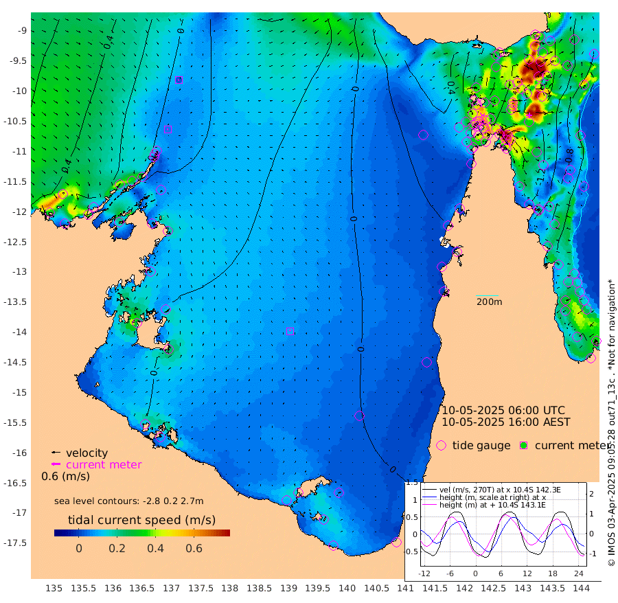 5cm/s -110T +3cm/s rms + 7cm/s -42T. ARA-GOC87 57m 10cm/s -20T +3cm/s rms + 2cm/s -2T. ARA-GOC87 60m 3cm/s -135T +2cm/s rms + 3cm/s 61T. ARA-GOC87 47m -131cm Daru -135cm Bobo Island -68cm Meer Island Barge -97cm Bramble Cay -120cm Unnamed Cay -124cm Pearce Cay -114cm Stephens Island -118cm Merrie England Shoals -135cm Mutacomal Reef -102cm Darnley Island Barge -81cm East Cay -115cm Yorke Island Barge -122cm Rennel Island -127cm Aureed Island -122cm Dungeness Reef -117cm Zagai Island -117cm Yam Island -73cm Dauan Island -78cm Saibai Island -83cm Phipi Reef -120cm Warrior Reef - West -56cm Mabuiag Island Barge -118cm Half Way Island -132cm Coconut Island -125cm Dugong Islet -121cm Poll Island -119cm Kirkcaldie Reef -123cm Suarji Island -112cm Sue Islet -3cm Hawkesbury Island -96cm Alert Patches -107cm Twin Island -19cm Badu Island -103cm St Pauls (Moa Island) -38cm Kubin (Moa Island) -75cm Ince Point -58cm Thursday Island -63cm Nardana Patches -40cm Turtle Head -24cm Round Island -6cm Goods Island 20cm Booby Island 1cm White Rocks Area 19cm Carpentaria -91cm Papou Point 2cm Bampfield Head 28cm Crab Island 7cm Red Wallis Island -32cm Packe Island -141cm Harrington Reef -6cm Herald Camp -29cm Sharp Point -34cm Red Island Point -66cm Possession Island -105cm Alpha Rock -121cm Frederick Point -135cm Wyborn Reef Light -133cm Tetley Island -73cm Triangle Reef -121cm Turtle Head Island -73cm Maclennan Cay -46cm Raine Island -112cm Mcsweeny Reef -101cm Collette Reef -66cm Shadwell Reef -110cm Hannibal Island -99cm Round Point 41cm Vrilya Point -88cm Cape Grenville -81cm Hicks Island -89cm Sir Charles Hardy Island -26cm Harvey Island -76cm Kay Reef -61cm Rocky Island -56cm Chapman Island -51cm Ham Reef -56cm Jubilee Reef -55cm Night Island -55cm Unnamed Reef No. 3 -62cm Morris Island -48cm 1st 3 Mile Opening -56cm Creech Reef -62cm Fife Island -61cm Eden Reef -58cm Stanley Island -70cm Normanby River 17cm Yabooma Island -1cm Hutchison River 14cm Elcho Island 17cm North West Crocodile Island -25cm Cape Wessel -1cm Stevens Island -47cm Guluwuru Island 8cm Hopeful Bay -5cm Auster Point 0cm Two Island Bay -8cm Cadell Strait -83cm Mallison Island -34cm Melville Bay (Gove Harbour) -38cm Truant Island -29cm Cape Arnhem -17cm Cape Grey -10cm Hawk Island 5cm Milner Bay (Groote Eylandt) 5cm Cape Beatrice 11cm West Island 14cm Centre Island -2cm Mornington Island -2cm West Wellesley Islands -9cm Bountiful Island 20cm Albert River Mouth 32cm Sweers Island 22cm Karumba -9cm Nassau River Offshore -14cm Christmas Creek 9cm Archer River 7cm Boyd Point 11cm Weipa (Humbug Point) 35cm Pennefather River 26cm Cullen Point