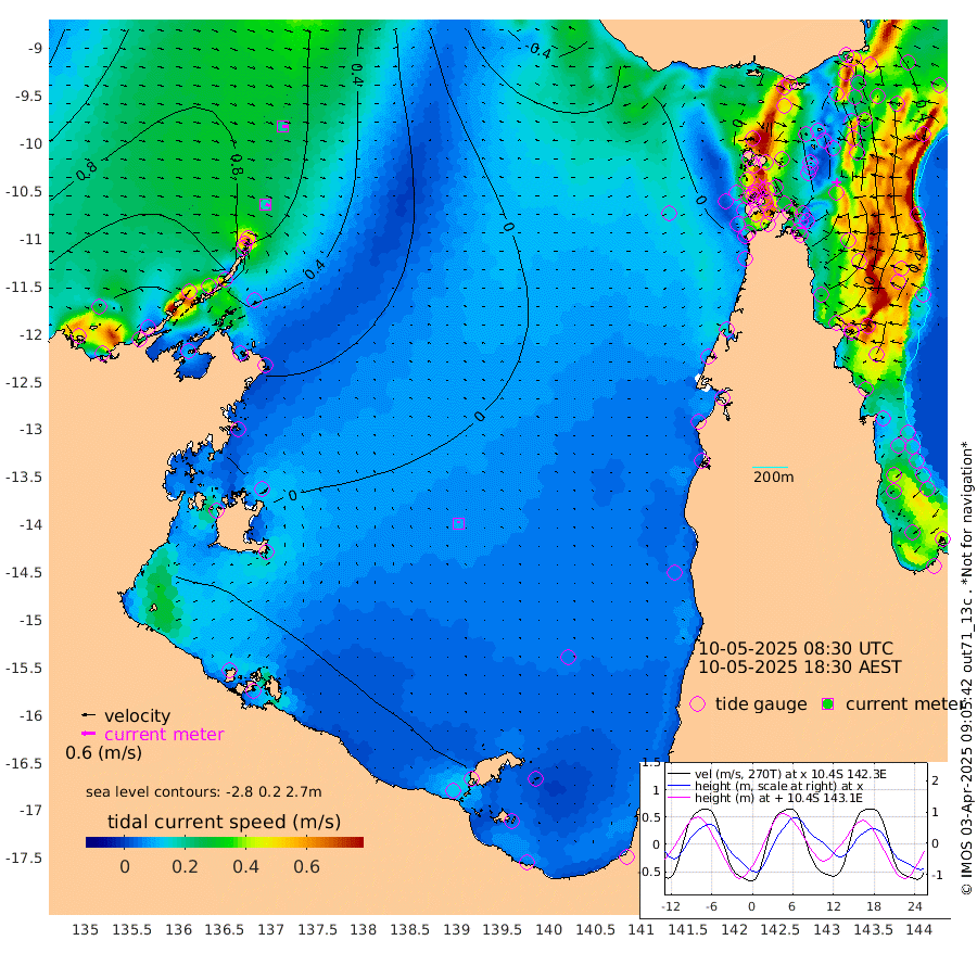 17cm/s 110T +3cm/s rms + 7cm/s -42T. ARA-GOC87 57m 10cm/s -21T +3cm/s rms + 2cm/s -2T. ARA-GOC87 60m 19cm/s 100T +2cm/s rms + 3cm/s 61T. ARA-GOC87 47m -33cm Daru -26cm Bobo Island 26cm Meer Island Barge 22cm Bramble Cay -5cm Unnamed Cay -12cm Pearce Cay 0cm Stephens Island 8cm Merrie England Shoals -28cm Mutacomal Reef 1cm Darnley Island Barge 30cm East Cay -21cm Yorke Island Barge -19cm Rennel Island -33cm Aureed Island -48cm Dungeness Reef -86cm Zagai Island -89cm Yam Island -103cm Dauan Island -100cm Saibai Island -87cm Phipi Reef -94cm Warrior Reef - West -75cm Mabuiag Island Barge -25cm Half Way Island -42cm Coconut Island -43cm Dugong Islet -67cm Poll Island -59cm Kirkcaldie Reef -93cm Suarji Island -66cm Sue Islet -15cm Hawkesbury Island -68cm Alert Patches -76cm Twin Island -27cm Badu Island -92cm St Pauls (Moa Island) -45cm Kubin (Moa Island) -69cm Ince Point -61cm Thursday Island -64cm Nardana Patches -42cm Turtle Head -27cm Round Island -14cm Goods Island -5cm Booby Island -9cm White Rocks Area -19cm Carpentaria -73cm Papou Point 2cm Bampfield Head 6cm Crab Island -16cm Red Wallis Island -36cm Packe Island -45cm Harrington Reef -29cm Herald Camp -36cm Sharp Point -28cm Red Island Point -50cm Possession Island -70cm Alpha Rock -62cm Frederick Point -32cm Wyborn Reef Light -42cm Tetley Island 8cm Triangle Reef -20cm Turtle Head Island 15cm Maclennan Cay 41cm Raine Island -6cm Mcsweeny Reef 6cm Collette Reef 26cm Shadwell Reef 11cm Hannibal Island 27cm Round Point 9cm Vrilya Point 22cm Cape Grenville 24cm Hicks Island 14cm Sir Charles Hardy Island 5cm Harvey Island 39cm Kay Reef 36cm Rocky Island 42cm Chapman Island 39cm Ham Reef 37cm Jubilee Reef 28cm Night Island 40cm Unnamed Reef No. 3 41cm Morris Island 38cm 1st 3 Mile Opening 36cm Creech Reef 41cm Fife Island 52cm Eden Reef 44cm Stanley Island 46cm Normanby River 117cm Yabooma Island 132cm Hutchison River 119cm Elcho Island 110cm North West Crocodile Island 62cm Cape Wessel 109cm Stevens Island 53cm Guluwuru Island 107cm Hopeful Bay 84cm Auster Point 76cm Two Island Bay 108cm Cadell Strait 75cm Mallison Island 54cm Melville Bay (Gove Harbour) 56cm Truant Island 31cm Cape Arnhem 23cm Cape Grey 16cm Hawk Island -1cm Milner Bay (Groote Eylandt) -6cm Cape Beatrice -36cm West Island -34cm Centre Island -22cm Mornington Island -26cm West Wellesley Islands -25cm Bountiful Island -6cm Albert River Mouth 8cm Sweers Island -3cm Karumba -22cm Nassau River Offshore -19cm Christmas Creek 10cm Archer River -3cm Boyd Point 4cm Weipa (Humbug Point) 19cm Pennefather River -6cm Cullen Point