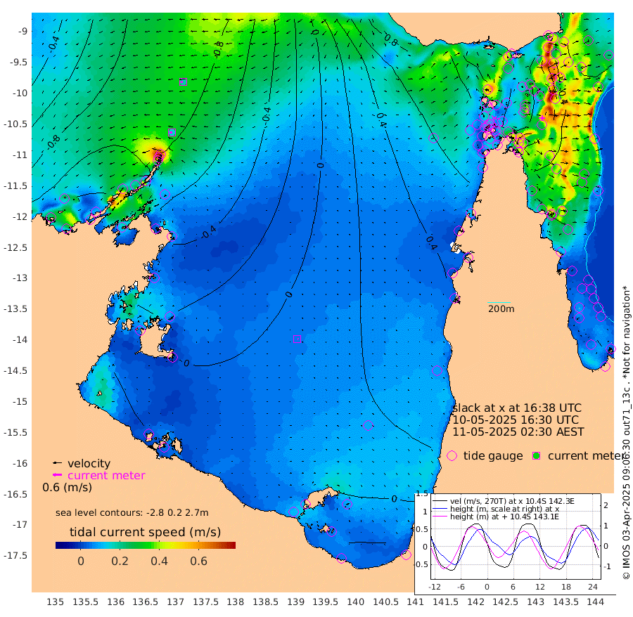 16cm/s -89T +3cm/s rms + 7cm/s -42T. ARA-GOC87 57m 6cm/s 114T +3cm/s rms + 2cm/s -2T. ARA-GOC87 60m 18cm/s -105T +2cm/s rms + 3cm/s 61T. ARA-GOC87 47m -38cm Daru -46cm Bobo Island -39cm Meer Island Barge -59cm Bramble Cay -51cm Unnamed Cay -50cm Pearce Cay -50cm Stephens Island -64cm Merrie England Shoals -49cm Mutacomal Reef -42cm Darnley Island Barge -49cm East Cay -34cm Yorke Island Barge -41cm Rennel Island -32cm Aureed Island -15cm Dungeness Reef 19cm Zagai Island 21cm Yam Island 64cm Dauan Island 62cm Saibai Island 47cm Phipi Reef 21cm Warrior Reef - West 59cm Mabuiag Island Barge -36cm Half Way Island -26cm Coconut Island -24cm Dugong Islet -3cm Poll Island -3cm Kirkcaldie Reef 34cm Suarji Island 7cm Sue Islet 56cm Hawkesbury Island 28cm Alert Patches 23cm Twin Island 63cm Badu Island 38cm St Pauls (Moa Island) 51cm Kubin (Moa Island) 42cm Ince Point 51cm Thursday Island 50cm Nardana Patches 55cm Turtle Head 52cm Round Island 63cm Goods Island 80cm Booby Island 69cm White Rocks Area 89cm Carpentaria 30cm Papou Point 79cm Bampfield Head 64cm Crab Island 70cm Red Wallis Island 49cm Packe Island -30cm Harrington Reef 76cm Herald Camp 14cm Sharp Point 44cm Red Island Point 37cm Possession Island 9cm Alpha Rock -3cm Frederick Point -43cm Wyborn Reef Light -35cm Tetley Island -32cm Triangle Reef -39cm Turtle Head Island -30cm Maclennan Cay -33cm Raine Island -45cm Mcsweeny Reef -47cm Collette Reef -38cm Shadwell Reef -57cm Hannibal Island -66cm Round Point 64cm Vrilya Point -51cm Cape Grenville -44cm Hicks Island -33cm Sir Charles Hardy Island -13cm Harvey Island -53cm Kay Reef -39cm Rocky Island -39cm Chapman Island -34cm Ham Reef -36cm Jubilee Reef -36cm Night Island -38cm Unnamed Reef No. 3 -44cm Morris Island -25cm 1st 3 Mile Opening -34cm Creech Reef -50cm Fife Island -51cm Eden Reef -44cm Stanley Island -56cm Normanby River -116cm Yabooma Island -144cm Hutchison River -126cm Elcho Island -121cm North West Crocodile Island -86cm Cape Wessel -130cm Stevens Island -83cm Guluwuru Island -118cm Hopeful Bay -94cm Auster Point -97cm Two Island Bay -135cm Cadell Strait -143cm Mallison Island -81cm Melville Bay (Gove Harbour) -82cm Truant Island -51cm Cape Arnhem -30cm Cape Grey -36cm Hawk Island -9cm Milner Bay (Groote Eylandt) -9cm Cape Beatrice 21cm West Island 25cm Centre Island -1cm Mornington Island 8cm West Wellesley Islands 7cm Bountiful Island -23cm Albert River Mouth -31cm Sweers Island -23cm Karumba 6cm Nassau River Offshore 22cm Christmas Creek 27cm Archer River 44cm Boyd Point 45cm Weipa (Humbug Point) 35cm Pennefather River 63cm Cullen Point