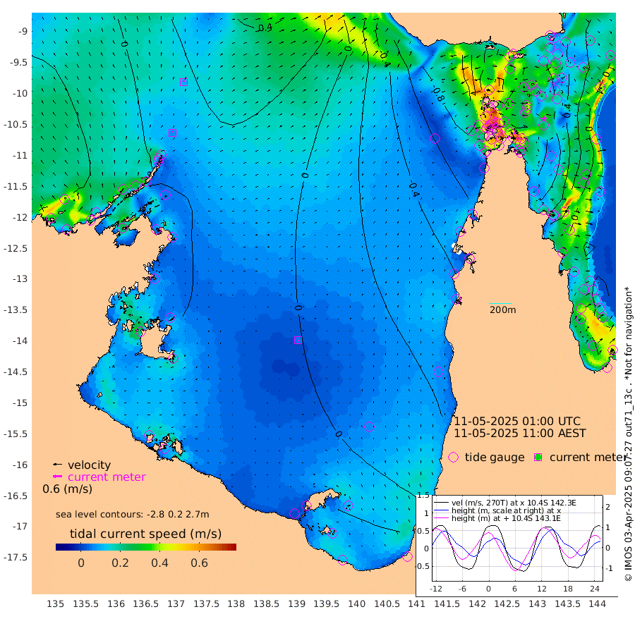 8cm/s 9T +3cm/s rms + 7cm/s -42T. ARA-GOC87 57m 5cm/s -162T +3cm/s rms + 2cm/s -2T. ARA-GOC87 60m 10cm/s -3T +2cm/s rms + 3cm/s 61T. ARA-GOC87 47m 61cm Daru 63cm Bobo Island 1cm Meer Island Barge 23cm Bramble Cay 42cm Unnamed Cay 51cm Pearce Cay 36cm Stephens Island 42cm Merrie England Shoals 65cm Mutacomal Reef 29cm Darnley Island Barge 4cm East Cay 44cm Yorke Island Barge 47cm Rennel Island 57cm Aureed Island 54cm Dungeness Reef 66cm Zagai Island 63cm Yam Island 40cm Dauan Island 42cm Saibai Island 38cm Phipi Reef 71cm Warrior Reef - West 14cm Mabuiag Island Barge 49cm Half Way Island 60cm Coconut Island 56cm Dugong Islet 63cm Poll Island 52cm Kirkcaldie Reef 56cm Suarji Island 54cm Sue Islet -62cm Hawkesbury Island 32cm Alert Patches 46cm Twin Island -49cm Badu Island 49cm St Pauls (Moa Island) -22cm Kubin (Moa Island) 19cm Ince Point -1cm Thursday Island 5cm Nardana Patches -27cm Turtle Head -44cm Round Island -68cm Goods Island -95cm Booby Island -79cm White Rocks Area -83cm Carpentaria 37cm Papou Point -105cm Bampfield Head -86cm Crab Island -72cm Red Wallis Island -30cm Packe Island 64cm Harrington Reef -70cm Herald Camp 22cm Sharp Point -28cm Red Island Point 2cm Possession Island 54cm Alpha Rock 55cm Frederick Point 64cm Wyborn Reef Light 67cm Tetley Island 13cm Triangle Reef 44cm Turtle Head Island 3cm Maclennan Cay -21cm Raine Island 39cm Mcsweeny Reef 29cm Collette Reef 0cm Shadwell Reef 33cm Hannibal Island 23cm Round Point -87cm Vrilya Point 14cm Cape Grenville 5cm Hicks Island 5cm Sir Charles Hardy Island 4cm Harvey Island -1cm Kay Reef -10cm Rocky Island -15cm Chapman Island -17cm Ham Reef -14cm Jubilee Reef -4cm Night Island -14cm Unnamed Reef No. 3 -11cm Morris Island -26cm 1st 3 Mile Opening -15cm Creech Reef -4cm Fife Island -17cm Eden Reef -15cm Stanley Island -6cm Normanby River -20cm Yabooma Island -8cm Hutchison River -8cm Elcho Island -4cm North West Crocodile Island 18cm Cape Wessel 7cm Stevens Island 27cm Guluwuru Island -2cm Hopeful Bay 0cm Auster Point 10cm Two Island Bay 15cm Cadell Strait 77cm Mallison Island 22cm Melville Bay (Gove Harbour) 22cm Truant Island 20cm Cape Arnhem 10cm Cape Grey 24cm Hawk Island 18cm Milner Bay (Groote Eylandt) 23cm Cape Beatrice 27cm West Island 22cm Centre Island 35cm Mornington Island 31cm West Wellesley Islands 29cm Bountiful Island 46cm Albert River Mouth 42cm Sweers Island 40cm Karumba 20cm Nassau River Offshore -6cm Christmas Creek -45cm Archer River -50cm Boyd Point -60cm Weipa (Humbug Point) -63cm Pennefather River -70cm Cullen Point