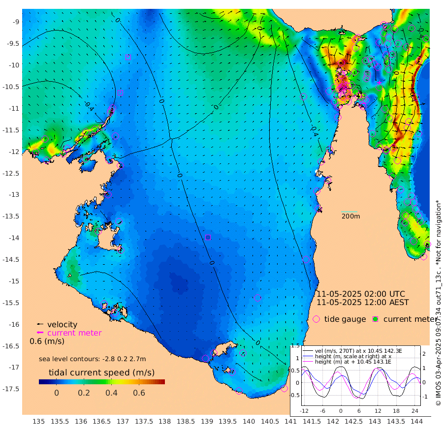 9cm/s -17T +3cm/s rms + 7cm/s -42T. ARA-GOC87 57m 2cm/s -178T +3cm/s rms + 2cm/s -2T. ARA-GOC87 60m 11cm/s -24T +2cm/s rms + 3cm/s 61T. ARA-GOC87 47m 18cm Daru 19cm Bobo Island -35cm Meer Island Barge -24cm Bramble Cay -6cm Unnamed Cay 7cm Pearce Cay -9cm Stephens Island -10cm Merrie England Shoals 17cm Mutacomal Reef -12cm Darnley Island Barge -38cm East Cay 6cm Yorke Island Barge 5cm Rennel Island 19cm Aureed Island 20cm Dungeness Reef 48cm Zagai Island 43cm Yam Island 40cm Dauan Island 41cm Saibai Island 30cm Phipi Reef 52cm Warrior Reef - West 15cm Mabuiag Island Barge 10cm Half Way Island 23cm Coconut Island 19cm Dugong Islet 37cm Poll Island 23cm Kirkcaldie Reef 39cm Suarji Island 32cm Sue Islet -62cm Hawkesbury Island 18cm Alert Patches 30cm Twin Island -50cm Badu Island 39cm St Pauls (Moa Island) -25cm Kubin (Moa Island) 11cm Ince Point -4cm Thursday Island 1cm Nardana Patches -31cm Turtle Head -46cm Round Island -68cm Goods Island -85cm Booby Island -76cm White Rocks Area -62cm Carpentaria 26cm Papou Point -100cm Bampfield Head -75cm Crab Island -64cm Red Wallis Island -35cm Packe Island 25cm Harrington Reef -66cm Herald Camp 23cm Sharp Point -33cm Red Island Point -5cm Possession Island 35cm Alpha Rock 29cm Frederick Point 20cm Wyborn Reef Light 27cm Tetley Island -18cm Triangle Reef 4cm Turtle Head Island -31cm Maclennan Cay -53cm Raine Island -4cm Mcsweeny Reef -14cm Collette Reef -35cm Shadwell Reef -15cm Hannibal Island -26cm Round Point -70cm Vrilya Point -29cm Cape Grenville -35cm Hicks Island -37cm Sir Charles Hardy Island -9cm Harvey Island -45cm Kay Reef -47cm Rocky Island -51cm Chapman Island -50cm Ham Reef -48cm Jubilee Reef -35cm Night Island -48cm Unnamed Reef No. 3 -50cm Morris Island -57cm 1st 3 Mile Opening -49cm Creech Reef -41cm Fife Island -59cm Eden Reef -54cm Stanley Island -50cm Normanby River -67cm Yabooma Island -66cm Hutchison River -55cm Elcho Island -48cm North West Crocodile Island -16cm Cape Wessel -40cm Stevens Island -11cm Guluwuru Island -44cm Hopeful Bay -34cm Auster Point -22cm Two Island Bay -33cm Cadell Strait 17cm Mallison Island -12cm Melville Bay (Gove Harbour) -12cm Truant Island -1cm Cape Arnhem -4cm Cape Grey 14cm Hawk Island 20cm Milner Bay (Groote Eylandt) 25cm Cape Beatrice 41cm West Island 39cm Centre Island 34cm Mornington Island 32cm West Wellesley Islands 18cm Bountiful Island 38cm Albert River Mouth 39cm Sweers Island 33cm Karumba 13cm Nassau River Offshore -13cm Christmas Creek -47cm Archer River -46cm Boyd Point -60cm Weipa (Humbug Point) -52cm Pennefather River -56cm Cullen Point