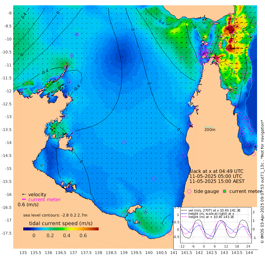10cm/s -70T +3cm/s rms + 7cm/s -42T. ARA-GOC87 57m 10cm/s 1T +3cm/s rms + 2cm/s -2T. ARA-GOC87 60m 9cm/s -79T +2cm/s rms + 3cm/s 61T. ARA-GOC87 47m -122cm Daru -125cm Bobo Island -90cm Meer Island Barge -118cm Bramble Cay -128cm Unnamed Cay -123cm Pearce Cay -120cm Stephens Island -131cm Merrie England Shoals -130cm Mutacomal Reef -110cm Darnley Island Barge -105cm East Cay -111cm Yorke Island Barge -120cm Rennel Island -114cm Aureed Island -107cm Dungeness Reef -83cm Zagai Island -83cm Yam Island -43cm Dauan Island -47cm Saibai Island -65cm Phipi Reef -86cm Warrior Reef - West -37cm Mabuiag Island Barge -110cm Half Way Island -117cm Coconut Island -109cm Dugong Islet -94cm Poll Island -99cm Kirkcaldie Reef -85cm Suarji Island -88cm Sue Islet -25cm Hawkesbury Island -74cm Alert Patches -77cm Twin Island -37cm Badu Island -66cm St Pauls (Moa Island) -37cm Kubin (Moa Island) -55cm Ince Point -44cm Thursday Island -47cm Nardana Patches -43cm Turtle Head -34cm Round Island -28cm Goods Island -6cm Booby Island -21cm White Rocks Area 17cm Carpentaria -64cm Papou Point -26cm Bampfield Head 2cm Crab Island -8cm Red Wallis Island -36cm Packe Island -121cm Harrington Reef -19cm Herald Camp -13cm Sharp Point -42cm Red Island Point -54cm Possession Island -77cm Alpha Rock -97cm Frederick Point -125cm Wyborn Reef Light -118cm Tetley Island -84cm Triangle Reef -117cm Turtle Head Island -89cm Maclennan Cay -79cm Raine Island -116cm Mcsweeny Reef -113cm Collette Reef -90cm Shadwell Reef -125cm Hannibal Island -122cm Round Point 20cm Vrilya Point -108cm Cape Grenville -103cm Hicks Island -109cm Sir Charles Hardy Island -31cm Harvey Island -106cm Kay Reef -91cm Rocky Island -89cm Chapman Island -81cm Ham Reef -85cm Jubilee Reef -77cm Night Island -85cm Unnamed Reef No. 3 -93cm Morris Island -80cm 1st 3 Mile Opening -85cm Creech Reef -89cm Fife Island -100cm Eden Reef -91cm Stanley Island -103cm Normanby River -57cm Yabooma Island -84cm Hutchison River -57cm Elcho Island -51cm North West Crocodile Island -53cm Cape Wessel -63cm Stevens Island -75cm Guluwuru Island -54cm Hopeful Bay -49cm Auster Point -37cm Two Island Bay -70cm Cadell Strait -119cm Mallison Island -63cm Melville Bay (Gove Harbour) -65cm Truant Island -42cm Cape Arnhem -29cm Cape Grey -15cm Hawk Island 13cm Milner Bay (Groote Eylandt) 13cm Cape Beatrice 38cm West Island 42cm Centre Island 5cm Mornington Island 7cm West Wellesley Islands -17cm Bountiful Island 9cm Albert River Mouth 20cm Sweers Island 8cm Karumba -14cm Nassau River Offshore -26cm Christmas Creek -18cm Archer River -10cm Boyd Point -16cm Weipa (Humbug Point) 12cm Pennefather River 12cm Cullen Point