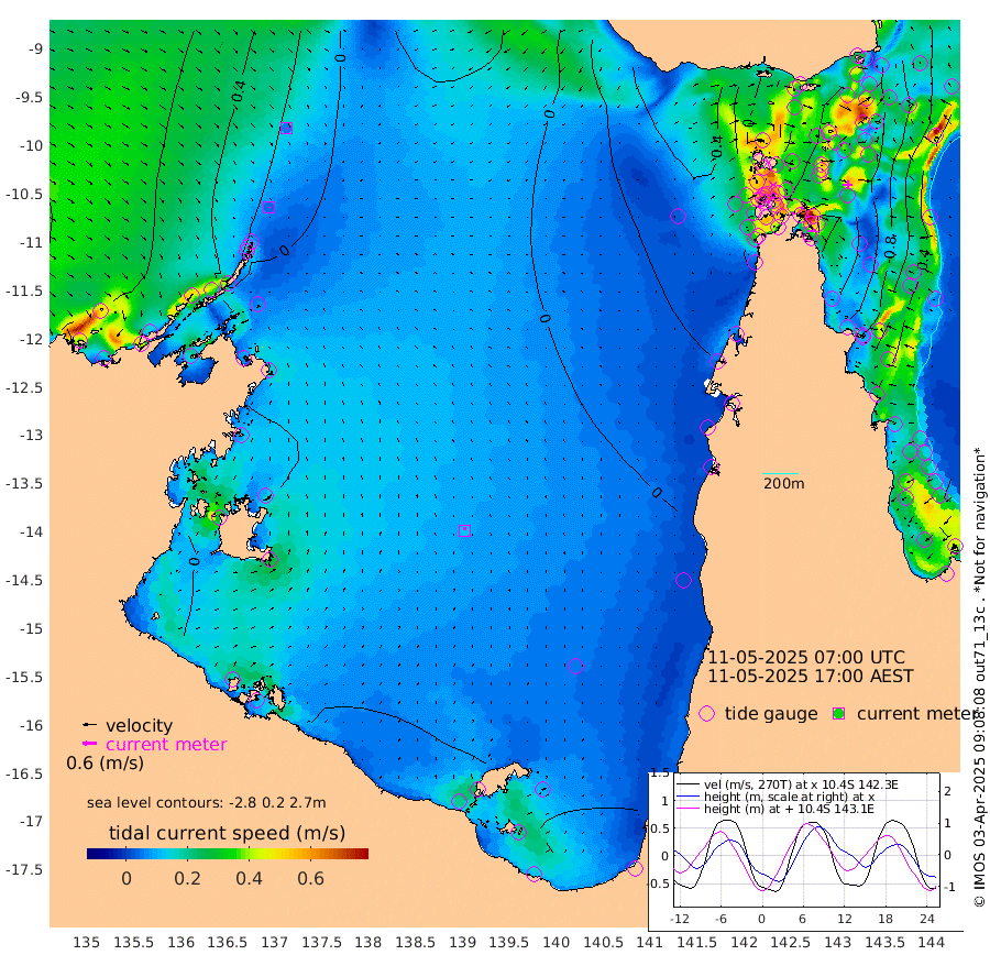 4cm/s -178T +3cm/s rms + 7cm/s -42T. ARA-GOC87 57m 13cm/s -9T +3cm/s rms + 2cm/s -2T. ARA-GOC87 60m 6cm/s 146T +2cm/s rms + 3cm/s 61T. ARA-GOC87 47m -117cm Daru -118cm Bobo Island -45cm Meer Island Barge -71cm Bramble Cay -98cm Unnamed Cay -104cm Pearce Cay -89cm Stephens Island -92cm Merrie England Shoals -119cm Mutacomal Reef -81cm Darnley Island Barge -53cm East Cay -99cm Yorke Island Barge -103cm Rennel Island -113cm Aureed Island -114cm Dungeness Reef -126cm Zagai Island -124cm Yam Island -102cm Dauan Island -107cm Saibai Island -108cm Phipi Reef -134cm Warrior Reef - West -73cm Mabuiag Island Barge -99cm Half Way Island -121cm Coconut Island -111cm Dugong Islet -119cm Poll Island -114cm Kirkcaldie Reef -129cm Suarji Island -114cm Sue Islet 1cm Hawkesbury Island -99cm Alert Patches -108cm Twin Island -23cm Badu Island -111cm St Pauls (Moa Island) -36cm Kubin (Moa Island) -80cm Ince Point -62cm Thursday Island -67cm Nardana Patches -41cm Turtle Head -18cm Round Island -1cm Goods Island 28cm Booby Island 11cm White Rocks Area 28cm Carpentaria -95cm Papou Point 21cm Bampfield Head 34cm Crab Island 13cm Red Wallis Island -27cm Packe Island -123cm Harrington Reef 2cm Herald Camp -36cm Sharp Point -35cm Red Island Point -64cm Possession Island -105cm Alpha Rock -115cm Frederick Point -118cm Wyborn Reef Light -121cm Tetley Island -56cm Triangle Reef -99cm Turtle Head Island -51cm Maclennan Cay -22cm Raine Island -91cm Mcsweeny Reef -80cm Collette Reef -45cm Shadwell Reef -86cm Hannibal Island -70cm Round Point 47cm Vrilya Point -61cm Cape Grenville -55cm Hicks Island -65cm Sir Charles Hardy Island -18cm Harvey Island -47cm Kay Reef -36cm Rocky Island -32cm Chapman Island -28cm Ham Reef -32cm Jubilee Reef -33cm Night Island -31cm Unnamed Reef No. 3 -34cm Morris Island -23cm 1st 3 Mile Opening -31cm Creech Reef -34cm Fife Island -31cm Eden Reef -29cm Stanley Island -38cm Normanby River 55cm Yabooma Island 41cm Hutchison River 51cm Elcho Island 49cm North West Crocodile Island 2cm Cape Wessel 34cm Stevens Island -26cm Guluwuru Island 39cm Hopeful Bay 25cm Auster Point 30cm Two Island Bay 23cm Cadell Strait -70cm Mallison Island -15cm Melville Bay (Gove Harbour) -15cm Truant Island -17cm Cape Arnhem -12cm Cape Grey -9cm Hawk Island 0cm Milner Bay (Groote Eylandt) -3cm Cape Beatrice -6cm West Island -2cm Centre Island -25cm Mornington Island -26cm West Wellesley Islands -39cm Bountiful Island -14cm Albert River Mouth 0cm Sweers Island -11cm Karumba -30cm Nassau River Offshore -28cm Christmas Creek 5cm Archer River 6cm Boyd Point 11cm Weipa (Humbug Point) 37cm Pennefather River 29cm Cullen Point