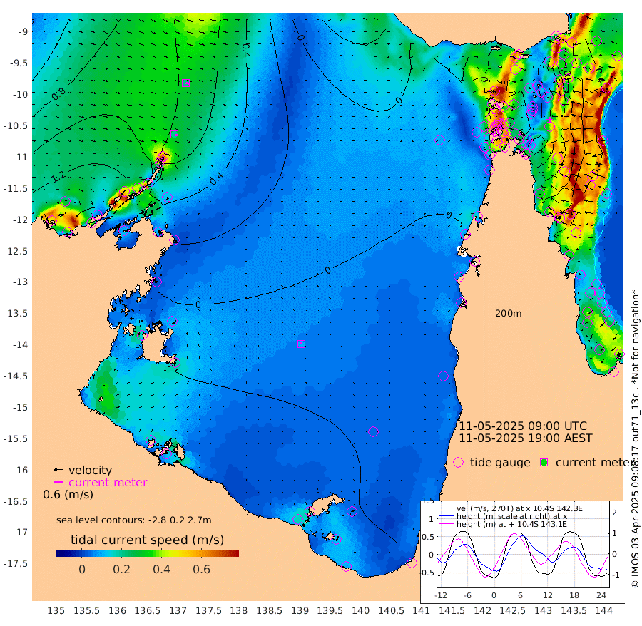 20cm/s 117T +3cm/s rms + 7cm/s -42T. ARA-GOC87 57m 10cm/s -13T +3cm/s rms + 2cm/s -2T. ARA-GOC87 60m 22cm/s 107T +2cm/s rms + 3cm/s 61T. ARA-GOC87 47m -19cm Daru -13cm Bobo Island 32cm Meer Island Barge 31cm Bramble Cay 8cm Unnamed Cay 0cm Pearce Cay 12cm Stephens Island 20cm Merrie England Shoals -14cm Mutacomal Reef 11cm Darnley Island Barge 37cm East Cay -9cm Yorke Island Barge -5cm Rennel Island -22cm Aureed Island -33cm Dungeness Reef -72cm Zagai Island -72cm Yam Island -93cm Dauan Island -94cm Saibai Island -76cm Phipi Reef -82cm Warrior Reef - West -62cm Mabuiag Island Barge -10cm Half Way Island -27cm Coconut Island -27cm Dugong Islet -51cm Poll Island -41cm Kirkcaldie Reef -76cm Suarji Island -52cm Sue Islet 11cm Hawkesbury Island -49cm Alert Patches -57cm Twin Island -7cm Badu Island -73cm St Pauls (Moa Island) -20cm Kubin (Moa Island) -49cm Ince Point -40cm Thursday Island -44cm Nardana Patches -21cm Turtle Head 1cm Round Island 9cm Goods Island 19cm Booby Island 14cm White Rocks Area 1cm Carpentaria -54cm Papou Point 34cm Bampfield Head 25cm Crab Island 7cm Red Wallis Island -12cm Packe Island -27cm Harrington Reef 1cm Herald Camp -32cm Sharp Point -11cm Red Island Point -27cm Possession Island -53cm Alpha Rock -44cm Frederick Point -15cm Wyborn Reef Light -25cm Tetley Island 15cm Triangle Reef 2cm Turtle Head Island 22cm Maclennan Cay 46cm Raine Island 6cm Mcsweeny Reef 16cm Collette Reef 32cm Shadwell Reef 21cm Hannibal Island 37cm Round Point 27cm Vrilya Point 31cm Cape Grenville 33cm Hicks Island 21cm Sir Charles Hardy Island 8cm Harvey Island 45cm Kay Reef 41cm Rocky Island 44cm Chapman Island 41cm Ham Reef 41cm Jubilee Reef 34cm Night Island 42cm Unnamed Reef No. 3 46cm Morris Island 44cm 1st 3 Mile Opening 41cm Creech Reef 44cm Fife Island 57cm Eden Reef 50cm Stanley Island 51cm Normanby River 135cm Yabooma Island 152cm Hutchison River 135cm Elcho Island 125cm North West Crocodile Island 71cm Cape Wessel 123cm Stevens Island 59cm Guluwuru Island 119cm Hopeful Bay 96cm Auster Point 91cm Two Island Bay 120cm Cadell Strait 58cm Mallison Island 60cm Melville Bay (Gove Harbour) 63cm Truant Island 33cm Cape Arnhem 21cm Cape Grey 12cm Hawk Island -9cm Milner Bay (Groote Eylandt) -16cm Cape Beatrice -51cm West Island -48cm Centre Island -44cm Mornington Island -51cm West Wellesley Islands -53cm Bountiful Island -39cm Albert River Mouth -27cm Sweers Island -33cm Karumba -40cm Nassau River Offshore -28cm Christmas Creek 9cm Archer River 3cm Boyd Point 10cm Weipa (Humbug Point) 28cm Pennefather River 9cm Cullen Point