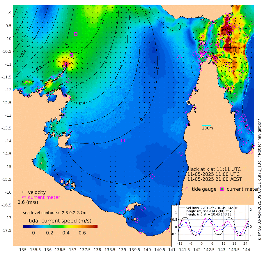 30cm/s 107T +3cm/s rms + 7cm/s -42T. ARA-GOC87 57m 3cm/s 21T +3cm/s rms + 2cm/s -2T. ARA-GOC87 60m 29cm/s 97T +2cm/s rms + 3cm/s 61T. ARA-GOC87 47m 89cm Daru 99cm Bobo Island 77cm Meer Island Barge 100cm Bramble Cay 100cm Unnamed Cay 100cm Pearce Cay 97cm Stephens Island 109cm Merrie England Shoals 95cm Mutacomal Reef 89cm Darnley Island Barge 90cm East Cay 84cm Yorke Island Barge 91cm Rennel Island 84cm Aureed Island 70cm Dungeness Reef 39cm Zagai Island 31cm Yam Island -15cm Dauan Island -9cm Saibai Island 14cm Phipi Reef 31cm Warrior Reef - West -2cm Mabuiag Island Barge 81cm Half Way Island 87cm Coconut Island 72cm Dugong Islet 55cm Poll Island 59cm Kirkcaldie Reef 35cm Suarji Island 49cm Sue Islet 12cm Hawkesbury Island 40cm Alert Patches 39cm Twin Island 14cm Badu Island 23cm St Pauls (Moa Island) 10cm Kubin (Moa Island) 19cm Ince Point 12cm Thursday Island 13cm Nardana Patches 13cm Turtle Head 20cm Round Island 9cm Goods Island -4cm Booby Island 4cm White Rocks Area -19cm Carpentaria 30cm Papou Point 27cm Bampfield Head 1cm Crab Island -7cm Red Wallis Island 9cm Packe Island 88cm Harrington Reef -4cm Herald Camp -2cm Sharp Point 22cm Red Island Point 35cm Possession Island 39cm Alpha Rock 62cm Frederick Point 96cm Wyborn Reef Light 88cm Tetley Island 69cm Triangle Reef 103cm Turtle Head Island 70cm Maclennan Cay 71cm Raine Island 92cm Mcsweeny Reef 93cm Collette Reef 77cm Shadwell Reef 104cm Hannibal Island 107cm Round Point -8cm Vrilya Point 90cm Cape Grenville 86cm Hicks Island 77cm Sir Charles Hardy Island 26cm Harvey Island 92cm Kay Reef 76cm Rocky Island 77cm Chapman Island 70cm Ham Reef 73cm Jubilee Reef 67cm Night Island 74cm Unnamed Reef No. 3 81cm Morris Island 69cm 1st 3 Mile Opening 73cm Creech Reef 79cm Fife Island 90cm Eden Reef 80cm Stanley Island 89cm Normanby River 97cm Yabooma Island 135cm Hutchison River 106cm Elcho Island 94cm North West Crocodile Island 85cm Cape Wessel 112cm Stevens Island 100cm Guluwuru Island 101cm Hopeful Bay 94cm Auster Point 81cm Two Island Bay 121cm Cadell Strait 146cm Mallison Island 89cm Melville Bay (Gove Harbour) 95cm Truant Island 60cm Cape Arnhem 37cm Cape Grey 26cm Hawk Island -14cm Milner Bay (Groote Eylandt) -22cm Cape Beatrice -65cm West Island -60cm Centre Island -44cm Mornington Island -53cm West Wellesley Islands -57cm Bountiful Island -62cm Albert River Mouth -54cm Sweers Island -55cm Karumba -39cm Nassau River Offshore -23cm Christmas Creek 0cm Archer River -6cm Boyd Point -7cm Weipa (Humbug Point) 5cm Pennefather River -17cm Cullen Point