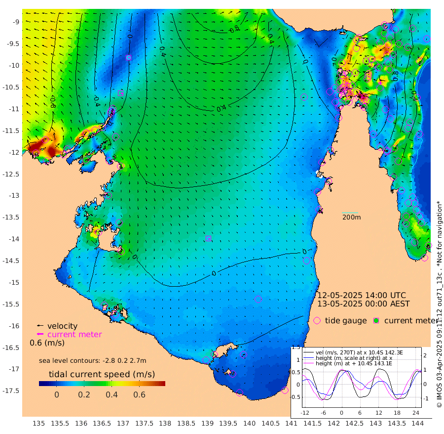 18cm/s 105T +3cm/s rms + 7cm/s -42T. ARA-GOC87 57m 13cm/s 144T +3cm/s rms + 2cm/s -2T. ARA-GOC87 60m 13cm/s 93T +2cm/s rms + 3cm/s 61T. ARA-GOC87 47m 107cm Daru 111cm Bobo Island 46cm Meer Island Barge 65cm Bramble Cay 89cm Unnamed Cay 99cm Pearce Cay 81cm Stephens Island 84cm Merrie England Shoals 105cm Mutacomal Reef 79cm Darnley Island Barge 52cm East Cay 95cm Yorke Island Barge 94cm Rennel Island 106cm Aureed Island 105cm Dungeness Reef 123cm Zagai Island 111cm Yam Island 104cm Dauan Island 112cm Saibai Island 114cm Phipi Reef 124cm Warrior Reef - West 87cm Mabuiag Island Barge 87cm Half Way Island 119cm Coconut Island 96cm Dugong Islet 111cm Poll Island 105cm Kirkcaldie Reef 125cm Suarji Island 113cm Sue Islet 42cm Hawkesbury Island 110cm Alert Patches 112cm Twin Island 60cm Badu Island 113cm St Pauls (Moa Island) 58cm Kubin (Moa Island) 91cm Ince Point 79cm Thursday Island 82cm Nardana Patches 64cm Turtle Head 58cm Round Island 37cm Goods Island 21cm Booby Island 25cm White Rocks Area 25cm Carpentaria 100cm Papou Point 51cm Bampfield Head 16cm Crab Island 24cm Red Wallis Island 50cm Packe Island 113cm Harrington Reef 39cm Herald Camp 34cm Sharp Point 61cm Red Island Point 92cm Possession Island 103cm Alpha Rock 114cm Frederick Point 114cm Wyborn Reef Light 117cm Tetley Island 59cm Triangle Reef 107cm Turtle Head Island 48cm Maclennan Cay 29cm Raine Island 85cm Mcsweeny Reef 79cm Collette Reef 50cm Shadwell Reef 82cm Hannibal Island 67cm Round Point 8cm Vrilya Point 58cm Cape Grenville 53cm Hicks Island 57cm Sir Charles Hardy Island 17cm Harvey Island 46cm Kay Reef 37cm Rocky Island 39cm Chapman Island 34cm Ham Reef 35cm Jubilee Reef 34cm Night Island 35cm Unnamed Reef No. 3 35cm Morris Island 30cm 1st 3 Mile Opening 35cm Creech Reef 33cm Fife Island 33cm Eden Reef 32cm Stanley Island 33cm Normanby River -73cm Yabooma Island -57cm Hutchison River -66cm Elcho Island -72cm North West Crocodile Island -1cm Cape Wessel -40cm Stevens Island 33cm Guluwuru Island -41cm Hopeful Bay -18cm Auster Point -31cm Two Island Bay -26cm Cadell Strait 113cm Mallison Island 19cm Melville Bay (Gove Harbour) 26cm Truant Island 23cm Cape Arnhem 8cm Cape Grey 3cm Hawk Island -24cm Milner Bay (Groote Eylandt) -31cm Cape Beatrice -45cm West Island -36cm Centre Island -32cm Mornington Island -37cm West Wellesley Islands -51cm Bountiful Island -90cm Albert River Mouth -87cm Sweers Island -80cm Karumba -23cm Nassau River Offshore 2cm Christmas Creek 10cm Archer River 18cm Boyd Point 8cm Weipa (Humbug Point) 9cm Pennefather River 11cm Cullen Point
