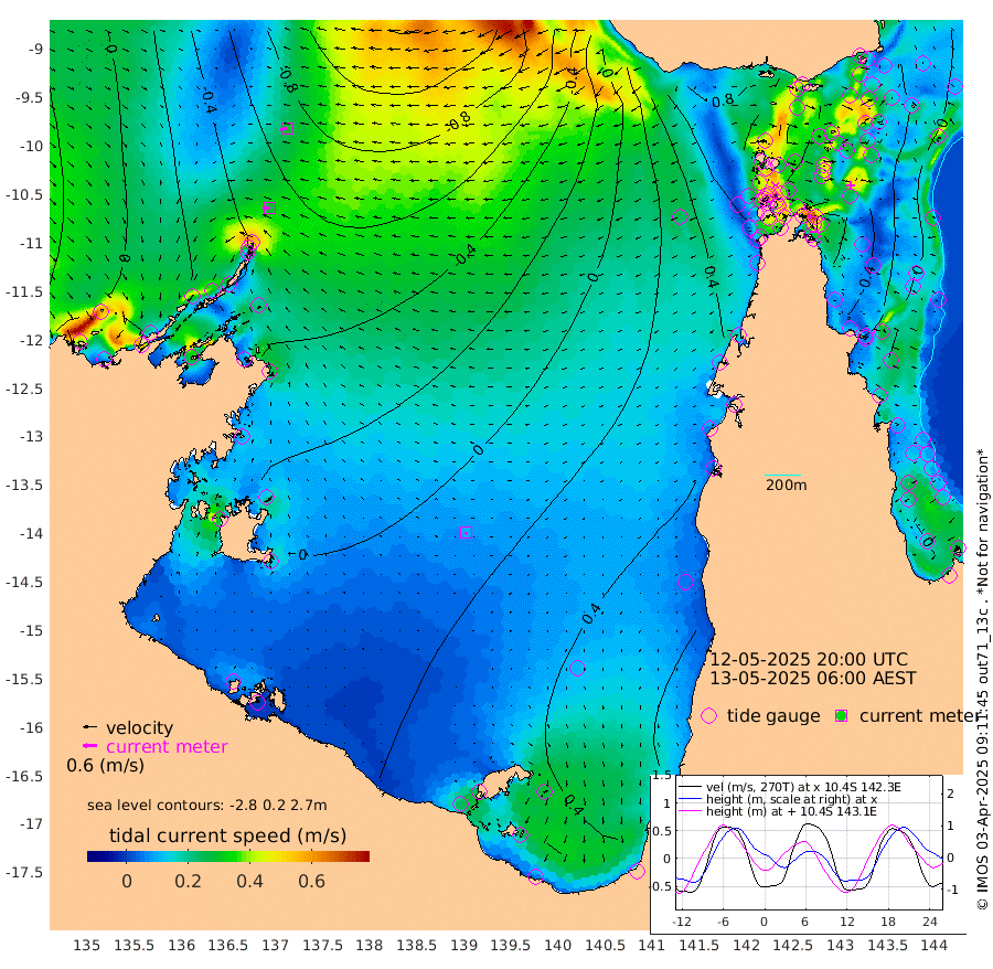30cm/s -89T +3cm/s rms + 7cm/s -42T. ARA-GOC87 57m 10cm/s -149T +3cm/s rms + 2cm/s -2T. ARA-GOC87 60m 29cm/s -100T +2cm/s rms + 3cm/s 61T. ARA-GOC87 47m -37cm Daru -45cm Bobo Island 2cm Meer Island Barge -13cm Bramble Cay -25cm Unnamed Cay -34cm Pearce Cay -20cm Stephens Island -27cm Merrie England Shoals -40cm Mutacomal Reef -19cm Darnley Island Barge 3cm East Cay -30cm Yorke Island Barge -27cm Rennel Island -38cm Aureed Island -28cm Dungeness Reef -46cm Zagai Island -29cm Yam Island -12cm Dauan Island -21cm Saibai Island -8cm Phipi Reef -37cm Warrior Reef - West -4cm Mabuiag Island Barge -26cm Half Way Island -45cm Coconut Island -27cm Dugong Islet -38cm Poll Island -24cm Kirkcaldie Reef -30cm Suarji Island -36cm Sue Islet 53cm Hawkesbury Island -20cm Alert Patches -28cm Twin Island 39cm Badu Island -28cm St Pauls (Moa Island) 27cm Kubin (Moa Island) -6cm Ince Point 8cm Thursday Island 4cm Nardana Patches 30cm Turtle Head 33cm Round Island 58cm Goods Island 71cm Booby Island 65cm White Rocks Area 44cm Carpentaria -23cm Papou Point 56cm Bampfield Head 57cm Crab Island 59cm Red Wallis Island 37cm Packe Island -39cm Harrington Reef 67cm Herald Camp -13cm Sharp Point 30cm Red Island Point -4cm Possession Island -36cm Alpha Rock -35cm Frederick Point -49cm Wyborn Reef Light -51cm Tetley Island -9cm Triangle Reef -39cm Turtle Head Island 7cm Maclennan Cay 17cm Raine Island -25cm Mcsweeny Reef -20cm Collette Reef 0cm Shadwell Reef -23cm Hannibal Island -14cm Round Point 52cm Vrilya Point -4cm Cape Grenville 3cm Hicks Island 10cm Sir Charles Hardy Island 0cm Harvey Island 5cm Kay Reef 14cm Rocky Island 13cm Chapman Island 15cm Ham Reef 13cm Jubilee Reef 7cm Night Island 13cm Unnamed Reef No. 3 14cm Morris Island 21cm 1st 3 Mile Opening 16cm Creech Reef 9cm Fife Island 16cm Eden Reef 16cm Stanley Island 14cm Normanby River -1cm Yabooma Island -23cm Hutchison River -19cm Elcho Island -10cm North West Crocodile Island -56cm Cape Wessel -45cm Stevens Island -71cm Guluwuru Island -33cm Hopeful Bay -43cm Auster Point -42cm Two Island Bay -52cm Cadell Strait -167cm Mallison Island -58cm Melville Bay (Gove Harbour) -67cm Truant Island -50cm Cape Arnhem -23cm Cape Grey -27cm Hawk Island -8cm Milner Bay (Groote Eylandt) 3cm Cape Beatrice 23cm West Island 17cm Centre Island 37cm Mornington Island 43cm West Wellesley Islands 80cm Bountiful Island 61cm Albert River Mouth 52cm Sweers Island 69cm Karumba 61cm Nassau River Offshore 62cm Christmas Creek 55cm Archer River 48cm Boyd Point 66cm Weipa (Humbug Point) 34cm Pennefather River 53cm Cullen Point