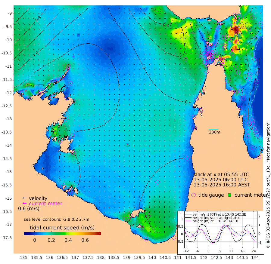 9cm/s -50T +3cm/s rms + 7cm/s -42T. ARA-GOC87 57m 19cm/s 9T +3cm/s rms + 2cm/s -2T. ARA-GOC87 60m 4cm/s -66T +2cm/s rms + 3cm/s 61T. ARA-GOC87 47m -134cm Daru -130cm Bobo Island -85cm Meer Island Barge -113cm Bramble Cay -131cm Unnamed Cay -126cm Pearce Cay -118cm Stephens Island -130cm Merrie England Shoals -138cm Mutacomal Reef -110cm Darnley Island Barge -96cm East Cay -117cm Yorke Island Barge -124cm Rennel Island -118cm Aureed Island -124cm Dungeness Reef -109cm Zagai Island -111cm Yam Island -92cm Dauan Island -89cm Saibai Island -121cm Phipi Reef -119cm Warrior Reef - West -72cm Mabuiag Island Barge -115cm Half Way Island -127cm Coconut Island -118cm Dugong Islet -113cm Poll Island -119cm Kirkcaldie Reef -110cm Suarji Island -109cm Sue Islet -61cm Hawkesbury Island -102cm Alert Patches -101cm Twin Island -72cm Badu Island -97cm St Pauls (Moa Island) -67cm Kubin (Moa Island) -82cm Ince Point -71cm Thursday Island -75cm Nardana Patches -71cm Turtle Head -65cm Round Island -54cm Goods Island -27cm Booby Island -36cm White Rocks Area 17cm Carpentaria -87cm Papou Point -44cm Bampfield Head -16cm Crab Island -25cm Red Wallis Island -60cm Packe Island -127cm Harrington Reef -52cm Herald Camp -24cm Sharp Point -69cm Red Island Point -82cm Possession Island -93cm Alpha Rock -113cm Frederick Point -133cm Wyborn Reef Light -129cm Tetley Island -83cm Triangle Reef -127cm Turtle Head Island -84cm Maclennan Cay -70cm Raine Island -116cm Mcsweeny Reef -113cm Collette Reef -87cm Shadwell Reef -123cm Hannibal Island -116cm Round Point 6cm Vrilya Point -102cm Cape Grenville -98cm Hicks Island -103cm Sir Charles Hardy Island -30cm Harvey Island -96cm Kay Reef -83cm Rocky Island -78cm Chapman Island -71cm Ham Reef -77cm Jubilee Reef -69cm Night Island -72cm Unnamed Reef No. 3 -83cm Morris Island -73cm 1st 3 Mile Opening -76cm Creech Reef -74cm Fife Island -88cm Eden Reef -80cm Stanley Island -89cm Normanby River -48cm Yabooma Island -76cm Hutchison River -46cm Elcho Island -44cm North West Crocodile Island -31cm Cape Wessel -48cm Stevens Island -63cm Guluwuru Island -42cm Hopeful Bay -35cm Auster Point -26cm Two Island Bay -64cm Cadell Strait -93cm Mallison Island -53cm Melville Bay (Gove Harbour) -51cm Truant Island -34cm Cape Arnhem -25cm Cape Grey -15cm Hawk Island 20cm Milner Bay (Groote Eylandt) 18cm Cape Beatrice 44cm West Island 46cm Centre Island -10cm Mornington Island -3cm West Wellesley Islands -40cm Bountiful Island -12cm Albert River Mouth -2cm Sweers Island -21cm Karumba -37cm Nassau River Offshore -49cm Christmas Creek -36cm Archer River -24cm Boyd Point -34cm Weipa (Humbug Point) -2cm Pennefather River -3cm Cullen Point