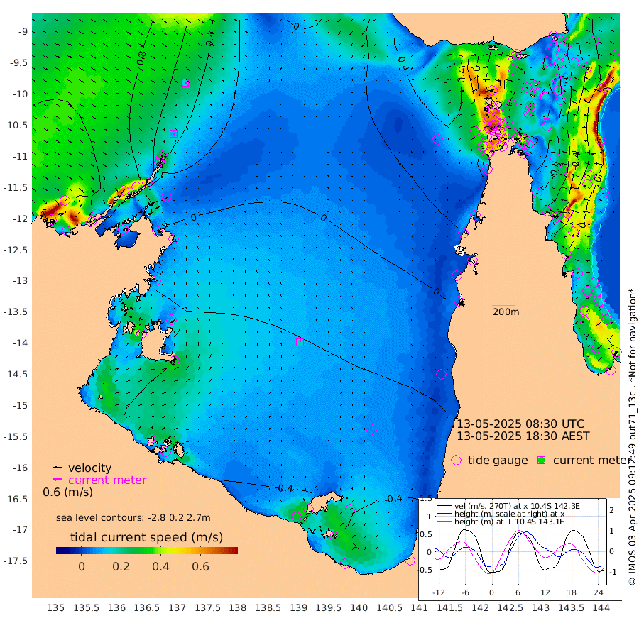 10cm/s 140T +3cm/s rms + 7cm/s -42T. ARA-GOC87 57m 17cm/s 2T +3cm/s rms + 2cm/s -2T. ARA-GOC87 60m 15cm/s 132T +2cm/s rms + 3cm/s 61T. ARA-GOC87 47m -81cm Daru -77cm Bobo Island -12cm Meer Island Barge -32cm Bramble Cay -57cm Unnamed Cay -62cm Pearce Cay -44cm Stephens Island -49cm Merrie England Shoals -81cm Mutacomal Reef -45cm Darnley Island Barge -15cm East Cay -65cm Yorke Island Barge -61cm Rennel Island -76cm Aureed Island -81cm Dungeness Reef -111cm Zagai Island -104cm Yam Island -115cm Dauan Island -123cm Saibai Island -117cm Phipi Reef -124cm Warrior Reef - West -75cm Mabuiag Island Barge -57cm Half Way Island -82cm Coconut Island -72cm Dugong Islet -90cm Poll Island -82cm Kirkcaldie Reef -105cm Suarji Island -95cm Sue Islet 16cm Hawkesbury Island -78cm Alert Patches -83cm Twin Island -13cm Badu Island -92cm St Pauls (Moa Island) -14cm Kubin (Moa Island) -61cm Ince Point -44cm Thursday Island -50cm Nardana Patches -23cm Turtle Head 4cm Round Island 20cm Goods Island 48cm Booby Island 37cm White Rocks Area 49cm Carpentaria -72cm Papou Point 55cm Bampfield Head 49cm Crab Island 35cm Red Wallis Island -3cm Packe Island -77cm Harrington Reef 23cm Herald Camp -37cm Sharp Point -21cm Red Island Point -40cm Possession Island -83cm Alpha Rock -83cm Frederick Point -78cm Wyborn Reef Light -83cm Tetley Island -28cm Triangle Reef -52cm Turtle Head Island -16cm Maclennan Cay 7cm Raine Island -52cm Mcsweeny Reef -45cm Collette Reef -18cm Shadwell Reef -46cm Hannibal Island -28cm Round Point 58cm Vrilya Point -23cm Cape Grenville -16cm Hicks Island -29cm Sir Charles Hardy Island -6cm Harvey Island -11cm Kay Reef -5cm Rocky Island -5cm Chapman Island -1cm Ham Reef -2cm Jubilee Reef -3cm Night Island -1cm Unnamed Reef No. 3 0cm Morris Island 8cm 1st 3 Mile Opening 1cm Creech Reef 0cm Fife Island 6cm Eden Reef 4cm Stanley Island 2cm Normanby River 107cm Yabooma Island 106cm Hutchison River 104cm Elcho Island 97cm North West Crocodile Island 43cm Cape Wessel 80cm Stevens Island 7cm Guluwuru Island 78cm Hopeful Bay 66cm Auster Point 72cm Two Island Bay 68cm Cadell Strait -77cm Mallison Island 15cm Melville Bay (Gove Harbour) 19cm Truant Island 2cm Cape Arnhem -5cm Cape Grey -10cm Hawk Island -9cm Milner Bay (Groote Eylandt) -15cm Cape Beatrice -31cm West Island -28cm Centre Island -63cm Mornington Island -65cm West Wellesley Islands -86cm Bountiful Island -66cm Albert River Mouth -61cm Sweers Island -65cm Karumba -63cm Nassau River Offshore -49cm Christmas Creek -4cm Archer River 6cm Boyd Point 10cm Weipa (Humbug Point) 38cm Pennefather River 36cm Cullen Point