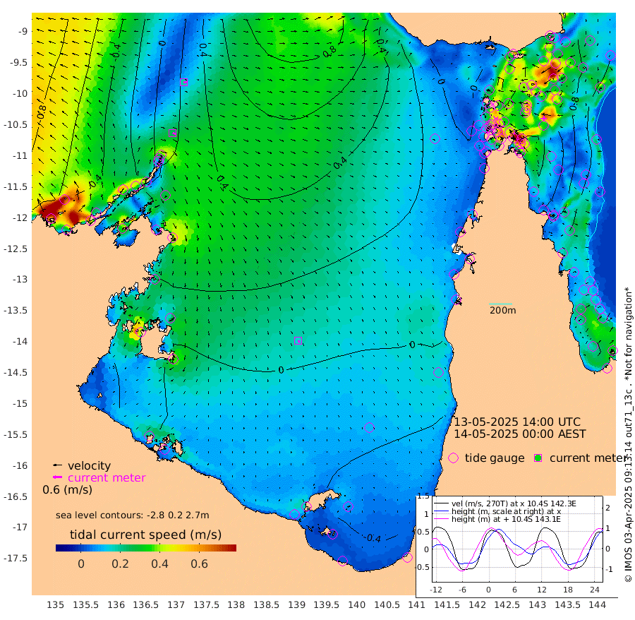25cm/s 108T +3cm/s rms + 7cm/s -42T. ARA-GOC87 57m 16cm/s 151T +3cm/s rms + 2cm/s -2T. ARA-GOC87 60m 18cm/s 97T +2cm/s rms + 3cm/s 61T. ARA-GOC87 47m 118cm Daru 119cm Bobo Island 59cm Meer Island Barge 81cm Bramble Cay 104cm Unnamed Cay 108cm Pearce Cay 92cm Stephens Island 101cm Merrie England Shoals 119cm Mutacomal Reef 90cm Darnley Island Barge 64cm East Cay 105cm Yorke Island Barge 104cm Rennel Island 111cm Aureed Island 112cm Dungeness Reef 125cm Zagai Island 114cm Yam Island 107cm Dauan Island 112cm Saibai Island 117cm Phipi Reef 126cm Warrior Reef - West 89cm Mabuiag Island Barge 97cm Half Way Island 125cm Coconut Island 104cm Dugong Islet 115cm Poll Island 110cm Kirkcaldie Reef 122cm Suarji Island 117cm Sue Islet 58cm Hawkesbury Island 113cm Alert Patches 114cm Twin Island 70cm Badu Island 114cm St Pauls (Moa Island) 69cm Kubin (Moa Island) 94cm Ince Point 83cm Thursday Island 86cm Nardana Patches 72cm Turtle Head 72cm Round Island 49cm Goods Island 31cm Booby Island 33cm White Rocks Area 27cm Carpentaria 100cm Papou Point 68cm Bampfield Head 24cm Crab Island 33cm Red Wallis Island 62cm Packe Island 118cm Harrington Reef 54cm Herald Camp 32cm Sharp Point 64cm Red Island Point 96cm Possession Island 108cm Alpha Rock 118cm Frederick Point 127cm Wyborn Reef Light 129cm Tetley Island 69cm Triangle Reef 120cm Turtle Head Island 57cm Maclennan Cay 41cm Raine Island 97cm Mcsweeny Reef 92cm Collette Reef 64cm Shadwell Reef 97cm Hannibal Island 84cm Round Point 15cm Vrilya Point 72cm Cape Grenville 66cm Hicks Island 70cm Sir Charles Hardy Island 21cm Harvey Island 62cm Kay Reef 50cm Rocky Island 51cm Chapman Island 45cm Ham Reef 47cm Jubilee Reef 45cm Night Island 46cm Unnamed Reef No. 3 48cm Morris Island 43cm 1st 3 Mile Opening 46cm Creech Reef 44cm Fife Island 49cm Eden Reef 46cm Stanley Island 47cm Normanby River -35cm Yabooma Island -15cm Hutchison River -31cm Elcho Island -40cm North West Crocodile Island 22cm Cape Wessel -2cm Stevens Island 60cm Guluwuru Island -6cm Hopeful Bay 10cm Auster Point -1cm Two Island Bay 12cm Cadell Strait 170cm Mallison Island 43cm Melville Bay (Gove Harbour) 52cm Truant Island 38cm Cape Arnhem 12cm Cape Grey 6cm Hawk Island -33cm Milner Bay (Groote Eylandt) -43cm Cape Beatrice -69cm West Island -61cm Centre Island -52cm Mornington Island -57cm West Wellesley Islands -73cm Bountiful Island -111cm Albert River Mouth -111cm Sweers Island -100cm Karumba -34cm Nassau River Offshore -2cm Christmas Creek 13cm Archer River 22cm Boyd Point 14cm Weipa (Humbug Point) 16cm Pennefather River 18cm Cullen Point