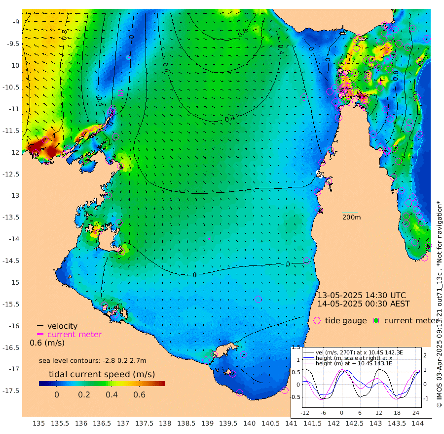 19cm/s 108T +3cm/s rms + 7cm/s -42T. ARA-GOC87 57m 18cm/s 152T +3cm/s rms + 2cm/s -2T. ARA-GOC87 60m 12cm/s 96T +2cm/s rms + 3cm/s 61T. ARA-GOC87 47m 107cm Daru 107cm Bobo Island 47cm Meer Island Barge 66cm Bramble Cay 90cm Unnamed Cay 95cm Pearce Cay 79cm Stephens Island 85cm Merrie England Shoals 106cm Mutacomal Reef 79cm Darnley Island Barge 51cm East Cay 95cm Yorke Island Barge 92cm Rennel Island 103cm Aureed Island 104cm Dungeness Reef 125cm Zagai Island 113cm Yam Island 115cm Dauan Island 122cm Saibai Island 121cm Phipi Reef 127cm Warrior Reef - West 95cm Mabuiag Island Barge 86cm Half Way Island 116cm Coconut Island 95cm Dugong Islet 111cm Poll Island 104cm Kirkcaldie Reef 124cm Suarji Island 115cm Sue Islet 58cm Hawkesbury Island 113cm Alert Patches 114cm Twin Island 71cm Badu Island 116cm St Pauls (Moa Island) 69cm Kubin (Moa Island) 96cm Ince Point 86cm Thursday Island 89cm Nardana Patches 74cm Turtle Head 71cm Round Island 49cm Goods Island 35cm Booby Island 35cm White Rocks Area 36cm Carpentaria 100cm Papou Point 68cm Bampfield Head 27cm Crab Island 37cm Red Wallis Island 63cm Packe Island 109cm Harrington Reef 57cm Herald Camp 35cm Sharp Point 65cm Red Island Point 96cm Possession Island 107cm Alpha Rock 114cm Frederick Point 115cm Wyborn Reef Light 118cm Tetley Island 61cm Triangle Reef 105cm Turtle Head Island 48cm Maclennan Cay 30cm Raine Island 85cm Mcsweeny Reef 80cm Collette Reef 53cm Shadwell Reef 83cm Hannibal Island 68cm Round Point 19cm Vrilya Point 59cm Cape Grenville 53cm Hicks Island 61cm Sir Charles Hardy Island 17cm Harvey Island 49cm Kay Reef 39cm Rocky Island 42cm Chapman Island 36cm Ham Reef 37cm Jubilee Reef 36cm Night Island 37cm Unnamed Reef No. 3 36cm Morris Island 32cm 1st 3 Mile Opening 37cm Creech Reef 34cm Fife Island 35cm Eden Reef 35cm Stanley Island 34cm Normanby River -75cm Yabooma Island -65cm Hutchison River -73cm Elcho Island -80cm North West Crocodile Island -3cm Cape Wessel -42cm Stevens Island 34cm Guluwuru Island -41cm Hopeful Bay -20cm Auster Point -31cm Two Island Bay -29cm Cadell Strait 147cm Mallison Island 19cm Melville Bay (Gove Harbour) 27cm Truant Island 23cm Cape Arnhem 3cm Cape Grey -1cm Hawk Island -33cm Milner Bay (Groote Eylandt) -41cm Cape Beatrice -57cm West Island -49cm Centre Island -42cm Mornington Island -46cm West Wellesley Islands -63cm Bountiful Island -107cm Albert River Mouth -106cm Sweers Island -95cm Karumba -25cm Nassau River Offshore 7cm Christmas Creek 18cm Archer River 28cm Boyd Point 19cm Weipa (Humbug Point) 18cm Pennefather River 25cm Cullen Point