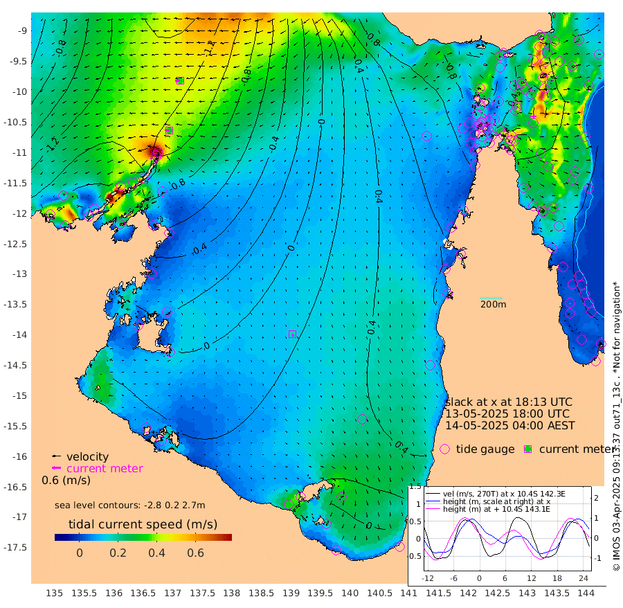 31cm/s -86T +3cm/s rms + 7cm/s -42T. ARA-GOC87 57m 17cm/s 166T +3cm/s rms + 2cm/s -2T. ARA-GOC87 60m 36cm/s -95T +2cm/s rms + 3cm/s 61T. ARA-GOC87 47m -23cm Daru -28cm Bobo Island -15cm Meer Island Barge -32cm Bramble Cay -32cm Unnamed Cay -26cm Pearce Cay -26cm Stephens Island -40cm Merrie England Shoals -31cm Mutacomal Reef -19cm Darnley Island Barge -16cm East Cay -17cm Yorke Island Barge -21cm Rennel Island -13cm Aureed Island -4cm Dungeness Reef 11cm Zagai Island 17cm Yam Island 56cm Dauan Island 56cm Saibai Island 47cm Phipi Reef 22cm Warrior Reef - West 52cm Mabuiag Island Barge -21cm Half Way Island -14cm Coconut Island -11cm Dugong Islet 1cm Poll Island 4cm Kirkcaldie Reef 33cm Suarji Island 11cm Sue Islet 72cm Hawkesbury Island 33cm Alert Patches 26cm Twin Island 64cm Badu Island 33cm St Pauls (Moa Island) 55cm Kubin (Moa Island) 43cm Ince Point 54cm Thursday Island 50cm Nardana Patches 62cm Turtle Head 61cm Round Island 73cm Goods Island 90cm Booby Island 78cm White Rocks Area 94cm Carpentaria 24cm Papou Point 90cm Bampfield Head 74cm Crab Island 84cm Red Wallis Island 65cm Packe Island -15cm Harrington Reef 96cm Herald Camp 12cm Sharp Point 59cm Red Island Point 43cm Possession Island 12cm Alpha Rock 7cm Frederick Point -30cm Wyborn Reef Light -24cm Tetley Island -7cm Triangle Reef -29cm Turtle Head Island -5cm Maclennan Cay -7cm Raine Island -23cm Mcsweeny Reef -22cm Collette Reef -12cm Shadwell Reef -31cm Hannibal Island -33cm Round Point 76cm Vrilya Point -20cm Cape Grenville -16cm Hicks Island -3cm Sir Charles Hardy Island -4cm Harvey Island -18cm Kay Reef -8cm Rocky Island -3cm Chapman Island -1cm Ham Reef -8cm Jubilee Reef -8cm Night Island -3cm Unnamed Reef No. 3 -13cm Morris Island -3cm 1st 3 Mile Opening -4cm Creech Reef -11cm Fife Island -17cm Eden Reef -11cm Stanley Island -20cm Normanby River -168cm Yabooma Island -209cm Hutchison River -183cm Elcho Island -174cm North West Crocodile Island -125cm Cape Wessel -181cm Stevens Island -129cm Guluwuru Island -154cm Hopeful Bay -136cm Auster Point -142cm Two Island Bay -187cm Cadell Strait -148cm Mallison Island -117cm Melville Bay (Gove Harbour) -121cm Truant Island -77cm Cape Arnhem -52cm Cape Grey -47cm Hawk Island -26cm Milner Bay (Groote Eylandt) -18cm Cape Beatrice 22cm West Island 24cm Centre Island 22cm Mornington Island 29cm West Wellesley Islands 32cm Bountiful Island -22cm Albert River Mouth -21cm Sweers Island -2cm Karumba 47cm Nassau River Offshore 65cm Christmas Creek 63cm Archer River 70cm Boyd Point 74cm Weipa (Humbug Point) 52cm Pennefather River 82cm Cullen Point