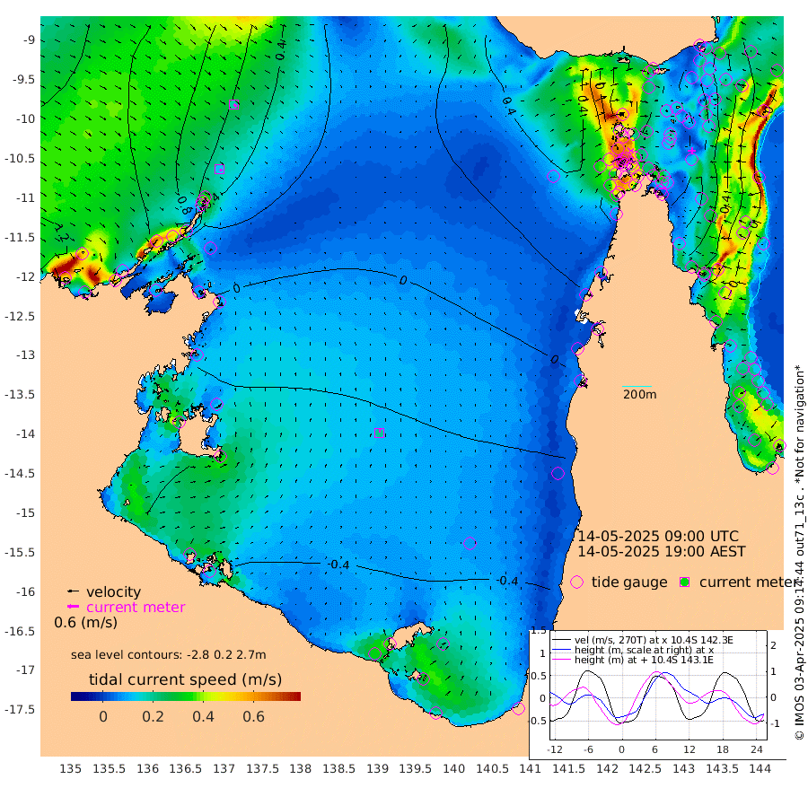 12cm/s 138T +3cm/s rms + 7cm/s -42T. ARA-GOC87 57m 19cm/s 5T +3cm/s rms + 2cm/s -2T. ARA-GOC87 60m 18cm/s 132T +2cm/s rms + 3cm/s 61T. ARA-GOC87 47m -73cm Daru -67cm Bobo Island -9cm Meer Island Barge -27cm Bramble Cay -51cm Unnamed Cay -53cm Pearce Cay -37cm Stephens Island -44cm Merrie England Shoals -73cm Mutacomal Reef -40cm Darnley Island Barge -11cm East Cay -59cm Yorke Island Barge -52cm Rennel Island -66cm Aureed Island -72cm Dungeness Reef -102cm Zagai Island -94cm Yam Island -113cm Dauan Island -121cm Saibai Island -117cm Phipi Reef -117cm Warrior Reef - West -71cm Mabuiag Island Barge -48cm Half Way Island -71cm Coconut Island -62cm Dugong Islet -79cm Poll Island -72cm Kirkcaldie Reef -93cm Suarji Island -88cm Sue Islet 19cm Hawkesbury Island -70cm Alert Patches -72cm Twin Island -7cm Badu Island -82cm St Pauls (Moa Island) -6cm Kubin (Moa Island) -52cm Ince Point -35cm Thursday Island -41cm Nardana Patches -15cm Turtle Head 9cm Round Island 27cm Goods Island 55cm Booby Island 48cm White Rocks Area 59cm Carpentaria -61cm Papou Point 63cm Bampfield Head 54cm Crab Island 44cm Red Wallis Island 6cm Packe Island -64cm Harrington Reef 27cm Herald Camp -36cm Sharp Point -15cm Red Island Point -33cm Possession Island -74cm Alpha Rock -72cm Frederick Point -69cm Wyborn Reef Light -74cm Tetley Island -24cm Triangle Reef -42cm Turtle Head Island -11cm Maclennan Cay 9cm Raine Island -46cm Mcsweeny Reef -41cm Collette Reef -17cm Shadwell Reef -41cm Hannibal Island -23cm Round Point 61cm Vrilya Point -19cm Cape Grenville -12cm Hicks Island -24cm Sir Charles Hardy Island -5cm Harvey Island -9cm Kay Reef -3cm Rocky Island -4cm Chapman Island 1cm Ham Reef 0cm Jubilee Reef 0cm Night Island 1cm Unnamed Reef No. 3 3cm Morris Island 11cm 1st 3 Mile Opening 3cm Creech Reef 2cm Fife Island 8cm Eden Reef 6cm Stanley Island 5cm Normanby River 116cm Yabooma Island 119cm Hutchison River 114cm Elcho Island 107cm North West Crocodile Island 54cm Cape Wessel 88cm Stevens Island 14cm Guluwuru Island 82cm Hopeful Bay 74cm Auster Point 80cm Two Island Bay 75cm Cadell Strait -94cm Mallison Island 20cm Melville Bay (Gove Harbour) 26cm Truant Island 6cm Cape Arnhem -5cm Cape Grey -13cm Hawk Island -11cm Milner Bay (Groote Eylandt) -18cm Cape Beatrice -35cm West Island -32cm Centre Island -75cm Mornington Island -77cm West Wellesley Islands -102cm Bountiful Island -82cm Albert River Mouth -83cm Sweers Island -84cm Karumba -75cm Nassau River Offshore -58cm Christmas Creek -10cm Archer River 5cm Boyd Point 8cm Weipa (Humbug Point) 35cm Pennefather River 38cm Cullen Point