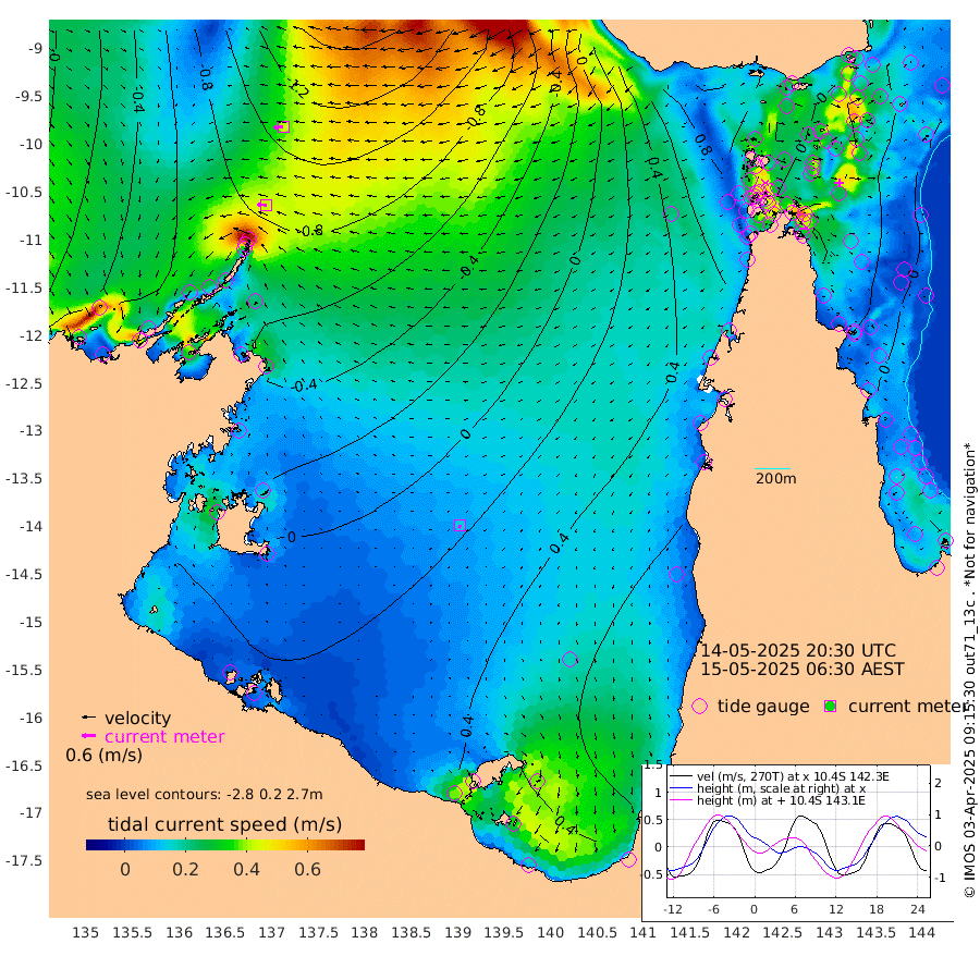42cm/s -88T +3cm/s rms + 7cm/s -42T. ARA-GOC87 57m 15cm/s -156T +3cm/s rms + 2cm/s -2T. ARA-GOC87 60m 42cm/s -97T +2cm/s rms + 3cm/s 61T. ARA-GOC87 47m -28cm Daru -33cm Bobo Island 0cm Meer Island Barge -14cm Bramble Cay -24cm Unnamed Cay -22cm Pearce Cay -15cm Stephens Island -26cm Merrie England Shoals -33cm Mutacomal Reef -16cm Darnley Island Barge 5cm East Cay -23cm Yorke Island Barge -18cm Rennel Island -23cm Aureed Island -13cm Dungeness Reef -30cm Zagai Island -14cm Yam Island 5cm Dauan Island -6cm Saibai Island 17cm Phipi Reef -16cm Warrior Reef - West 11cm Mabuiag Island Barge -19cm Half Way Island -30cm Coconut Island -16cm Dugong Islet -21cm Poll Island -9cm Kirkcaldie Reef -4cm Suarji Island -22cm Sue Islet 69cm Hawkesbury Island 2cm Alert Patches -6cm Twin Island 51cm Badu Island -6cm St Pauls (Moa Island) 44cm Kubin (Moa Island) 14cm Ince Point 27cm Thursday Island 23cm Nardana Patches 48cm Turtle Head 52cm Round Island 71cm Goods Island 84cm Booby Island 76cm White Rocks Area 55cm Carpentaria -5cm Papou Point 72cm Bampfield Head 69cm Crab Island 74cm Red Wallis Island 58cm Packe Island -23cm Harrington Reef 89cm Herald Camp -5cm Sharp Point 51cm Red Island Point 21cm Possession Island -22cm Alpha Rock -16cm Frederick Point -41cm Wyborn Reef Light -40cm Tetley Island -4cm Triangle Reef -30cm Turtle Head Island 9cm Maclennan Cay 13cm Raine Island -19cm Mcsweeny Reef -17cm Collette Reef -2cm Shadwell Reef -21cm Hannibal Island -12cm Round Point 62cm Vrilya Point -3cm Cape Grenville 4cm Hicks Island 8cm Sir Charles Hardy Island 1cm Harvey Island 3cm Kay Reef 13cm Rocky Island 12cm Chapman Island 13cm Ham Reef 9cm Jubilee Reef 8cm Night Island 12cm Unnamed Reef No. 3 11cm Morris Island 15cm 1st 3 Mile Opening 14cm Creech Reef 10cm Fife Island 10cm Eden Reef 12cm Stanley Island 11cm Normanby River -55cm Yabooma Island -83cm Hutchison River -71cm Elcho Island -59cm North West Crocodile Island -95cm Cape Wessel -99cm Stevens Island -118cm Guluwuru Island -76cm Hopeful Bay -84cm Auster Point -85cm Two Island Bay -108cm Cadell Strait -238cm Mallison Island -95cm Melville Bay (Gove Harbour) -107cm Truant Island -74cm Cape Arnhem -42cm Cape Grey -33cm Hawk Island -14cm Milner Bay (Groote Eylandt) 2cm Cape Beatrice 34cm West Island 31cm Centre Island 59cm Mornington Island 58cm West Wellesley Islands 96cm Bountiful Island 67cm Albert River Mouth 66cm Sweers Island 89cm Karumba 84cm Nassau River Offshore 84cm Christmas Creek 71cm Archer River 61cm Boyd Point 79cm Weipa (Humbug Point) 45cm Pennefather River 67cm Cullen Point