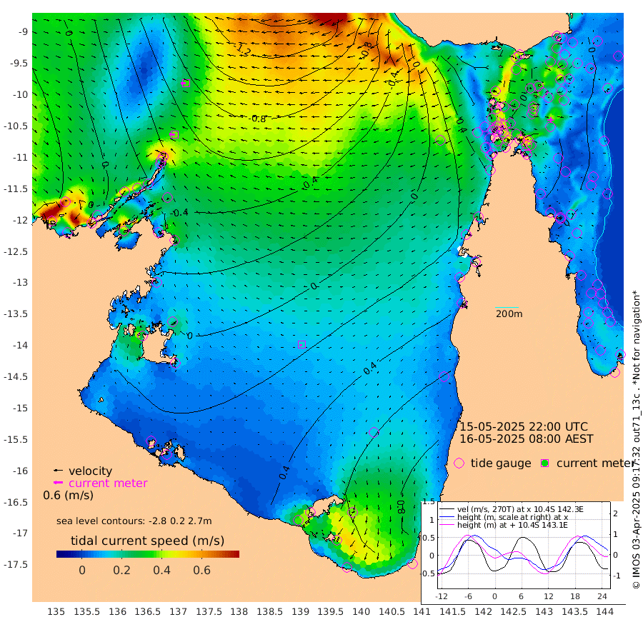 38cm/s -88T +3cm/s rms + 7cm/s -42T. ARA-GOC87 57m 16cm/s -132T +3cm/s rms + 2cm/s -2T. ARA-GOC87 60m 36cm/s -95T +2cm/s rms + 3cm/s 61T. ARA-GOC87 47m -11cm Daru -15cm Bobo Island 5cm Meer Island Barge -1cm Bramble Cay -9cm Unnamed Cay -4cm Pearce Cay -2cm Stephens Island -11cm Merrie England Shoals -16cm Mutacomal Reef -7cm Darnley Island Barge 11cm East Cay -12cm Yorke Island Barge -4cm Rennel Island -10cm Aureed Island 1cm Dungeness Reef -20cm Zagai Island -5cm Yam Island 5cm Dauan Island -11cm Saibai Island 31cm Phipi Reef -5cm Warrior Reef - West 3cm Mabuiag Island Barge -5cm Half Way Island -15cm Coconut Island -5cm Dugong Islet -10cm Poll Island 1cm Kirkcaldie Reef 3cm Suarji Island -17cm Sue Islet 52cm Hawkesbury Island 3cm Alert Patches -3cm Twin Island 39cm Badu Island -3cm St Pauls (Moa Island) 35cm Kubin (Moa Island) 10cm Ince Point 18cm Thursday Island 16cm Nardana Patches 37cm Turtle Head 41cm Round Island 53cm Goods Island 54cm Booby Island 52cm White Rocks Area 10cm Carpentaria -2cm Papou Point 39cm Bampfield Head 43cm Crab Island 46cm Red Wallis Island 44cm Packe Island -9cm Harrington Reef 65cm Herald Camp -5cm Sharp Point 42cm Red Island Point 19cm Possession Island -20cm Alpha Rock -8cm Frederick Point -25cm Wyborn Reef Light -26cm Tetley Island 0cm Triangle Reef -15cm Turtle Head Island 11cm Maclennan Cay 14cm Raine Island -8cm Mcsweeny Reef -8cm Collette Reef 2cm Shadwell Reef -8cm Hannibal Island 1cm Round Point 30cm Vrilya Point 5cm Cape Grenville 11cm Hicks Island 10cm Sir Charles Hardy Island 3cm Harvey Island 7cm Kay Reef 15cm Rocky Island 11cm Chapman Island 10cm Ham Reef 9cm Jubilee Reef 11cm Night Island 10cm Unnamed Reef No. 3 14cm Morris Island 14cm 1st 3 Mile Opening 13cm Creech Reef 11cm Fife Island 14cm Eden Reef 12cm Stanley Island 16cm Normanby River 7cm Yabooma Island -1cm Hutchison River -2cm Elcho Island 10cm North West Crocodile Island -63cm Cape Wessel -40cm Stevens Island -85cm Guluwuru Island -24cm Hopeful Bay -43cm Auster Point -41cm Two Island Bay -43cm Cadell Strait -242cm Mallison Island -62cm Melville Bay (Gove Harbour) -76cm Truant Island -54cm Cape Arnhem -25cm Cape Grey -12cm Hawk Island -1cm Milner Bay (Groote Eylandt) 16cm Cape Beatrice 36cm West Island 34cm Centre Island 80cm Mornington Island 72cm West Wellesley Islands 126cm Bountiful Island 120cm Albert River Mouth 119cm Sweers Island 140cm Karumba 97cm Nassau River Offshore 83cm Christmas Creek 59cm Archer River 40cm Boyd Point 61cm Weipa (Humbug Point) 25cm Pennefather River 38cm Cullen Point