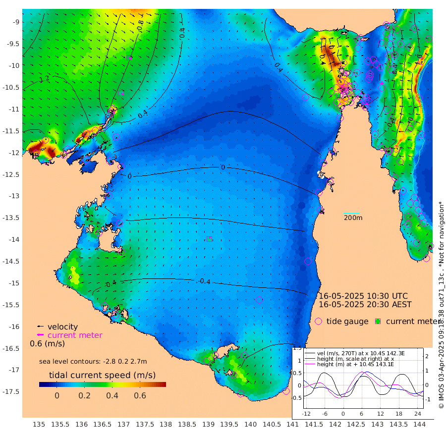 21cm/s 130T +3cm/s rms + 7cm/s -42T. ARA-GOC87 57m 20cm/s 10T +3cm/s rms + 2cm/s -2T. ARA-GOC87 60m 27cm/s 127T +2cm/s rms + 3cm/s 61T. ARA-GOC87 47m -43cm Daru -32cm Bobo Island 2cm Meer Island Barge -10cm Bramble Cay -28cm Unnamed Cay -21cm Pearce Cay -14cm Stephens Island -24cm Merrie England Shoals -44cm Mutacomal Reef -21cm Darnley Island Barge 3cm East Cay -33cm Yorke Island Barge -24cm Rennel Island -34cm Aureed Island -39cm Dungeness Reef -60cm Zagai Island -53cm Yam Island -79cm Dauan Island -87cm Saibai Island -83cm Phipi Reef -76cm Warrior Reef - West -38cm Mabuiag Island Barge -21cm Half Way Island -33cm Coconut Island -31cm Dugong Islet -41cm Poll Island -37cm Kirkcaldie Reef -48cm Suarji Island -55cm Sue Islet 44cm Hawkesbury Island -34cm Alert Patches -32cm Twin Island 26cm Badu Island -41cm St Pauls (Moa Island) 25cm Kubin (Moa Island) -17cm Ince Point -2cm Thursday Island -7cm Nardana Patches 15cm Turtle Head 34cm Round Island 54cm Goods Island 77cm Booby Island 75cm White Rocks Area 77cm Carpentaria -20cm Papou Point 87cm Bampfield Head 69cm Crab Island 67cm Red Wallis Island 34cm Packe Island -27cm Harrington Reef 46cm Herald Camp -26cm Sharp Point 15cm Red Island Point -2cm Possession Island -40cm Alpha Rock -33cm Frederick Point -36cm Wyborn Reef Light -39cm Tetley Island -9cm Triangle Reef -10cm Turtle Head Island 3cm Maclennan Cay 16cm Raine Island -23cm Mcsweeny Reef -24cm Collette Reef -8cm Shadwell Reef -23cm Hannibal Island -6cm Round Point 67cm Vrilya Point -6cm Cape Grenville 2cm Hicks Island -8cm Sir Charles Hardy Island -1cm Harvey Island 0cm Kay Reef 4cm Rocky Island 4cm Chapman Island 7cm Ham Reef 7cm Jubilee Reef 6cm Night Island 8cm Unnamed Reef No. 3 11cm Morris Island 17cm 1st 3 Mile Opening 11cm Creech Reef 6cm Fife Island 15cm Eden Reef 9cm Stanley Island 13cm Normanby River 147cm Yabooma Island 165cm Hutchison River 149cm Elcho Island 140cm North West Crocodile Island 85cm Cape Wessel 117cm Stevens Island 46cm Guluwuru Island 102cm Hopeful Bay 100cm Auster Point 104cm Two Island Bay 111cm Cadell Strait -102cm Mallison Island 44cm Melville Bay (Gove Harbour) 53cm Truant Island 23cm Cape Arnhem 4cm Cape Grey -14cm Hawk Island -19cm Milner Bay (Groote Eylandt) -29cm Cape Beatrice -57cm West Island -53cm Centre Island -101cm Mornington Island -104cm West Wellesley Islands -127cm Bountiful Island -112cm Albert River Mouth -126cm Sweers Island -119cm Karumba -95cm Nassau River Offshore -69cm Christmas Creek -15cm Archer River 6cm Boyd Point 10cm Weipa (Humbug Point) 31cm Pennefather River 44cm Cullen Point