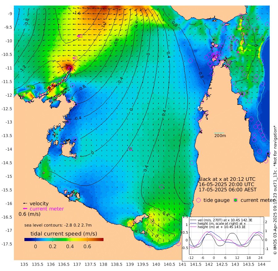 46cm/s -87T +3cm/s rms + 7cm/s -42T. ARA-GOC87 57m 25cm/s 178T +3cm/s rms + 2cm/s -2T. ARA-GOC87 60m 52cm/s -95T +2cm/s rms + 3cm/s 61T. ARA-GOC87 47m 8cm Daru -2cm Bobo Island 1cm Meer Island Barge -2cm Bramble Cay 2cm Unnamed Cay 0cm Pearce Cay 2cm Stephens Island 2cm Merrie England Shoals 10cm Mutacomal Reef 1cm Darnley Island Barge 9cm East Cay 3cm Yorke Island Barge 10cm Rennel Island 9cm Aureed Island 18cm Dungeness Reef 18cm Zagai Island 31cm Yam Island 53cm Dauan Island 49cm Saibai Island 55cm Phipi Reef 35cm Warrior Reef - West 54cm Mabuiag Island Barge 7cm Half Way Island 13cm Coconut Island 15cm Dugong Islet 23cm Poll Island 28cm Kirkcaldie Reef 46cm Suarji Island 23cm Sue Islet 92cm Hawkesbury Island 52cm Alert Patches 44cm Twin Island 75cm Badu Island 45cm St Pauls (Moa Island) 74cm Kubin (Moa Island) 59cm Ince Point 68cm Thursday Island 65cm Nardana Patches 80cm Turtle Head 84cm Round Island 90cm Goods Island 102cm Booby Island 94cm White Rocks Area 91cm Carpentaria 34cm Papou Point 104cm Bampfield Head 86cm Crab Island 103cm Red Wallis Island 96cm Packe Island 16cm Harrington Reef 120cm Herald Camp 15cm Sharp Point 73cm Red Island Point 59cm Possession Island 35cm Alpha Rock 32cm Frederick Point 6cm Wyborn Reef Light 10cm Tetley Island 12cm Triangle Reef -2cm Turtle Head Island 13cm Maclennan Cay 9cm Raine Island 7cm Mcsweeny Reef 7cm Collette Reef 8cm Shadwell Reef 1cm Hannibal Island 4cm Round Point 84cm Vrilya Point 11cm Cape Grenville 8cm Hicks Island 18cm Sir Charles Hardy Island 4cm Harvey Island 11cm Kay Reef 12cm Rocky Island 17cm Chapman Island 15cm Ham Reef 8cm Jubilee Reef 13cm Night Island 17cm Unnamed Reef No. 3 9cm Morris Island 8cm 1st 3 Mile Opening 12cm Creech Reef 16cm Fife Island 2cm Eden Reef 11cm Stanley Island 6cm Normanby River -167cm Yabooma Island -209cm Hutchison River -181cm Elcho Island -169cm North West Crocodile Island -140cm Cape Wessel -179cm Stevens Island -155cm Guluwuru Island -148cm Hopeful Bay -148cm Auster Point -153cm Two Island Bay -202cm Cadell Strait -152cm Mallison Island -132cm Melville Bay (Gove Harbour) -140cm Truant Island -92cm Cape Arnhem -69cm Cape Grey -48cm Hawk Island -35cm Milner Bay (Groote Eylandt) -18cm Cape Beatrice 22cm West Island 23cm Centre Island 43cm Mornington Island 42cm West Wellesley Islands 49cm Bountiful Island -1cm Albert River Mouth -2cm Sweers Island 29cm Karumba 78cm Nassau River Offshore 94cm Christmas Creek 84cm Archer River 81cm Boyd Point 90cm Weipa (Humbug Point) 64cm Pennefather River 94cm Cullen Point