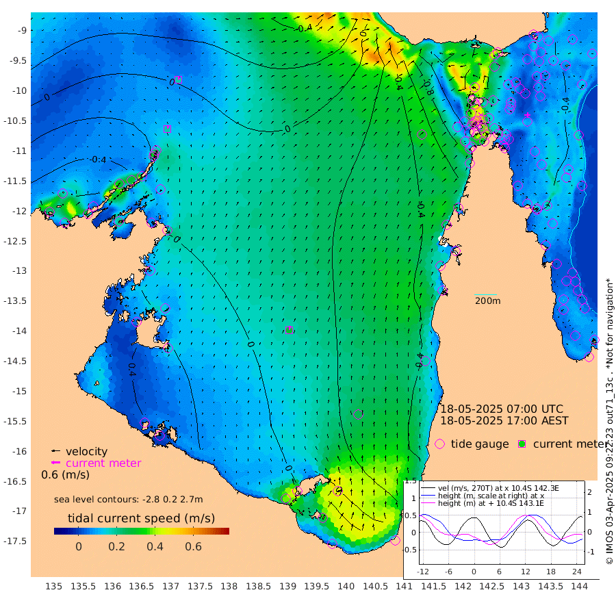 18cm/s 12T +3cm/s rms + 7cm/s -42T. ARA-GOC87 57m 29cm/s 9T +3cm/s rms + 2cm/s -2T. ARA-GOC87 60m 18cm/s 27T +2cm/s rms + 3cm/s 61T. ARA-GOC87 47m -53cm Daru -47cm Bobo Island -44cm Meer Island Barge -45cm Bramble Cay -47cm Unnamed Cay -58cm Pearce Cay -50cm Stephens Island -39cm Merrie England Shoals -47cm Mutacomal Reef -44cm Darnley Island Barge -46cm East Cay -46cm Yorke Island Barge -53cm Rennel Island -51cm Aureed Island -70cm Dungeness Reef -63cm Zagai Island -76cm Yam Island -105cm Dauan Island -75cm Saibai Island -113cm Phipi Reef -81cm Warrior Reef - West -78cm Mabuiag Island Barge -54cm Half Way Island -55cm Coconut Island -59cm Dugong Islet -66cm Poll Island -68cm Kirkcaldie Reef -77cm Suarji Island -50cm Sue Islet -146cm Hawkesbury Island -79cm Alert Patches -77cm Twin Island -135cm Badu Island -82cm St Pauls (Moa Island) -133cm Kubin (Moa Island) -92cm Ince Point -101cm Thursday Island -100cm Nardana Patches -125cm Turtle Head -130cm Round Island -145cm Goods Island -143cm Booby Island -136cm White Rocks Area -82cm Carpentaria -73cm Papou Point -143cm Bampfield Head -115cm Crab Island -136cm Red Wallis Island -143cm Packe Island -53cm Harrington Reef -159cm Herald Camp -12cm Sharp Point -102cm Red Island Point -92cm Possession Island -52cm Alpha Rock -65cm Frederick Point -46cm Wyborn Reef Light -49cm Tetley Island -46cm Triangle Reef -58cm Turtle Head Island -50cm Maclennan Cay -44cm Raine Island -44cm Mcsweeny Reef -39cm Collette Reef -40cm Shadwell Reef -41cm Hannibal Island -46cm Round Point -91cm Vrilya Point -42cm Cape Grenville -50cm Hicks Island -58cm Sir Charles Hardy Island -15cm Harvey Island -37cm Kay Reef -44cm Rocky Island -43cm Chapman Island -39cm Ham Reef -41cm Jubilee Reef -42cm Night Island -39cm Unnamed Reef No. 3 -45cm Morris Island -50cm 1st 3 Mile Opening -46cm Creech Reef -36cm Fife Island -51cm Eden Reef -42cm Stanley Island -42cm Normanby River -67cm Yabooma Island -81cm Hutchison River -57cm Elcho Island -56cm North West Crocodile Island -6cm Cape Wessel -29cm Stevens Island -9cm Guluwuru Island -28cm Hopeful Bay -20cm Auster Point -29cm Two Island Bay -51cm Cadell Strait 85cm Mallison Island -10cm Melville Bay (Gove Harbour) -9cm Truant Island 1cm Cape Arnhem 24cm Cape Grey 24cm Hawk Island 60cm Milner Bay (Groote Eylandt) 53cm Cape Beatrice 80cm West Island 78cm Centre Island 32cm Mornington Island 41cm West Wellesley Islands 19cm Bountiful Island 39cm Albert River Mouth 74cm Sweers Island 25cm Karumba -29cm Nassau River Offshore -65cm Christmas Creek -75cm Archer River -79cm Boyd Point -100cm Weipa (Humbug Point) -63cm Pennefather River -98cm Cullen Point