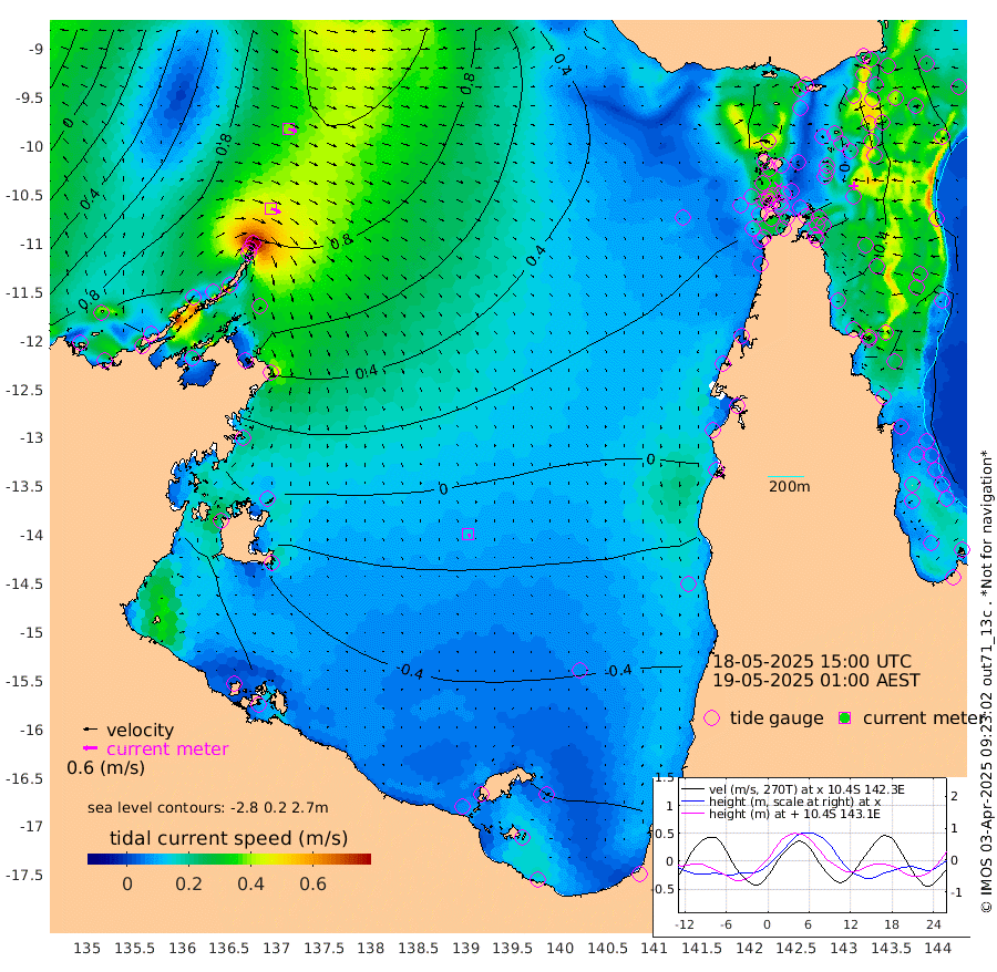 44cm/s 114T +3cm/s rms + 7cm/s -42T. ARA-GOC87 57m 14cm/s 151T +3cm/s rms + 2cm/s -2T. ARA-GOC87 60m 38cm/s 109T +2cm/s rms + 3cm/s 61T. ARA-GOC87 47m 52cm Daru 54cm Bobo Island 59cm Meer Island Barge 57cm Bramble Cay 57cm Unnamed Cay 59cm Pearce Cay 59cm Stephens Island 51cm Merrie England Shoals 47cm Mutacomal Reef 61cm Darnley Island Barge 55cm East Cay 57cm Yorke Island Barge 53cm Rennel Island 51cm Aureed Island 53cm Dungeness Reef 49cm Zagai Island 50cm Yam Island 57cm Dauan Island 45cm Saibai Island 40cm Phipi Reef 48cm Warrior Reef - West 42cm Mabuiag Island Barge 56cm Half Way Island 49cm Coconut Island 55cm Dugong Islet 48cm Poll Island 48cm Kirkcaldie Reef 36cm Suarji Island 45cm Sue Islet 79cm Hawkesbury Island 41cm Alert Patches 45cm Twin Island 75cm Badu Island 46cm St Pauls (Moa Island) 73cm Kubin (Moa Island) 48cm Ince Point 53cm Thursday Island 52cm Nardana Patches 63cm Turtle Head 65cm Round Island 78cm Goods Island 77cm Booby Island 72cm White Rocks Area 59cm Carpentaria 47cm Papou Point 90cm Bampfield Head 60cm Crab Island 70cm Red Wallis Island 68cm Packe Island 47cm Harrington Reef 76cm Herald Camp 1cm Sharp Point 46cm Red Island Point 46cm Possession Island 38cm Alpha Rock 45cm Frederick Point 52cm Wyborn Reef Light 51cm Tetley Island 50cm Triangle Reef 68cm Turtle Head Island 55cm Maclennan Cay 53cm Raine Island 52cm Mcsweeny Reef 49cm Collette Reef 51cm Shadwell Reef 55cm Hannibal Island 55cm Round Point 50cm Vrilya Point 49cm Cape Grenville 57cm Hicks Island 66cm Sir Charles Hardy Island 16cm Harvey Island 49cm Kay Reef 51cm Rocky Island 50cm Chapman Island 50cm Ham Reef 55cm Jubilee Reef 46cm Night Island 47cm Unnamed Reef No. 3 53cm Morris Island 61cm 1st 3 Mile Opening 55cm Creech Reef 45cm Fife Island 66cm Eden Reef 54cm Stanley Island 56cm Normanby River 121cm Yabooma Island 145cm Hutchison River 111cm Elcho Island 99cm North West Crocodile Island 103cm Cape Wessel 112cm Stevens Island 127cm Guluwuru Island 92cm Hopeful Bay 103cm Auster Point 113cm Two Island Bay 150cm Cadell Strait 152cm Mallison Island 99cm Melville Bay (Gove Harbour) 113cm Truant Island 68cm Cape Arnhem 21cm Cape Grey -9cm Hawk Island -52cm Milner Bay (Groote Eylandt) -66cm Cape Beatrice -119cm West Island -119cm Centre Island -122cm Mornington Island -118cm West Wellesley Islands -135cm Bountiful Island -156cm Albert River Mouth -187cm Sweers Island -165cm Karumba -80cm Nassau River Offshore -30cm Christmas Creek 8cm Archer River 31cm Boyd Point 33cm Weipa (Humbug Point) 26cm Pennefather River 45cm Cullen Point