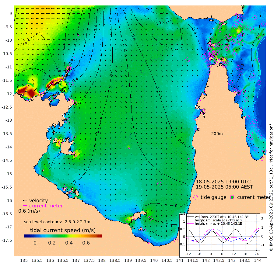 12cm/s -99T +3cm/s rms + 7cm/s -42T. ARA-GOC87 57m 36cm/s 165T +3cm/s rms + 2cm/s -2T. ARA-GOC87 60m 25cm/s -98T +2cm/s rms + 3cm/s 61T. ARA-GOC87 47m 92cm Daru 76cm Bobo Island 54cm Meer Island Barge 69cm Bramble Cay 88cm Unnamed Cay 71cm Pearce Cay 77cm Stephens Island 91cm Merrie England Shoals 100cm Mutacomal Reef 75cm Darnley Island Barge 60cm East Cay 80cm Yorke Island Barge 84cm Rennel Island 75cm Aureed Island 82cm Dungeness Reef 76cm Zagai Island 86cm Yam Island 81cm Dauan Island 82cm Saibai Island 71cm Phipi Reef 88cm Warrior Reef - West 71cm Mabuiag Island Barge 82cm Half Way Island 83cm Coconut Island 90cm Dugong Islet 83cm Poll Island 91cm Kirkcaldie Reef 77cm Suarji Island 88cm Sue Islet 78cm Hawkesbury Island 88cm Alert Patches 87cm Twin Island 68cm Badu Island 85cm St Pauls (Moa Island) 77cm Kubin (Moa Island) 83cm Ince Point 81cm Thursday Island 81cm Nardana Patches 80cm Turtle Head 72cm Round Island 71cm Goods Island 70cm Booby Island 65cm White Rocks Area 71cm Carpentaria 68cm Papou Point 77cm Bampfield Head 59cm Crab Island 77cm Red Wallis Island 90cm Packe Island 90cm Harrington Reef 92cm Herald Camp 27cm Sharp Point 63cm Red Island Point 68cm Possession Island 92cm Alpha Rock 90cm Frederick Point 94cm Wyborn Reef Light 95cm Tetley Island 58cm Triangle Reef 82cm Turtle Head Island 58cm Maclennan Cay 45cm Raine Island 82cm Mcsweeny Reef 79cm Collette Reef 63cm Shadwell Reef 82cm Hannibal Island 74cm Round Point 63cm Vrilya Point 73cm Cape Grenville 61cm Hicks Island 76cm Sir Charles Hardy Island 21cm Harvey Island 68cm Kay Reef 53cm Rocky Island 54cm Chapman Island 53cm Ham Reef 53cm Jubilee Reef 52cm Night Island 55cm Unnamed Reef No. 3 53cm Morris Island 48cm 1st 3 Mile Opening 54cm Creech Reef 60cm Fife Island 51cm Eden Reef 60cm Stanley Island 56cm Normanby River -149cm Yabooma Island -179cm Hutchison River -164cm Elcho Island -161cm North West Crocodile Island -81cm Cape Wessel -126cm Stevens Island -56cm Guluwuru Island -116cm Hopeful Bay -103cm Auster Point -103cm Two Island Bay -130cm Cadell Strait 120cm Mallison Island -60cm Melville Bay (Gove Harbour) -58cm Truant Island -36cm Cape Arnhem -45cm Cape Grey -42cm Hawk Island -54cm Milner Bay (Groote Eylandt) -44cm Cape Beatrice -32cm West Island -37cm Centre Island -20cm Mornington Island -14cm West Wellesley Islands -41cm Bountiful Island -97cm Albert River Mouth -115cm Sweers Island -80cm Karumba 27cm Nassau River Offshore 63cm Christmas Creek 59cm Archer River 66cm Boyd Point 63cm Weipa (Humbug Point) 52cm Pennefather River 69cm Cullen Point