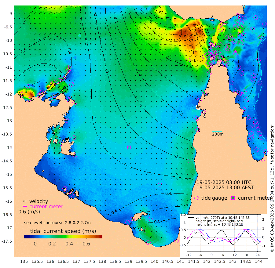 8cm/s 30T +3cm/s rms + 7cm/s -42T. ARA-GOC87 57m 17cm/s -68T +3cm/s rms + 2cm/s -2T. ARA-GOC87 60m 17cm/s 33T +2cm/s rms + 3cm/s 61T. ARA-GOC87 47m -44cm Daru -40cm Bobo Island -22cm Meer Island Barge -32cm Bramble Cay -44cm Unnamed Cay -34cm Pearce Cay -39cm Stephens Island -48cm Merrie England Shoals -55cm Mutacomal Reef -31cm Darnley Island Barge -31cm East Cay -36cm Yorke Island Barge -48cm Rennel Island -38cm Aureed Island -39cm Dungeness Reef -40cm Zagai Island -53cm Yam Island -22cm Dauan Island -35cm Saibai Island -5cm Phipi Reef -34cm Warrior Reef - West -60cm Mabuiag Island Barge -47cm Half Way Island -56cm Coconut Island -51cm Dugong Islet -52cm Poll Island -59cm Kirkcaldie Reef -57cm Suarji Island -52cm Sue Islet -102cm Hawkesbury Island -71cm Alert Patches -73cm Twin Island -86cm Badu Island -66cm St Pauls (Moa Island) -87cm Kubin (Moa Island) -77cm Ince Point -84cm Thursday Island -80cm Nardana Patches -84cm Turtle Head -90cm Round Island -97cm Goods Island -116cm Booby Island -116cm White Rocks Area -139cm Carpentaria -67cm Papou Point -135cm Bampfield Head -100cm Crab Island -119cm Red Wallis Island -101cm Packe Island -63cm Harrington Reef -108cm Herald Camp -16cm Sharp Point -80cm Red Island Point -71cm Possession Island -73cm Alpha Rock -69cm Frederick Point -60cm Wyborn Reef Light -63cm Tetley Island -29cm Triangle Reef -58cm Turtle Head Island -32cm Maclennan Cay -23cm Raine Island -43cm Mcsweeny Reef -38cm Collette Reef -26cm Shadwell Reef -38cm Hannibal Island -38cm Round Point -104cm Vrilya Point -39cm Cape Grenville -30cm Hicks Island -38cm Sir Charles Hardy Island -10cm Harvey Island -37cm Kay Reef -24cm Rocky Island -26cm Chapman Island -29cm Ham Reef -26cm Jubilee Reef -23cm Night Island -32cm Unnamed Reef No. 3 -27cm Morris Island -23cm 1st 3 Mile Opening -27cm Creech Reef -27cm Fife Island -19cm Eden Reef -29cm Stanley Island -28cm Normanby River 69cm Yabooma Island 90cm Hutchison River 79cm Elcho Island 79cm North West Crocodile Island 23cm Cape Wessel 61cm Stevens Island 40cm Guluwuru Island 62cm Hopeful Bay 43cm Auster Point 49cm Two Island Bay 87cm Cadell Strait 0cm Mallison Island 45cm Melville Bay (Gove Harbour) 36cm Truant Island 31cm Cape Arnhem 41cm Cape Grey 53cm Hawk Island 53cm Milner Bay (Groote Eylandt) 55cm Cape Beatrice 50cm West Island 50cm Centre Island 102cm Mornington Island 95cm West Wellesley Islands 141cm Bountiful Island 192cm Albert River Mouth 213cm Sweers Island 184cm Karumba 69cm Nassau River Offshore 19cm Christmas Creek -24cm Archer River -52cm Boyd Point -44cm Weipa (Humbug Point) -59cm Pennefather River -89cm Cullen Point