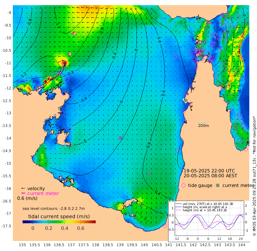 40cm/s -90T +3cm/s rms + 7cm/s -42T. ARA-GOC87 57m 26cm/s 179T +3cm/s rms + 2cm/s -2T. ARA-GOC87 60m 48cm/s -98T +2cm/s rms + 3cm/s 61T. ARA-GOC87 47m 54cm Daru 38cm Bobo Island 1cm Meer Island Barge 18cm Bramble Cay 38cm Unnamed Cay 33cm Pearce Cay 28cm Stephens Island 42cm Merrie England Shoals 63cm Mutacomal Reef 18cm Darnley Island Barge 10cm East Cay 31cm Yorke Island Barge 47cm Rennel Island 39cm Aureed Island 58cm Dungeness Reef 61cm Zagai Island 78cm Yam Island 78cm Dauan Island 70cm Saibai Island 85cm Phipi Reef 78cm Warrior Reef - West 75cm Mabuiag Island Barge 46cm Half Way Island 59cm Coconut Island 56cm Dugong Islet 69cm Poll Island 74cm Kirkcaldie Reef 83cm Suarji Island 62cm Sue Islet 91cm Hawkesbury Island 89cm Alert Patches 86cm Twin Island 84cm Badu Island 88cm St Pauls (Moa Island) 89cm Kubin (Moa Island) 90cm Ince Point 91cm Thursday Island 90cm Nardana Patches 92cm Turtle Head 85cm Round Island 86cm Goods Island 86cm Booby Island 86cm White Rocks Area 70cm Carpentaria 71cm Papou Point 74cm Bampfield Head 76cm Crab Island 97cm Red Wallis Island 109cm Packe Island 63cm Harrington Reef 101cm Herald Camp 31cm Sharp Point 82cm Red Island Point 75cm Possession Island 79cm Alpha Rock 77cm Frederick Point 57cm Wyborn Reef Light 63cm Tetley Island 18cm Triangle Reef 41cm Turtle Head Island 14cm Maclennan Cay -1cm Raine Island 36cm Mcsweeny Reef 29cm Collette Reef 11cm Shadwell Reef 28cm Hannibal Island 24cm Round Point 72cm Vrilya Point 24cm Cape Grenville 12cm Hicks Island 17cm Sir Charles Hardy Island 6cm Harvey Island 14cm Kay Reef 5cm Rocky Island 3cm Chapman Island 1cm Ham Reef 0cm Jubilee Reef 10cm Night Island 7cm Unnamed Reef No. 3 4cm Morris Island -5cm 1st 3 Mile Opening 3cm Creech Reef 9cm Fife Island -9cm Eden Reef 4cm Stanley Island 1cm Normanby River -148cm Yabooma Island -175cm Hutchison River -152cm Elcho Island -139cm North West Crocodile Island -126cm Cape Wessel -146cm Stevens Island -135cm Guluwuru Island -132cm Hopeful Bay -136cm Auster Point -136cm Two Island Bay -173cm Cadell Strait -121cm Mallison Island -116cm Melville Bay (Gove Harbour) -126cm Truant Island -83cm Cape Arnhem -67cm Cape Grey -42cm Hawk Island -34cm Milner Bay (Groote Eylandt) -12cm Cape Beatrice 22cm West Island 20cm Centre Island 44cm Mornington Island 39cm West Wellesley Islands 36cm Bountiful Island 13cm Albert River Mouth -5cm Sweers Island 35cm Karumba 78cm Nassau River Offshore 87cm Christmas Creek 69cm Archer River 63cm Boyd Point 69cm Weipa (Humbug Point) 57cm Pennefather River 77cm Cullen Point