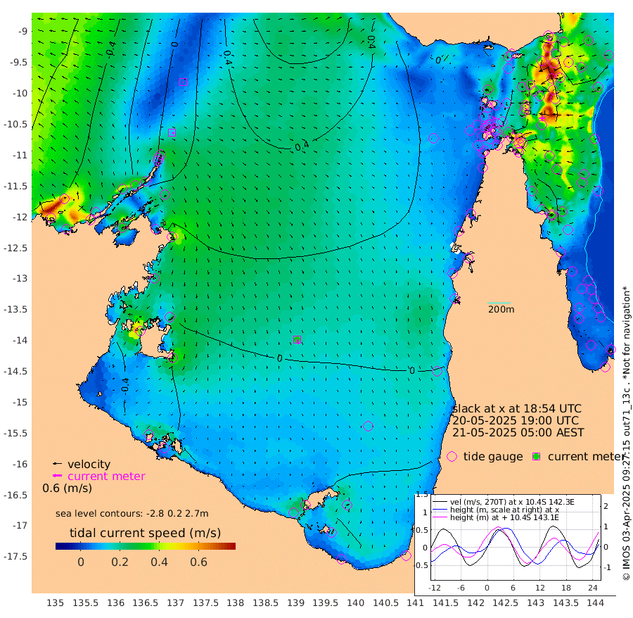 13cm/s 113T +3cm/s rms + 7cm/s -42T. ARA-GOC87 57m 31cm/s 163T +3cm/s rms + 2cm/s -2T. ARA-GOC87 60m 4cm/s 147T +2cm/s rms + 3cm/s 61T. ARA-GOC87 47m 98cm Daru 91cm Bobo Island 88cm Meer Island Barge 101cm Bramble Cay 108cm Unnamed Cay 93cm Pearce Cay 105cm Stephens Island 111cm Merrie England Shoals 103cm Mutacomal Reef 103cm Darnley Island Barge 94cm East Cay 97cm Yorke Island Barge 97cm Rennel Island 85cm Aureed Island 81cm Dungeness Reef 52cm Zagai Island 63cm Yam Island 36cm Dauan Island 35cm Saibai Island 24cm Phipi Reef 59cm Warrior Reef - West 25cm Mabuiag Island Barge 99cm Half Way Island 78cm Coconut Island 98cm Dugong Islet 68cm Poll Island 82cm Kirkcaldie Reef 36cm Suarji Island 72cm Sue Islet 43cm Hawkesbury Island 48cm Alert Patches 53cm Twin Island 28cm Badu Island 46cm St Pauls (Moa Island) 43cm Kubin (Moa Island) 42cm Ince Point 39cm Thursday Island 38cm Nardana Patches 39cm Turtle Head 28cm Round Island 35cm Goods Island 28cm Booby Island 27cm White Rocks Area 25cm Carpentaria 41cm Papou Point 27cm Bampfield Head 23cm Crab Island 32cm Red Wallis Island 45cm Packe Island 92cm Harrington Reef 44cm Herald Camp 9cm Sharp Point 31cm Red Island Point 29cm Possession Island 60cm Alpha Rock 70cm Frederick Point 94cm Wyborn Reef Light 89cm Tetley Island 74cm Triangle Reef 98cm Turtle Head Island 86cm Maclennan Cay 75cm Raine Island 100cm Mcsweeny Reef 97cm Collette Reef 85cm Shadwell Reef 106cm Hannibal Island 102cm Round Point 26cm Vrilya Point 98cm Cape Grenville 93cm Hicks Island 106cm Sir Charles Hardy Island 30cm Harvey Island 97cm Kay Reef 84cm Rocky Island 80cm Chapman Island 81cm Ham Reef 85cm Jubilee Reef 76cm Night Island 81cm Unnamed Reef No. 3 87cm Morris Island 81cm 1st 3 Mile Opening 85cm Creech Reef 91cm Fife Island 96cm Eden Reef 94cm Stanley Island 100cm Normanby River -18cm Yabooma Island -27cm Hutchison River -36cm Elcho Island -38cm North West Crocodile Island 13cm Cape Wessel -7cm Stevens Island 46cm Guluwuru Island -14cm Hopeful Bay -3cm Auster Point 8cm Two Island Bay 19cm Cadell Strait 197cm Mallison Island 26cm Melville Bay (Gove Harbour) 31cm Truant Island 19cm Cape Arnhem -6cm Cape Grey -24cm Hawk Island -52cm Milner Bay (Groote Eylandt) -48cm Cape Beatrice -64cm West Island -75cm Centre Island -56cm Mornington Island -47cm West Wellesley Islands -65cm Bountiful Island -112cm Albert River Mouth -137cm Sweers Island -106cm Karumba -7cm Nassau River Offshore 28cm Christmas Creek 28cm Archer River 35cm Boyd Point 33cm Weipa (Humbug Point) 21cm Pennefather River 28cm Cullen Point