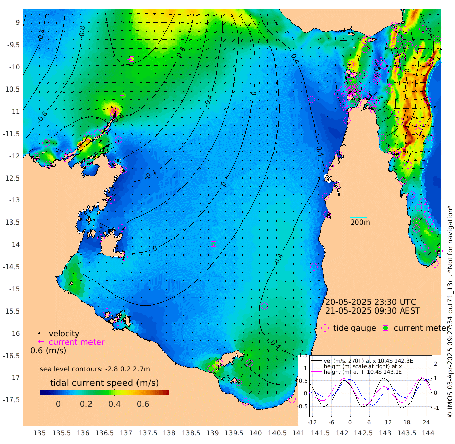 37cm/s -92T +3cm/s rms + 7cm/s -42T. ARA-GOC87 57m 20cm/s -172T +3cm/s rms + 2cm/s -2T. ARA-GOC87 60m 42cm/s -99T +2cm/s rms + 3cm/s 61T. ARA-GOC87 47m 26cm Daru 11cm Bobo Island -33cm Meer Island Barge -18cm Bramble Cay 2cm Unnamed Cay 5cm Pearce Cay -8cm Stephens Island 3cm Merrie England Shoals 32cm Mutacomal Reef -18cm Darnley Island Barge -29cm East Cay 0cm Yorke Island Barge 15cm Rennel Island 13cm Aureed Island 36cm Dungeness Reef 56cm Zagai Island 69cm Yam Island 84cm Dauan Island 74cm Saibai Island 91cm Phipi Reef 73cm Warrior Reef - West 77cm Mabuiag Island Barge 16cm Half Way Island 36cm Coconut Island 28cm Dugong Islet 55cm Poll Island 54cm Kirkcaldie Reef 76cm Suarji Island 45cm Sue Islet 80cm Hawkesbury Island 77cm Alert Patches 76cm Twin Island 82cm Badu Island 83cm St Pauls (Moa Island) 81cm Kubin (Moa Island) 83cm Ince Point 84cm Thursday Island 84cm Nardana Patches 83cm Turtle Head 72cm Round Island 76cm Goods Island 74cm Booby Island 75cm White Rocks Area 53cm Carpentaria 66cm Papou Point 49cm Bampfield Head 66cm Crab Island 86cm Red Wallis Island 97cm Packe Island 35cm Harrington Reef 80cm Herald Camp 32cm Sharp Point 74cm Red Island Point 64cm Possession Island 65cm Alpha Rock 59cm Frederick Point 28cm Wyborn Reef Light 37cm Tetley Island -9cm Triangle Reef 11cm Turtle Head Island -20cm Maclennan Cay -33cm Raine Island 1cm Mcsweeny Reef -6cm Collette Reef -23cm Shadwell Reef -11cm Hannibal Island -15cm Round Point 61cm Vrilya Point -15cm Cape Grenville -25cm Hicks Island -24cm Sir Charles Hardy Island -6cm Harvey Island -27cm Kay Reef -32cm Rocky Island -32cm Chapman Island -35cm Ham Reef -35cm Jubilee Reef -22cm Night Island -29cm Unnamed Reef No. 3 -34cm Morris Island -39cm 1st 3 Mile Opening -33cm Creech Reef -31cm Fife Island -49cm Eden Reef -37cm Stanley Island -41cm Normanby River -120cm Yabooma Island -138cm Hutchison River -117cm Elcho Island -102cm North West Crocodile Island -114cm Cape Wessel -121cm Stevens Island -129cm Guluwuru Island -112cm Hopeful Bay -119cm Auster Point -118cm Two Island Bay -146cm Cadell Strait -164cm Mallison Island -109cm Melville Bay (Gove Harbour) -119cm Truant Island -79cm Cape Arnhem -62cm Cape Grey -33cm Hawk Island -20cm Milner Bay (Groote Eylandt) 0cm Cape Beatrice 32cm West Island 32cm Centre Island 53cm Mornington Island 46cm West Wellesley Islands 48cm Bountiful Island 50cm Albert River Mouth 30cm Sweers Island 64cm Karumba 77cm Nassau River Offshore 74cm Christmas Creek 54cm Archer River 47cm Boyd Point 53cm Weipa (Humbug Point) 47cm Pennefather River 63cm Cullen Point