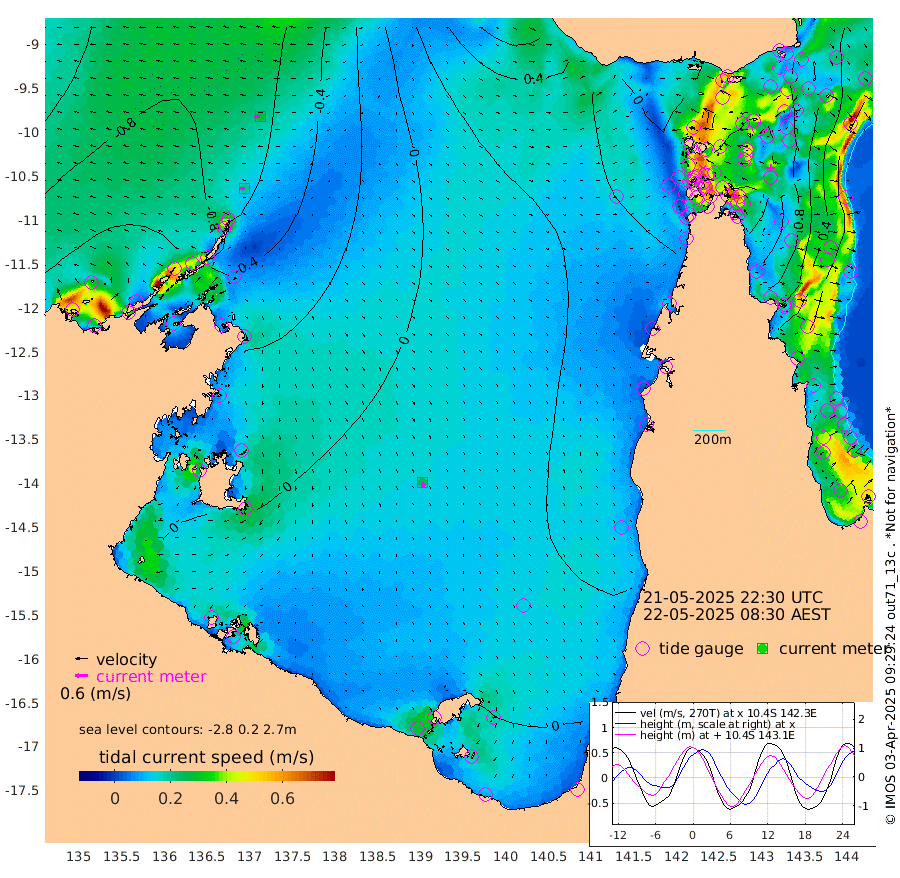 19cm/s -89T +3cm/s rms + 7cm/s -42T. ARA-GOC87 57m 24cm/s 169T +3cm/s rms + 2cm/s -2T. ARA-GOC87 60m 28cm/s -96T +2cm/s rms + 3cm/s 61T. ARA-GOC87 47m 103cm Daru 88cm Bobo Island 25cm Meer Island Barge 56cm Bramble Cay 86cm Unnamed Cay 77cm Pearce Cay 72cm Stephens Island 92cm Merrie England Shoals 115cm Mutacomal Reef 59cm Darnley Island Barge 34cm East Cay 76cm Yorke Island Barge 90cm Rennel Island 79cm Aureed Island 95cm Dungeness Reef 92cm Zagai Island 108cm Yam Island 76cm Dauan Island 75cm Saibai Island 82cm Phipi Reef 104cm Warrior Reef - West 72cm Mabuiag Island Barge 93cm Half Way Island 100cm Coconut Island 102cm Dugong Islet 104cm Poll Island 113cm Kirkcaldie Reef 96cm Suarji Island 99cm Sue Islet 55cm Hawkesbury Island 101cm Alert Patches 106cm Twin Island 53cm Badu Island 106cm St Pauls (Moa Island) 68cm Kubin (Moa Island) 91cm Ince Point 83cm Thursday Island 84cm Nardana Patches 67cm Turtle Head 49cm Round Island 43cm Goods Island 30cm Booby Island 37cm White Rocks Area 25cm Carpentaria 90cm Papou Point 12cm Bampfield Head 29cm Crab Island 47cm Red Wallis Island 74cm Packe Island 112cm Harrington Reef 47cm Herald Camp 39cm Sharp Point 65cm Red Island Point 69cm Possession Island 106cm Alpha Rock 109cm Frederick Point 107cm Wyborn Reef Light 111cm Tetley Island 36cm Triangle Reef 94cm Turtle Head Island 33cm Maclennan Cay 8cm Raine Island 77cm Mcsweeny Reef 66cm Collette Reef 33cm Shadwell Reef 71cm Hannibal Island 59cm Round Point 32cm Vrilya Point 54cm Cape Grenville 38cm Hicks Island 40cm Sir Charles Hardy Island 15cm Harvey Island 38cm Kay Reef 18cm Rocky Island 10cm Chapman Island 11cm Ham Reef 16cm Jubilee Reef 22cm Night Island 16cm Unnamed Reef No. 3 20cm Morris Island 6cm 1st 3 Mile Opening 16cm Creech Reef 23cm Fife Island 9cm Eden Reef 21cm Stanley Island 24cm Normanby River -118cm Yabooma Island -131cm Hutchison River -119cm Elcho Island -107cm North West Crocodile Island -79cm Cape Wessel -98cm Stevens Island -68cm Guluwuru Island -100cm Hopeful Bay -96cm Auster Point -89cm Two Island Bay -107cm Cadell Strait -4cm Mallison Island -67cm Melville Bay (Gove Harbour) -72cm Truant Island -47cm Cape Arnhem -41cm Cape Grey -30cm Hawk Island -29cm Milner Bay (Groote Eylandt) -12cm Cape Beatrice 11cm West Island 4cm Centre Island 18cm Mornington Island 15cm West Wellesley Islands 2cm Bountiful Island -17cm Albert River Mouth -41cm Sweers Island -5cm Karumba 45cm Nassau River Offshore 51cm Christmas Creek 30cm Archer River 27cm Boyd Point 22cm Weipa (Humbug Point) 27cm Pennefather River 29cm Cullen Point