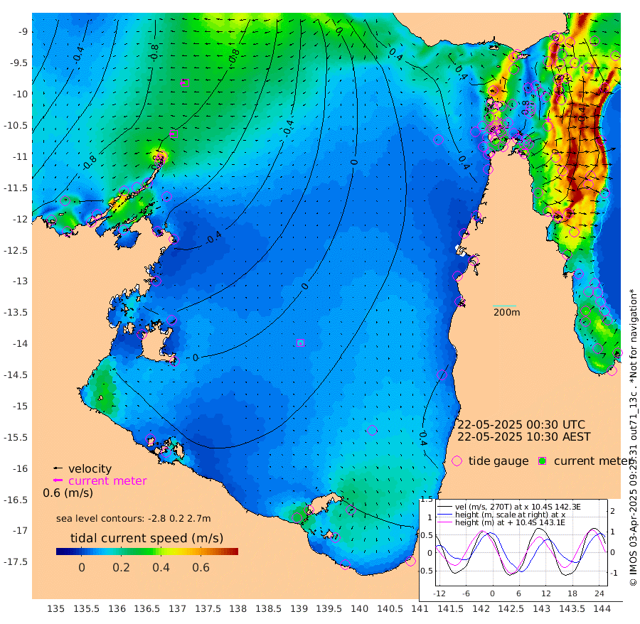 29cm/s -93T +3cm/s rms + 7cm/s -42T. ARA-GOC87 57m 14cm/s -170T +3cm/s rms + 2cm/s -2T. ARA-GOC87 60m 34cm/s -100T +2cm/s rms + 3cm/s 61T. ARA-GOC87 47m 3cm Daru -11cm Bobo Island -57cm Meer Island Barge -46cm Bramble Cay -25cm Unnamed Cay -19cm Pearce Cay -36cm Stephens Island -25cm Merrie England Shoals 8cm Mutacomal Reef -43cm Darnley Island Barge -58cm East Cay -22cm Yorke Island Barge -10cm Rennel Island -9cm Aureed Island 17cm Dungeness Reef 49cm Zagai Island 59cm Yam Island 85cm Dauan Island 76cm Saibai Island 84cm Phipi Reef 64cm Warrior Reef - West 75cm Mabuiag Island Barge -7cm Half Way Island 16cm Coconut Island 6cm Dugong Islet 41cm Poll Island 36cm Kirkcaldie Reef 63cm Suarji Island 33cm Sue Islet 64cm Hawkesbury Island 64cm Alert Patches 64cm Twin Island 72cm Badu Island 75cm St Pauls (Moa Island) 67cm Kubin (Moa Island) 72cm Ince Point 73cm Thursday Island 74cm Nardana Patches 68cm Turtle Head 54cm Round Island 59cm Goods Island 58cm Booby Island 59cm White Rocks Area 42cm Carpentaria 58cm Papou Point 25cm Bampfield Head 54cm Crab Island 71cm Red Wallis Island 78cm Packe Island 11cm Harrington Reef 56cm Herald Camp 32cm Sharp Point 61cm Red Island Point 49cm Possession Island 54cm Alpha Rock 42cm Frederick Point 6cm Wyborn Reef Light 18cm Tetley Island -30cm Triangle Reef -11cm Turtle Head Island -45cm Maclennan Cay -58cm Raine Island -24cm Mcsweeny Reef -32cm Collette Reef -47cm Shadwell Reef -38cm Hannibal Island -45cm Round Point 52cm Vrilya Point -44cm Cape Grenville -53cm Hicks Island -53cm Sir Charles Hardy Island -15cm Harvey Island -57cm Kay Reef -59cm Rocky Island -59cm Chapman Island -60cm Ham Reef -60cm Jubilee Reef -46cm Night Island -55cm Unnamed Reef No. 3 -62cm Morris Island -64cm 1st 3 Mile Opening -60cm Creech Reef -60cm Fife Island -78cm Eden Reef -66cm Stanley Island -72cm Normanby River -111cm Yabooma Island -126cm Hutchison River -104cm Elcho Island -90cm North West Crocodile Island -103cm Cape Wessel -107cm Stevens Island -117cm Guluwuru Island -103cm Hopeful Bay -108cm Auster Point -106cm Two Island Bay -129cm Cadell Strait -154cm Mallison Island -100cm Melville Bay (Gove Harbour) -109cm Truant Island -71cm Cape Arnhem -56cm Cape Grey -29cm Hawk Island -12cm Milner Bay (Groote Eylandt) 5cm Cape Beatrice 36cm West Island 36cm Centre Island 47cm Mornington Island 41cm West Wellesley Islands 38cm Bountiful Island 53cm Albert River Mouth 33cm Sweers Island 60cm Karumba 62cm Nassau River Offshore 54cm Christmas Creek 37cm Archer River 32cm Boyd Point 34cm Weipa (Humbug Point) 39cm Pennefather River 50cm Cullen Point