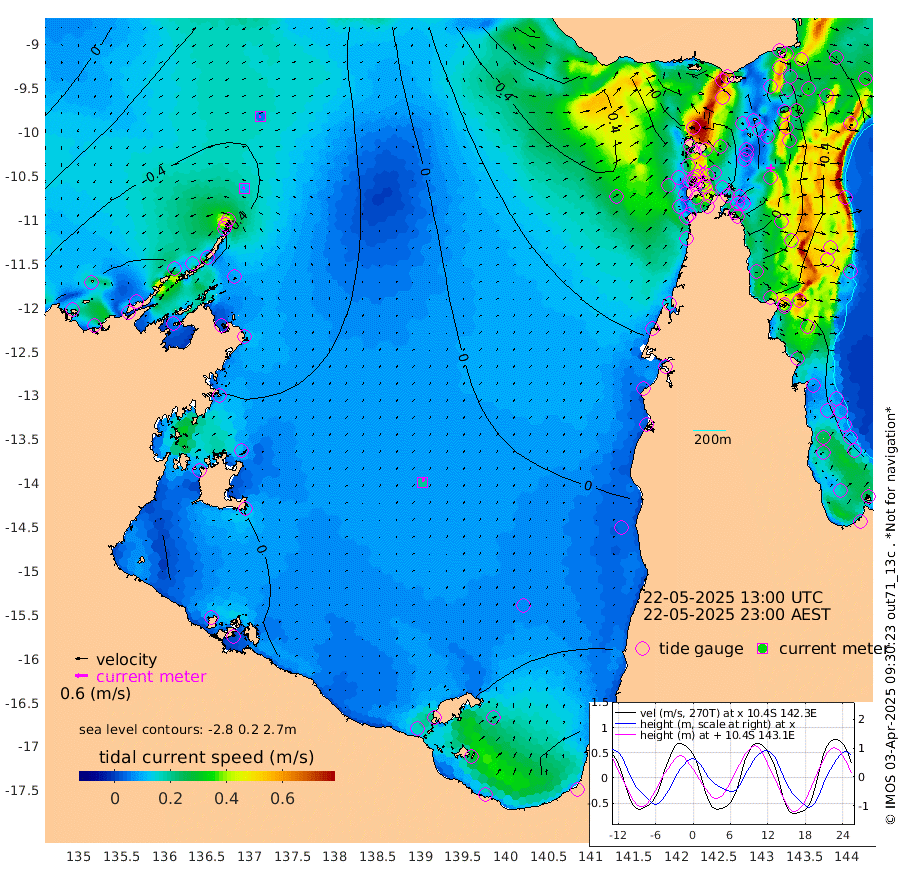 9cm/s -76T +3cm/s rms + 7cm/s -42T. ARA-GOC87 57m 20cm/s 17T +3cm/s rms + 2cm/s -2T. ARA-GOC87 60m 6cm/s -113T +2cm/s rms + 3cm/s 61T. ARA-GOC87 47m -3cm Daru -5cm Bobo Island -48cm Meer Island Barge -43cm Bramble Cay -21cm Unnamed Cay -22cm Pearce Cay -33cm Stephens Island -29cm Merrie England Shoals -1cm Mutacomal Reef -35cm Darnley Island Barge -49cm East Cay -15cm Yorke Island Barge -10cm Rennel Island -5cm Aureed Island 9cm Dungeness Reef 53cm Zagai Island 49cm Yam Island 56cm Dauan Island 68cm Saibai Island 55cm Phipi Reef 43cm Warrior Reef - West 77cm Mabuiag Island Barge -15cm Half Way Island 22cm Coconut Island -2cm Dugong Islet 34cm Poll Island 26cm Kirkcaldie Reef 76cm Suarji Island 38cm Sue Islet 54cm Hawkesbury Island 65cm Alert Patches 62cm Twin Island 63cm Badu Island 70cm St Pauls (Moa Island) 53cm Kubin (Moa Island) 64cm Ince Point 65cm Thursday Island 66cm Nardana Patches 54cm Turtle Head 70cm Round Island 48cm Goods Island 55cm Booby Island 59cm White Rocks Area 72cm Carpentaria 65cm Papou Point 90cm Bampfield Head 43cm Crab Island 52cm Red Wallis Island 45cm Packe Island 14cm Harrington Reef 60cm Herald Camp 25cm Sharp Point 54cm Red Island Point 72cm Possession Island 55cm Alpha Rock 41cm Frederick Point 14cm Wyborn Reef Light 23cm Tetley Island -26cm Triangle Reef 4cm Turtle Head Island -38cm Maclennan Cay -49cm Raine Island -22cm Mcsweeny Reef -26cm Collette Reef -39cm Shadwell Reef -33cm Hannibal Island -44cm Round Point 36cm Vrilya Point -40cm Cape Grenville -44cm Hicks Island -43cm Sir Charles Hardy Island -13cm Harvey Island -48cm Kay Reef -49cm Rocky Island -48cm Chapman Island -47cm Ham Reef -50cm Jubilee Reef -47cm Night Island -48cm Unnamed Reef No. 3 -54cm Morris Island -48cm 1st 3 Mile Opening -51cm Creech Reef -64cm Fife Island -70cm Eden Reef -58cm Stanley Island -65cm Normanby River -58cm Yabooma Island -64cm Hutchison River -54cm Elcho Island -53cm North West Crocodile Island -30cm Cape Wessel -54cm Stevens Island -49cm Guluwuru Island -50cm Hopeful Bay -35cm Auster Point -51cm Two Island Bay -90cm Cadell Strait -123cm Mallison Island -43cm Melville Bay (Gove Harbour) -40cm Truant Island -26cm Cape Arnhem -11cm Cape Grey -8cm Hawk Island 9cm Milner Bay (Groote Eylandt) -1cm Cape Beatrice 16cm West Island 27cm Centre Island -26cm Mornington Island -27cm West Wellesley Islands -34cm Bountiful Island -52cm Albert River Mouth -42cm Sweers Island -50cm Karumba -48cm Nassau River Offshore -39cm Christmas Creek -15cm Archer River 4cm Boyd Point -3cm Weipa (Humbug Point) 9cm Pennefather River 32cm Cullen Point