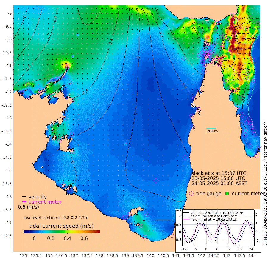 16cm/s -88T +3cm/s rms + 7cm/s -42T. ARA-GOC87 57m 10cm/s 18T +3cm/s rms + 2cm/s -2T. ARA-GOC87 60m 14cm/s -107T +2cm/s rms + 3cm/s 61T. ARA-GOC87 47m -60cm Daru -65cm Bobo Island -70cm Meer Island Barge -84cm Bramble Cay -75cm Unnamed Cay -75cm Pearce Cay -83cm Stephens Island -88cm Merrie England Shoals -63cm Mutacomal Reef -76cm Darnley Island Barge -77cm East Cay -62cm Yorke Island Barge -64cm Rennel Island -55cm Aureed Island -37cm Dungeness Reef 17cm Zagai Island 16cm Yam Island 71cm Dauan Island 77cm Saibai Island 54cm Phipi Reef 17cm Warrior Reef - West 79cm Mabuiag Island Barge -69cm Half Way Island -36cm Coconut Island -54cm Dugong Islet -11cm Poll Island -24cm Kirkcaldie Reef 40cm Suarji Island -3cm Sue Islet 82cm Hawkesbury Island 33cm Alert Patches 26cm Twin Island 86cm Badu Island 40cm St Pauls (Moa Island) 64cm Kubin (Moa Island) 49cm Ince Point 59cm Thursday Island 58cm Nardana Patches 64cm Turtle Head 83cm Round Island 78cm Goods Island 94cm Booby Island 89cm White Rocks Area 97cm Carpentaria 34cm Papou Point 119cm Bampfield Head 73cm Crab Island 86cm Red Wallis Island 63cm Packe Island -53cm Harrington Reef 98cm Herald Camp 14cm Sharp Point 56cm Red Island Point 53cm Possession Island 16cm Alpha Rock -8cm Frederick Point -49cm Wyborn Reef Light -37cm Tetley Island -47cm Triangle Reef -62cm Turtle Head Island -60cm Maclennan Cay -58cm Raine Island -71cm Mcsweeny Reef -70cm Collette Reef -62cm Shadwell Reef -84cm Hannibal Island -87cm Round Point 63cm Vrilya Point -77cm Cape Grenville -73cm Hicks Island -62cm Sir Charles Hardy Island -24cm Harvey Island -76cm Kay Reef -64cm Rocky Island -56cm Chapman Island -56cm Ham Reef -64cm Jubilee Reef -63cm Night Island -60cm Unnamed Reef No. 3 -72cm Morris Island -58cm 1st 3 Mile Opening -65cm Creech Reef -81cm Fife Island -85cm Eden Reef -75cm Stanley Island -88cm Normanby River -50cm Yabooma Island -71cm Hutchison River -58cm Elcho Island -55cm North West Crocodile Island -42cm Cape Wessel -65cm Stevens Island -68cm Guluwuru Island -53cm Hopeful Bay -45cm Auster Point -57cm Two Island Bay -97cm Cadell Strait -142cm Mallison Island -57cm Melville Bay (Gove Harbour) -55cm Truant Island -37cm Cape Arnhem -24cm Cape Grey -21cm Hawk Island -3cm Milner Bay (Groote Eylandt) -12cm Cape Beatrice 6cm West Island 15cm Centre Island -24cm Mornington Island -20cm West Wellesley Islands -13cm Bountiful Island -38cm Albert River Mouth -35cm Sweers Island -36cm Karumba -27cm Nassau River Offshore -10cm Christmas Creek 14cm Archer River 34cm Boyd Point 36cm Weipa (Humbug Point) 25cm Pennefather River 67cm Cullen Point