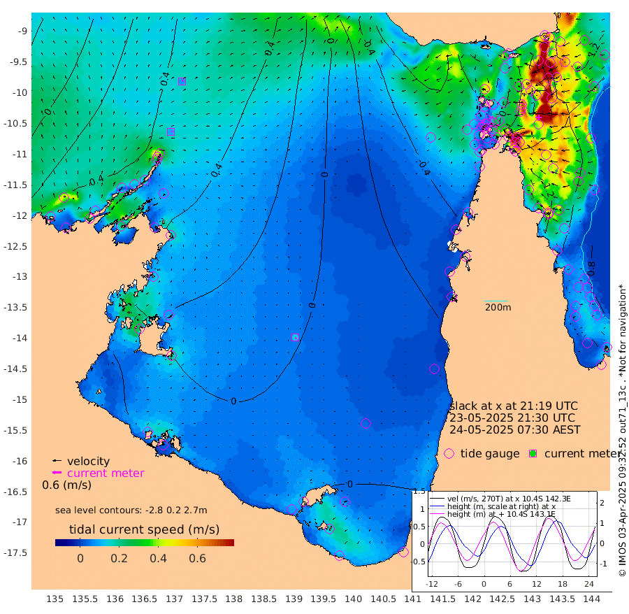 10cm/s 77T +3cm/s rms + 7cm/s -42T. ARA-GOC87 57m 14cm/s 175T +3cm/s rms + 2cm/s -2T. ARA-GOC87 60m 8cm/s 54T +2cm/s rms + 3cm/s 61T. ARA-GOC87 47m 107cm Daru 109cm Bobo Island 90cm Meer Island Barge 113cm Bramble Cay 118cm Unnamed Cay 111cm Pearce Cay 118cm Stephens Island 124cm Merrie England Shoals 113cm Mutacomal Reef 109cm Darnley Island Barge 102cm East Cay 104cm Yorke Island Barge 106cm Rennel Island 96cm Aureed Island 84cm Dungeness Reef 39cm Zagai Island 52cm Yam Island -15cm Dauan Island -11cm Saibai Island -3cm Phipi Reef 43cm Warrior Reef - West -21cm Mabuiag Island Barge 109cm Half Way Island 82cm Coconut Island 104cm Dugong Islet 64cm Poll Island 79cm Kirkcaldie Reef 22cm Suarji Island 60cm Sue Islet -28cm Hawkesbury Island 19cm Alert Patches 31cm Twin Island -42cm Badu Island 20cm St Pauls (Moa Island) -13cm Kubin (Moa Island) 3cm Ince Point -10cm Thursday Island -8cm Nardana Patches -21cm Turtle Head -31cm Round Island -40cm Goods Island -63cm Booby Island -52cm White Rocks Area -69cm Carpentaria 24cm Papou Point -68cm Bampfield Head -56cm Crab Island -54cm Red Wallis Island -21cm Packe Island 104cm Harrington Reef -36cm Herald Camp 3cm Sharp Point -9cm Red Island Point -2cm Possession Island 41cm Alpha Rock 62cm Frederick Point 100cm Wyborn Reef Light 91cm Tetley Island 71cm Triangle Reef 106cm Turtle Head Island 86cm Maclennan Cay 69cm Raine Island 106cm Mcsweeny Reef 101cm Collette Reef 81cm Shadwell Reef 115cm Hannibal Island 114cm Round Point -57cm Vrilya Point 104cm Cape Grenville 100cm Hicks Island 101cm Sir Charles Hardy Island 33cm Harvey Island 100cm Kay Reef 84cm Rocky Island 73cm Chapman Island 74cm Ham Reef 81cm Jubilee Reef 74cm Night Island 75cm Unnamed Reef No. 3 88cm Morris Island 71cm 1st 3 Mile Opening 80cm Creech Reef 90cm Fife Island 97cm Eden Reef 91cm Stanley Island 109cm Normanby River 59cm Yabooma Island 71cm Hutchison River 50cm Elcho Island 53cm North West Crocodile Island 55cm Cape Wessel 62cm Stevens Island 77cm Guluwuru Island 50cm Hopeful Bay 48cm Auster Point 64cm Two Island Bay 93cm Cadell Strait 138cm Mallison Island 60cm Melville Bay (Gove Harbour) 61cm Truant Island 37cm Cape Arnhem 24cm Cape Grey 11cm Hawk Island -12cm Milner Bay (Groote Eylandt) -7cm Cape Beatrice -22cm West Island -35cm Centre Island -5cm Mornington Island -6cm West Wellesley Islands 8cm Bountiful Island -14cm Albert River Mouth -24cm Sweers Island -8cm Karumba 13cm Nassau River Offshore 10cm Christmas Creek -14cm Archer River -23cm Boyd Point -25cm Weipa (Humbug Point) -39cm Pennefather River -49cm Cullen Point