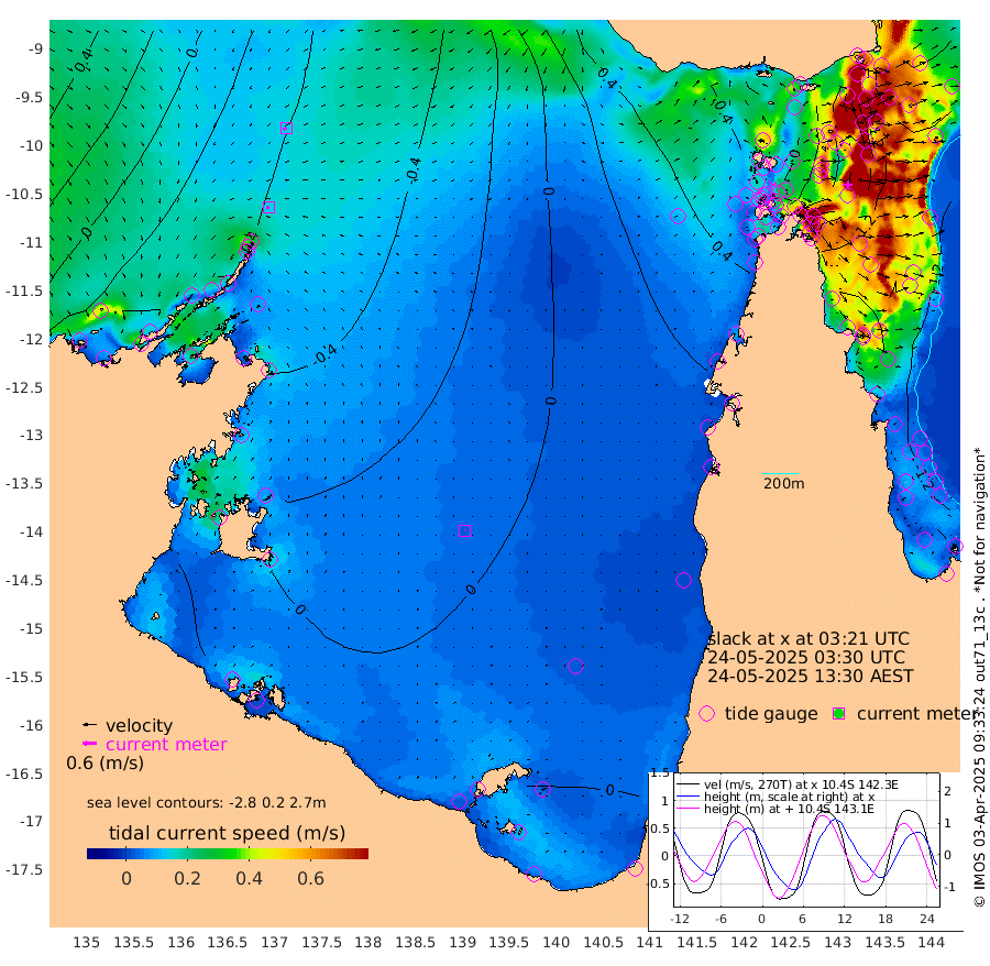 14cm/s -102T +3cm/s rms + 7cm/s -42T. ARA-GOC87 57m 3cm/s -33T +3cm/s rms + 2cm/s -2T. ARA-GOC87 60m 15cm/s -114T +2cm/s rms + 3cm/s 61T. ARA-GOC87 47m -126cm Daru -133cm Bobo Island -119cm Meer Island Barge -138cm Bramble Cay -144cm Unnamed Cay -133cm Pearce Cay -144cm Stephens Island -146cm Merrie England Shoals -128cm Mutacomal Reef -137cm Darnley Island Barge -132cm East Cay -128cm Yorke Island Barge -130cm Rennel Island -122cm Aureed Island -105cm Dungeness Reef -56cm Zagai Island -58cm Yam Island 13cm Dauan Island 8cm Saibai Island -14cm Phipi Reef -50cm Warrior Reef - West 14cm Mabuiag Island Barge -125cm Half Way Island -109cm Coconut Island -119cm Dugong Islet -78cm Poll Island -91cm Kirkcaldie Reef -54cm Suarji Island -75cm Sue Islet 21cm Hawkesbury Island -43cm Alert Patches -47cm Twin Island 28cm Badu Island -32cm St Pauls (Moa Island) 3cm Kubin (Moa Island) -16cm Ince Point -4cm Thursday Island -6cm Nardana Patches 3cm Turtle Head -5cm Round Island 21cm Goods Island 41cm Booby Island 30cm White Rocks Area 41cm Carpentaria -36cm Papou Point -5cm Bampfield Head 42cm Crab Island 44cm Red Wallis Island 14cm Packe Island -127cm Harrington Reef 4cm Herald Camp -1cm Sharp Point 1cm Red Island Point -36cm Possession Island -53cm Alpha Rock -80cm Frederick Point -124cm Wyborn Reef Light -111cm Tetley Island -95cm Triangle Reef -135cm Turtle Head Island -113cm Maclennan Cay -99cm Raine Island -132cm Mcsweeny Reef -129cm Collette Reef -110cm Shadwell Reef -145cm Hannibal Island -141cm Round Point 52cm Vrilya Point -132cm Cape Grenville -130cm Hicks Island -132cm Sir Charles Hardy Island -42cm Harvey Island -130cm Kay Reef -114cm Rocky Island -104cm Chapman Island -103cm Ham Reef -109cm Jubilee Reef -99cm Night Island -103cm Unnamed Reef No. 3 -119cm Morris Island -109cm 1st 3 Mile Opening -111cm Creech Reef -114cm Fife Island -131cm Eden Reef -122cm Stanley Island -136cm Normanby River -54cm Yabooma Island -75cm Hutchison River -49cm Elcho Island -39cm North West Crocodile Island -62cm Cape Wessel -57cm Stevens Island -92cm Guluwuru Island -55cm Hopeful Bay -61cm Auster Point -59cm Two Island Bay -75cm Cadell Strait -132cm Mallison Island -75cm Melville Bay (Gove Harbour) -80cm Truant Island -53cm Cape Arnhem -42cm Cape Grey -25cm Hawk Island 2cm Milner Bay (Groote Eylandt) 9cm Cape Beatrice 31cm West Island 33cm Centre Island 13cm Mornington Island 15cm West Wellesley Islands 0cm Bountiful Island 38cm Albert River Mouth 31cm Sweers Island 32cm Karumba 13cm Nassau River Offshore 3cm Christmas Creek 12cm Archer River 13cm Boyd Point 14cm Weipa (Humbug Point) 34cm Pennefather River 40cm Cullen Point