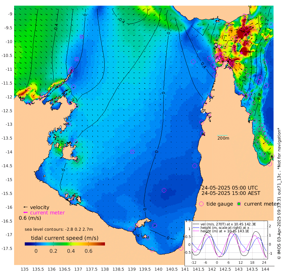 7cm/s -153T +3cm/s rms + 7cm/s -42T. ARA-GOC87 57m 8cm/s -44T +3cm/s rms + 2cm/s -2T. ARA-GOC87 60m 8cm/s -173T +2cm/s rms + 3cm/s 61T. ARA-GOC87 47m -162cm Daru -160cm Bobo Island -91cm Meer Island Barge -125cm Bramble Cay -159cm Unnamed Cay -145cm Pearce Cay -145cm Stephens Island -158cm Merrie England Shoals -169cm Mutacomal Reef -134cm Darnley Island Barge -104cm East Cay -146cm Yorke Island Barge -152cm Rennel Island -146cm Aureed Island -145cm Dungeness Reef -125cm Zagai Island -130cm Yam Island -58cm Dauan Island -68cm Saibai Island -82cm Phipi Reef -122cm Warrior Reef - West -53cm Mabuiag Island Barge -149cm Half Way Island -152cm Coconut Island -156cm Dugong Islet -136cm Poll Island -147cm Kirkcaldie Reef -127cm Suarji Island -136cm Sue Islet -5cm Hawkesbury Island -108cm Alert Patches -116cm Twin Island -5cm Badu Island -110cm St Pauls (Moa Island) -34cm Kubin (Moa Island) -78cm Ince Point -58cm Thursday Island -63cm Nardana Patches -33cm Turtle Head -33cm Round Island 7cm Goods Island 35cm Booby Island 20cm White Rocks Area 29cm Carpentaria -101cm Papou Point -5cm Bampfield Head 38cm Crab Island 29cm Red Wallis Island -17cm Packe Island -171cm Harrington Reef -14cm Herald Camp -33cm Sharp Point -35cm Red Island Point -83cm Possession Island -120cm Alpha Rock -139cm Frederick Point -166cm Wyborn Reef Light -161cm Tetley Island -85cm Triangle Reef -165cm Turtle Head Island -93cm Maclennan Cay -60cm Raine Island -142cm Mcsweeny Reef -132cm Collette Reef -90cm Shadwell Reef -145cm Hannibal Island -126cm Round Point 46cm Vrilya Point -118cm Cape Grenville -108cm Hicks Island -110cm Sir Charles Hardy Island -37cm Harvey Island -102cm Kay Reef -79cm Rocky Island -64cm Chapman Island -65cm Ham Reef -74cm Jubilee Reef -70cm Night Island -65cm Unnamed Reef No. 3 -81cm Morris Island -68cm 1st 3 Mile Opening -74cm Creech Reef -74cm Fife Island -80cm Eden Reef -82cm Stanley Island -95cm Normanby River 33cm Yabooma Island 22cm Hutchison River 37cm Elcho Island 37cm North West Crocodile Island -10cm Cape Wessel 14cm Stevens Island -43cm Guluwuru Island 19cm Hopeful Bay 2cm Auster Point 3cm Two Island Bay 8cm Cadell Strait -91cm Mallison Island -28cm Melville Bay (Gove Harbour) -30cm Truant Island -23cm Cape Arnhem -23cm Cape Grey -14cm Hawk Island 1cm Milner Bay (Groote Eylandt) 4cm Cape Beatrice 4cm West Island 6cm Centre Island 1cm Mornington Island 3cm West Wellesley Islands -5cm Bountiful Island 40cm Albert River Mouth 37cm Sweers Island 31cm Karumba 5cm Nassau River Offshore -1cm Christmas Creek 19cm Archer River 16cm Boyd Point 25cm Weipa (Humbug Point) 35cm Pennefather River 35cm Cullen Point