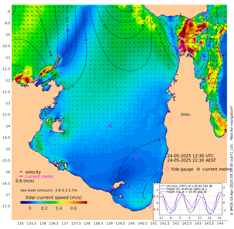4cm/s 21T +3cm/s rms + 7cm/s -42T. ARA-GOC87 57m 7cm/s 74T +3cm/s rms + 2cm/s -2T. ARA-GOC87 60m 4cm/s -22T +2cm/s rms + 3cm/s 61T. ARA-GOC87 47m 129cm Daru 122cm Bobo Island 41cm Meer Island Barge 69cm Bramble Cay 111cm Unnamed Cay 103cm Pearce Cay 94cm Stephens Island 109cm Merrie England Shoals 133cm Mutacomal Reef 86cm Darnley Island Barge 45cm East Cay 108cm Yorke Island Barge 114cm Rennel Island 115cm Aureed Island 125cm Dungeness Reef 134cm Zagai Island 127cm Yam Island 88cm Dauan Island 92cm Saibai Island 111cm Phipi Reef 127cm Warrior Reef - West 83cm Mabuiag Island Barge 111cm Half Way Island 138cm Coconut Island 123cm Dugong Islet 132cm Poll Island 132cm Kirkcaldie Reef 148cm Suarji Island 131cm Sue Islet 19cm Hawkesbury Island 132cm Alert Patches 131cm Twin Island 36cm Badu Island 133cm St Pauls (Moa Island) 51cm Kubin (Moa Island) 102cm Ince Point 86cm Thursday Island 90cm Nardana Patches 60cm Turtle Head 57cm Round Island 19cm Goods Island 1cm Booby Island 10cm White Rocks Area 17cm Carpentaria 114cm Papou Point 44cm Bampfield Head -1cm Crab Island 3cm Red Wallis Island 38cm Packe Island 144cm Harrington Reef 27cm Herald Camp 45cm Sharp Point 48cm Red Island Point 107cm Possession Island 127cm Alpha Rock 136cm Frederick Point 139cm Wyborn Reef Light 142cm Tetley Island 49cm Triangle Reef 136cm Turtle Head Island 44cm Maclennan Cay 16cm Raine Island 101cm Mcsweeny Reef 90cm Collette Reef 48cm Shadwell Reef 96cm Hannibal Island 70cm Round Point -5cm Vrilya Point 65cm Cape Grenville 53cm Hicks Island 49cm Sir Charles Hardy Island 20cm Harvey Island 45cm Kay Reef 26cm Rocky Island 15cm Chapman Island 15cm Ham Reef 23cm Jubilee Reef 28cm Night Island 17cm Unnamed Reef No. 3 27cm Morris Island 25cm 1st 3 Mile Opening 25cm Creech Reef 19cm Fife Island 17cm Eden Reef 27cm Stanley Island 25cm Normanby River -124cm Yabooma Island -116cm Hutchison River -114cm Elcho Island -118cm North West Crocodile Island -51cm Cape Wessel -88cm Stevens Island -16cm Guluwuru Island -88cm Hopeful Bay -61cm Auster Point -75cm Two Island Bay -103cm Cadell Strait 21cm Mallison Island -23cm Melville Bay (Gove Harbour) -20cm Truant Island -5cm Cape Arnhem 4cm Cape Grey 7cm Hawk Island 7cm Milner Bay (Groote Eylandt) 2cm Cape Beatrice 14cm West Island 23cm Centre Island 7cm Mornington Island 4cm West Wellesley Islands -18cm Bountiful Island -42cm Albert River Mouth -33cm Sweers Island -36cm Karumba -14cm Nassau River Offshore -6cm Christmas Creek -11cm Archer River -2cm Boyd Point -17cm Weipa (Humbug Point) 1cm Pennefather River -6cm Cullen Point