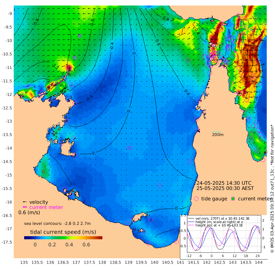 20cm/s -78T +3cm/s rms + 7cm/s -42T. ARA-GOC87 57m 7cm/s 59T +3cm/s rms + 2cm/s -2T. ARA-GOC87 60m 21cm/s -90T +2cm/s rms + 3cm/s 61T. ARA-GOC87 47m 16cm Daru 3cm Bobo Island -45cm Meer Island Barge -42cm Bramble Cay -9cm Unnamed Cay -16cm Pearce Cay -27cm Stephens Island -21cm Merrie England Shoals 16cm Mutacomal Reef -25cm Darnley Island Barge -50cm East Cay 0cm Yorke Island Barge 2cm Rennel Island 9cm Aureed Island 33cm Dungeness Reef 85cm Zagai Island 82cm Yam Island 115cm Dauan Island 120cm Saibai Island 110cm Phipi Reef 86cm Warrior Reef - West 113cm Mabuiag Island Barge -2cm Half Way Island 38cm Coconut Island 18cm Dugong Islet 60cm Poll Island 50cm Kirkcaldie Reef 110cm Suarji Island 67cm Sue Islet 76cm Hawkesbury Island 98cm Alert Patches 91cm Twin Island 89cm Badu Island 106cm St Pauls (Moa Island) 79cm Kubin (Moa Island) 96cm Ince Point 96cm Thursday Island 98cm Nardana Patches 86cm Turtle Head 94cm Round Island 71cm Goods Island 75cm Booby Island 74cm White Rocks Area 85cm Carpentaria 87cm Papou Point 108cm Bampfield Head 59cm Crab Island 72cm Red Wallis Island 74cm Packe Island 27cm Harrington Reef 93cm Herald Camp 40cm Sharp Point 70cm Red Island Point 96cm Possession Island 82cm Alpha Rock 63cm Frederick Point 28cm Wyborn Reef Light 40cm Tetley Island -20cm Triangle Reef 13cm Turtle Head Island -34cm Maclennan Cay -49cm Raine Island -11cm Mcsweeny Reef -16cm Collette Reef -32cm Shadwell Reef -25cm Hannibal Island -44cm Round Point 52cm Vrilya Point -36cm Cape Grenville -42cm Hicks Island -35cm Sir Charles Hardy Island -12cm Harvey Island -48cm Kay Reef -48cm Rocky Island -48cm Chapman Island -47cm Ham Reef -49cm Jubilee Reef -44cm Night Island -49cm Unnamed Reef No. 3 -55cm Morris Island -44cm 1st 3 Mile Opening -49cm Creech Reef -63cm Fife Island -73cm Eden Reef -57cm Stanley Island -71cm Normanby River -148cm Yabooma Island -170cm Hutchison River -150cm Elcho Island -146cm North West Crocodile Island -94cm Cape Wessel -137cm Stevens Island -93cm Guluwuru Island -124cm Hopeful Bay -103cm Auster Point -120cm Two Island Bay -173cm Cadell Strait -109cm Mallison Island -84cm Melville Bay (Gove Harbour) -84cm Truant Island -50cm Cape Arnhem -29cm Cape Grey -20cm Hawk Island 1cm Milner Bay (Groote Eylandt) -3cm Cape Beatrice 27cm West Island 38cm Centre Island 5cm Mornington Island 8cm West Wellesley Islands 0cm Bountiful Island -30cm Albert River Mouth -25cm Sweers Island -25cm Karumba -6cm Nassau River Offshore 8cm Christmas Creek 15cm Archer River 33cm Boyd Point 27cm Weipa (Humbug Point) 27cm Pennefather River 55cm Cullen Point
