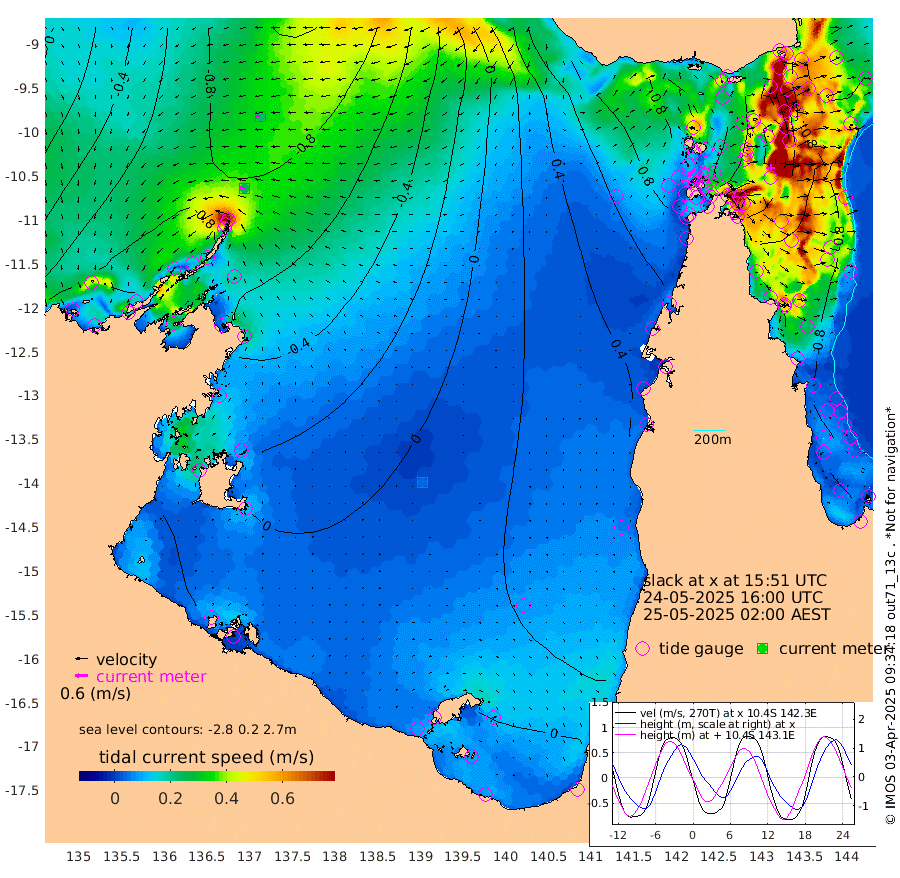26cm/s -85T +3cm/s rms + 7cm/s -42T. ARA-GOC87 57m 4cm/s 26T +3cm/s rms + 2cm/s -2T. ARA-GOC87 60m 24cm/s -97T +2cm/s rms + 3cm/s 61T. ARA-GOC87 47m -72cm Daru -82cm Bobo Island -73cm Meer Island Barge -91cm Bramble Cay -85cm Unnamed Cay -89cm Pearce Cay -93cm Stephens Island -98cm Merrie England Shoals -75cm Mutacomal Reef -84cm Darnley Island Barge -80cm East Cay -73cm Yorke Island Barge -75cm Rennel Island -68cm Aureed Island -48cm Dungeness Reef 5cm Zagai Island 6cm Yam Island 75cm Dauan Island 77cm Saibai Island 55cm Phipi Reef 10cm Warrior Reef - West 76cm Mabuiag Island Barge -81cm Half Way Island -52cm Coconut Island -66cm Dugong Islet -24cm Poll Island -35cm Kirkcaldie Reef 28cm Suarji Island -13cm Sue Islet 86cm Hawkesbury Island 24cm Alert Patches 14cm Twin Island 87cm Badu Island 30cm St Pauls (Moa Island) 64cm Kubin (Moa Island) 43cm Ince Point 56cm Thursday Island 55cm Nardana Patches 66cm Turtle Head 84cm Round Island 83cm Goods Island 102cm Booby Island 93cm White Rocks Area 100cm Carpentaria 21cm Papou Point 123cm Bampfield Head 80cm Crab Island 93cm Red Wallis Island 68cm Packe Island -70cm Harrington Reef 109cm Herald Camp 12cm Sharp Point 54cm Red Island Point 46cm Possession Island 6cm Alpha Rock -21cm Frederick Point -65cm Wyborn Reef Light -53cm Tetley Island -51cm Triangle Reef -80cm Turtle Head Island -62cm Maclennan Cay -57cm Raine Island -80cm Mcsweeny Reef -76cm Collette Reef -62cm Shadwell Reef -92cm Hannibal Island -94cm Round Point 70cm Vrilya Point -81cm Cape Grenville -77cm Hicks Island -62cm Sir Charles Hardy Island -25cm Harvey Island -78cm Kay Reef -63cm Rocky Island -54cm Chapman Island -54cm Ham Reef -63cm Jubilee Reef -62cm Night Island -58cm Unnamed Reef No. 3 -72cm Morris Island -56cm 1st 3 Mile Opening -64cm Creech Reef -78cm Fife Island -84cm Eden Reef -74cm Stanley Island -89cm Normanby River -82cm Yabooma Island -113cm Hutchison River -94cm Elcho Island -89cm North West Crocodile Island -73cm Cape Wessel -99cm Stevens Island -97cm Guluwuru Island -80cm Hopeful Bay -75cm Auster Point -88cm Two Island Bay -134cm Cadell Strait -150cm Mallison Island -81cm Melville Bay (Gove Harbour) -82cm Truant Island -54cm Cape Arnhem -35cm Cape Grey -28cm Hawk Island -5cm Milner Bay (Groote Eylandt) -9cm Cape Beatrice 17cm West Island 24cm Centre Island -1cm Mornington Island 5cm West Wellesley Islands 16cm Bountiful Island -11cm Albert River Mouth -9cm Sweers Island -7cm Karumba 2cm Nassau River Offshore 18cm Christmas Creek 33cm Archer River 49cm Boyd Point 55cm Weipa (Humbug Point) 34cm Pennefather River 79cm Cullen Point