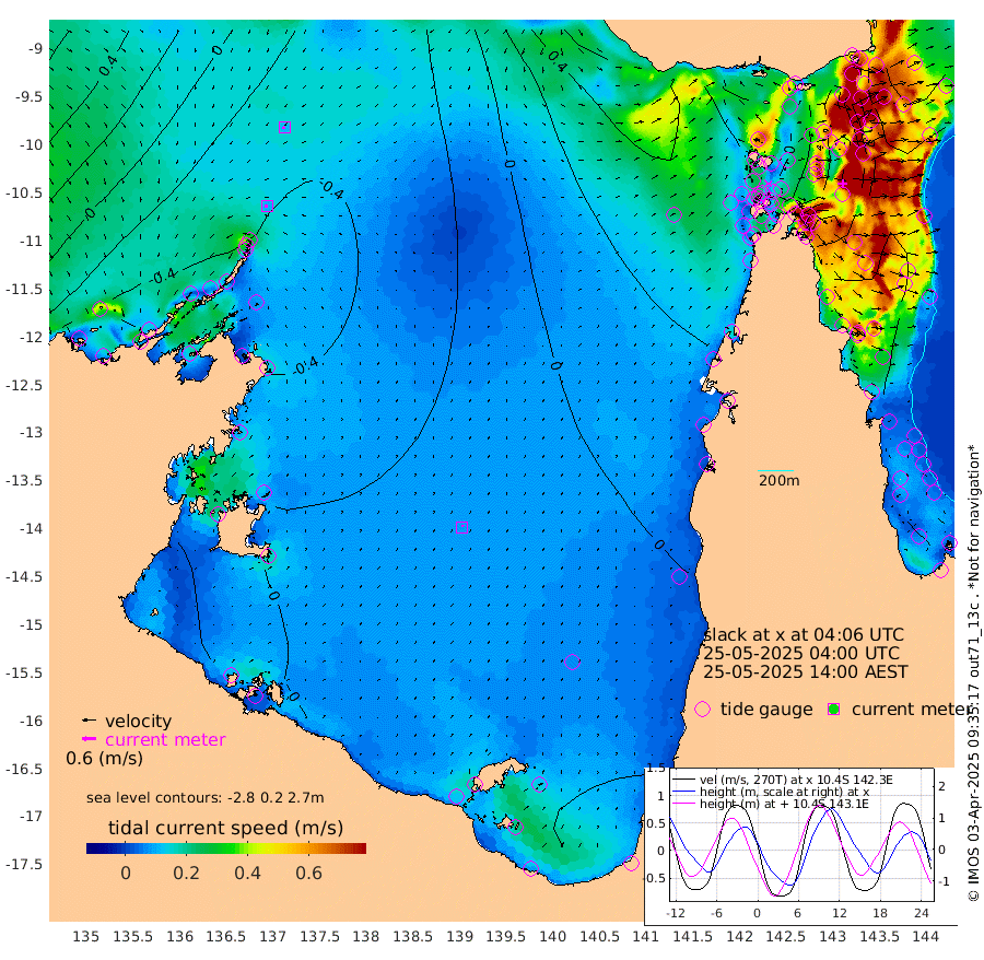 10cm/s -94T +3cm/s rms + 7cm/s -42T. ARA-GOC87 57m 8cm/s 14T +3cm/s rms + 2cm/s -2T. ARA-GOC87 60m 11cm/s -114T +2cm/s rms + 3cm/s 61T. ARA-GOC87 47m -131cm Daru -139cm Bobo Island -126cm Meer Island Barge -145cm Bramble Cay -149cm Unnamed Cay -142cm Pearce Cay -151cm Stephens Island -150cm Merrie England Shoals -132cm Mutacomal Reef -143cm Darnley Island Barge -140cm East Cay -133cm Yorke Island Barge -137cm Rennel Island -130cm Aureed Island -114cm Dungeness Reef -63cm Zagai Island -65cm Yam Island -3cm Dauan Island 0cm Saibai Island -35cm Phipi Reef -62cm Warrior Reef - West 9cm Mabuiag Island Barge -130cm Half Way Island -115cm Coconut Island -124cm Dugong Islet -84cm Poll Island -96cm Kirkcaldie Reef -64cm Suarji Island -77cm Sue Islet 11cm Hawkesbury Island -49cm Alert Patches -53cm Twin Island 15cm Badu Island -38cm St Pauls (Moa Island) -9cm Kubin (Moa Island) -24cm Ince Point -12cm Thursday Island -14cm Nardana Patches -11cm Turtle Head -16cm Round Island 5cm Goods Island 29cm Booby Island 18cm White Rocks Area 43cm Carpentaria -40cm Papou Point -14cm Bampfield Head 33cm Crab Island 32cm Red Wallis Island -3cm Packe Island -131cm Harrington Reef -10cm Herald Camp -1cm Sharp Point -8cm Red Island Point -43cm Possession Island -54cm Alpha Rock -85cm Frederick Point -126cm Wyborn Reef Light -113cm Tetley Island -103cm Triangle Reef -136cm Turtle Head Island -121cm Maclennan Cay -108cm Raine Island -137cm Mcsweeny Reef -135cm Collette Reef -117cm Shadwell Reef -151cm Hannibal Island -149cm Round Point 49cm Vrilya Point -139cm Cape Grenville -138cm Hicks Island -141cm Sir Charles Hardy Island -44cm Harvey Island -136cm Kay Reef -123cm Rocky Island -114cm Chapman Island -110cm Ham Reef -116cm Jubilee Reef -108cm Night Island -111cm Unnamed Reef No. 3 -128cm Morris Island -118cm 1st 3 Mile Opening -120cm Creech Reef -123cm Fife Island -143cm Eden Reef -129cm Stanley Island -144cm Normanby River -63cm Yabooma Island -90cm Hutchison River -60cm Elcho Island -50cm North West Crocodile Island -58cm Cape Wessel -60cm Stevens Island -90cm Guluwuru Island -59cm Hopeful Bay -60cm Auster Point -58cm Two Island Bay -81cm Cadell Strait -111cm Mallison Island -76cm Melville Bay (Gove Harbour) -79cm Truant Island -53cm Cape Arnhem -39cm Cape Grey -26cm Hawk Island 6cm Milner Bay (Groote Eylandt) 9cm Cape Beatrice 35cm West Island 36cm Centre Island -5cm Mornington Island 0cm West Wellesley Islands -24cm Bountiful Island 8cm Albert River Mouth 6cm Sweers Island 1cm Karumba -12cm Nassau River Offshore -21cm Christmas Creek -5cm Archer River 1cm Boyd Point -3cm Weipa (Humbug Point) 29cm Pennefather River 32cm Cullen Point
