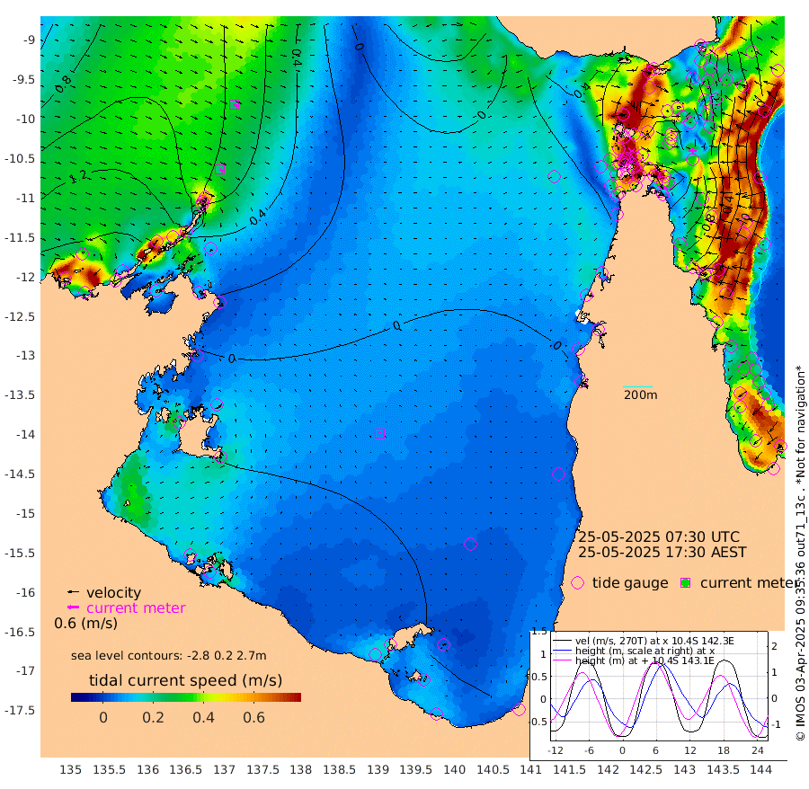 21cm/s 126T +3cm/s rms + 7cm/s -42T. ARA-GOC87 57m 7cm/s -34T +3cm/s rms + 2cm/s -2T. ARA-GOC87 60m 23cm/s 119T +2cm/s rms + 3cm/s 61T. ARA-GOC87 47m -100cm Daru -86cm Bobo Island 1cm Meer Island Barge -25cm Bramble Cay -72cm Unnamed Cay -62cm Pearce Cay -50cm Stephens Island -63cm Merrie England Shoals -104cm Mutacomal Reef -45cm Darnley Island Barge -1cm East Cay -75cm Yorke Island Barge -77cm Rennel Island -81cm Aureed Island -101cm Dungeness Reef -133cm Zagai Island -138cm Yam Island -123cm Dauan Island -131cm Saibai Island -128cm Phipi Reef -139cm Warrior Reef - West -102cm Mabuiag Island Barge -78cm Half Way Island -102cm Coconut Island -98cm Dugong Islet -119cm Poll Island -117cm Kirkcaldie Reef -139cm Suarji Island -124cm Sue Islet -17cm Hawkesbury Island -116cm Alert Patches -121cm Twin Island -28cm Badu Island -134cm St Pauls (Moa Island) -48cm Kubin (Moa Island) -97cm Ince Point -79cm Thursday Island -85cm Nardana Patches -47cm Turtle Head -40cm Round Island 2cm Goods Island 25cm Booby Island 14cm White Rocks Area 16cm Carpentaria -110cm Papou Point 9cm Bampfield Head 30cm Crab Island 14cm Red Wallis Island -27cm Packe Island -108cm Harrington Reef -23cm Herald Camp -53cm Sharp Point -43cm Red Island Point -85cm Possession Island -122cm Alpha Rock -116cm Frederick Point -105cm Wyborn Reef Light -113cm Tetley Island -16cm Triangle Reef -87cm Turtle Head Island -8cm Maclennan Cay 29cm Raine Island -60cm Mcsweeny Reef -48cm Collette Reef -7cm Shadwell Reef -48cm Hannibal Island -21cm Round Point 35cm Vrilya Point -21cm Cape Grenville -10cm Hicks Island -16cm Sir Charles Hardy Island -7cm Harvey Island 1cm Kay Reef 14cm Rocky Island 25cm Chapman Island 23cm Ham Reef 18cm Jubilee Reef 13cm Night Island 25cm Unnamed Reef No. 3 20cm Morris Island 25cm 1st 3 Mile Opening 20cm Creech Reef 26cm Fife Island 36cm Eden Reef 20cm Stanley Island 20cm Normanby River 135cm Yabooma Island 151cm Hutchison River 141cm Elcho Island 129cm North West Crocodile Island 73cm Cape Wessel 114cm Stevens Island 51cm Guluwuru Island 111cm Hopeful Bay 91cm Auster Point 90cm Two Island Bay 124cm Cadell Strait 16cm Mallison Island 52cm Melville Bay (Gove Harbour) 56cm Truant Island 30cm Cape Arnhem 9cm Cape Grey 0cm Hawk Island -14cm Milner Bay (Groote Eylandt) -16cm Cape Beatrice -50cm West Island -49cm Centre Island -44cm Mornington Island -45cm West Wellesley Islands -54cm Bountiful Island -22cm Albert River Mouth -24cm Sweers Island -29cm Karumba -31cm Nassau River Offshore -20cm Christmas Creek 17cm Archer River 13cm Boyd Point 24cm Weipa (Humbug Point) 32cm Pennefather River 20cm Cullen Point