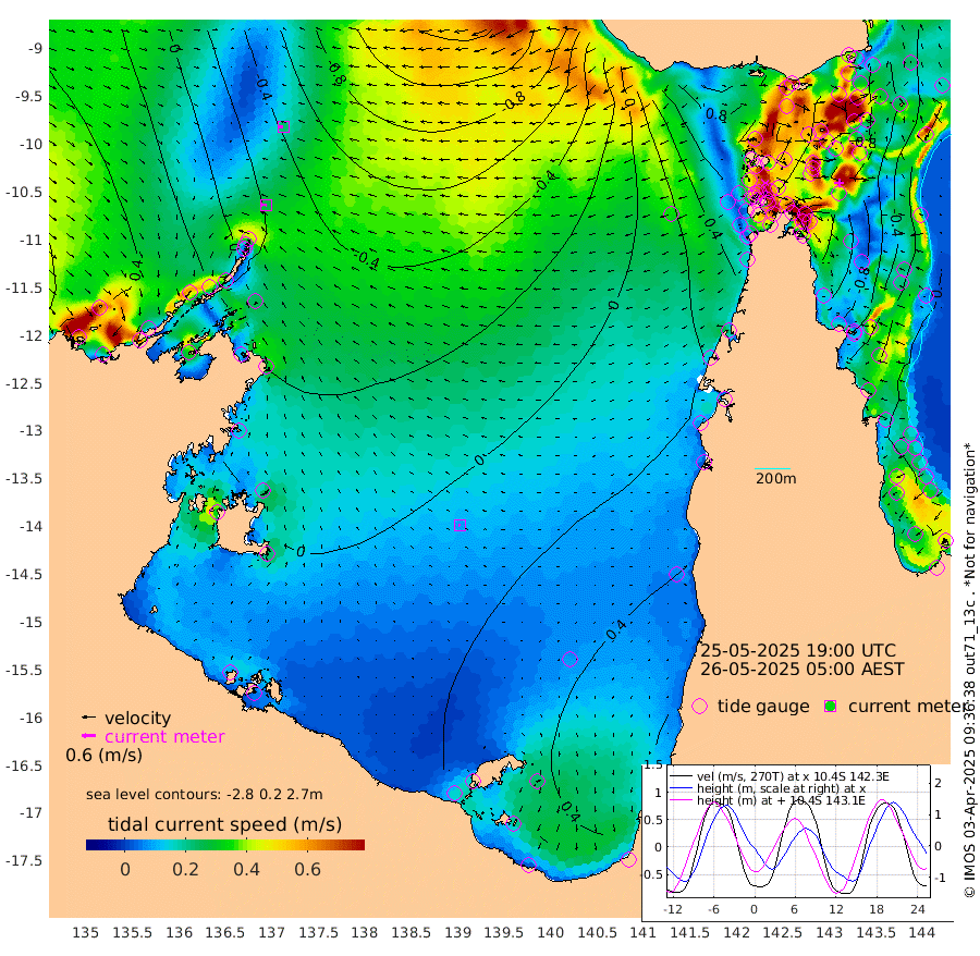 27cm/s -85T +3cm/s rms + 7cm/s -42T. ARA-GOC87 57m 8cm/s -101T +3cm/s rms + 2cm/s -2T. ARA-GOC87 60m 23cm/s -94T +2cm/s rms + 3cm/s 61T. ARA-GOC87 47m -95cm Daru -96cm Bobo Island -27cm Meer Island Barge -52cm Bramble Cay -80cm Unnamed Cay -85cm Pearce Cay -72cm Stephens Island -84cm Merrie England Shoals -97cm Mutacomal Reef -65cm Darnley Island Barge -25cm East Cay -81cm Yorke Island Barge -82cm Rennel Island -85cm Aureed Island -85cm Dungeness Reef -84cm Zagai Island -75cm Yam Island -27cm Dauan Island -30cm Saibai Island -36cm Phipi Reef -73cm Warrior Reef - West -24cm Mabuiag Island Barge -90cm Half Way Island -97cm Coconut Island -92cm Dugong Islet -90cm Poll Island -90cm Kirkcaldie Reef -71cm Suarji Island -85cm Sue Islet 36cm Hawkesbury Island -69cm Alert Patches -76cm Twin Island 21cm Badu Island -76cm St Pauls (Moa Island) 4cm Kubin (Moa Island) -45cm Ince Point -28cm Thursday Island -32cm Nardana Patches 2cm Turtle Head 24cm Round Island 40cm Goods Island 57cm Booby Island 49cm White Rocks Area 32cm Carpentaria -65cm Papou Point 63cm Bampfield Head 41cm Crab Island 46cm Red Wallis Island 18cm Packe Island -107cm Harrington Reef 64cm Herald Camp -28cm Sharp Point 1cm Red Island Point -34cm Possession Island -77cm Alpha Rock -89cm Frederick Point -101cm Wyborn Reef Light -101cm Tetley Island -29cm Triangle Reef -109cm Turtle Head Island -23cm Maclennan Cay 0cm Raine Island -74cm Mcsweeny Reef -63cm Collette Reef -27cm Shadwell Reef -71cm Hannibal Island -51cm Round Point 28cm Vrilya Point -41cm Cape Grenville -30cm Hicks Island -16cm Sir Charles Hardy Island -13cm Harvey Island -23cm Kay Reef -5cm Rocky Island 5cm Chapman Island 3cm Ham Reef -8cm Jubilee Reef -13cm Night Island -1cm Unnamed Reef No. 3 -9cm Morris Island -3cm 1st 3 Mile Opening -8cm Creech Reef -9cm Fife Island -5cm Eden Reef -9cm Stanley Island -13cm Normanby River 55cm Yabooma Island 36cm Hutchison River 38cm Elcho Island 41cm North West Crocodile Island -7cm Cape Wessel 9cm Stevens Island -42cm Guluwuru Island 29cm Hopeful Bay 4cm Auster Point 2cm Two Island Bay -7cm Cadell Strait -108cm Mallison Island -24cm Melville Bay (Gove Harbour) -30cm Truant Island -25cm Cape Arnhem -14cm Cape Grey -11cm Hawk Island -2cm Milner Bay (Groote Eylandt) 0cm Cape Beatrice 6cm West Island 4cm Centre Island 27cm Mornington Island 29cm West Wellesley Islands 76cm Bountiful Island 62cm Albert River Mouth 63cm Sweers Island 68cm Karumba 44cm Nassau River Offshore 45cm Christmas Creek 44cm Archer River 38cm Boyd Point 61cm Weipa (Humbug Point) 10cm Pennefather River 46cm Cullen Point