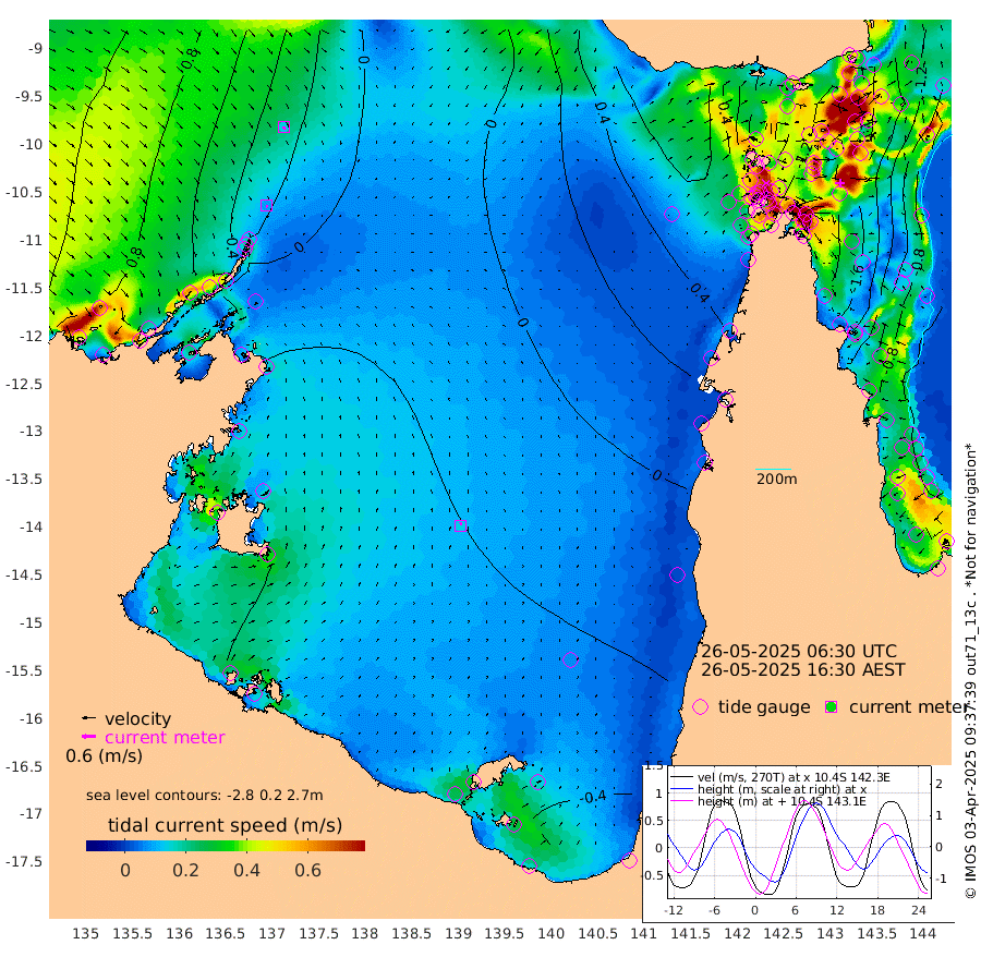 9cm/s 171T +3cm/s rms + 7cm/s -42T. ARA-GOC87 57m 14cm/s 4T +3cm/s rms + 2cm/s -2T. ARA-GOC87 60m 13cm/s 159T +2cm/s rms + 3cm/s 61T. ARA-GOC87 47m -171cm Daru -167cm Bobo Island -89cm Meer Island Barge -122cm Bramble Cay -159cm Unnamed Cay -153cm Pearce Cay -146cm Stephens Island -154cm Merrie England Shoals -173cm Mutacomal Reef -137cm Darnley Island Barge -98cm East Cay -153cm Yorke Island Barge -156cm Rennel Island -158cm Aureed Island -161cm Dungeness Reef -148cm Zagai Island -149cm Yam Island -99cm Dauan Island -98cm Saibai Island -128cm Phipi Reef -155cm Warrior Reef - West -62cm Mabuiag Island Barge -154cm Half Way Island -160cm Coconut Island -164cm Dugong Islet -151cm Poll Island -156cm Kirkcaldie Reef -149cm Suarji Island -147cm Sue Islet 17cm Hawkesbury Island -118cm Alert Patches -125cm Twin Island 4cm Badu Island -126cm St Pauls (Moa Island) -30cm Kubin (Moa Island) -84cm Ince Point -59cm Thursday Island -66cm Nardana Patches -33cm Turtle Head -20cm Round Island 21cm Goods Island 61cm Booby Island 45cm White Rocks Area 68cm Carpentaria -106cm Papou Point 32cm Bampfield Head 63cm Crab Island 52cm Red Wallis Island -11cm Packe Island -175cm Harrington Reef 3cm Herald Camp -41cm Sharp Point -25cm Red Island Point -83cm Possession Island -125cm Alpha Rock -146cm Frederick Point -167cm Wyborn Reef Light -164cm Tetley Island -86cm Triangle Reef -161cm Turtle Head Island -90cm Maclennan Cay -53cm Raine Island -143cm Mcsweeny Reef -131cm Collette Reef -87cm Shadwell Reef -144cm Hannibal Island -121cm Round Point 76cm Vrilya Point -112cm Cape Grenville -103cm Hicks Island -108cm Sir Charles Hardy Island -36cm Harvey Island -92cm Kay Reef -74cm Rocky Island -59cm Chapman Island -57cm Ham Reef -67cm Jubilee Reef -68cm Night Island -57cm Unnamed Reef No. 3 -74cm Morris Island -63cm 1st 3 Mile Opening -68cm Creech Reef -68cm Fife Island -74cm Eden Reef -74cm Stanley Island -84cm Normanby River 63cm Yabooma Island 49cm Hutchison River 64cm Elcho Island 62cm North West Crocodile Island 16cm Cape Wessel 43cm Stevens Island -33cm Guluwuru Island 43cm Hopeful Bay 28cm Auster Point 28cm Two Island Bay 26cm Cadell Strait -84cm Mallison Island -20cm Melville Bay (Gove Harbour) -18cm Truant Island -21cm Cape Arnhem -23cm Cape Grey -25cm Hawk Island -11cm Milner Bay (Groote Eylandt) -14cm Cape Beatrice -18cm West Island -17cm Centre Island -56cm Mornington Island -53cm West Wellesley Islands -75cm Bountiful Island -44cm Albert River Mouth -44cm Sweers Island -51cm Karumba -50cm Nassau River Offshore -41cm Christmas Creek 9cm Archer River 16cm Boyd Point 21cm Weipa (Humbug Point) 48cm Pennefather River 52cm Cullen Point