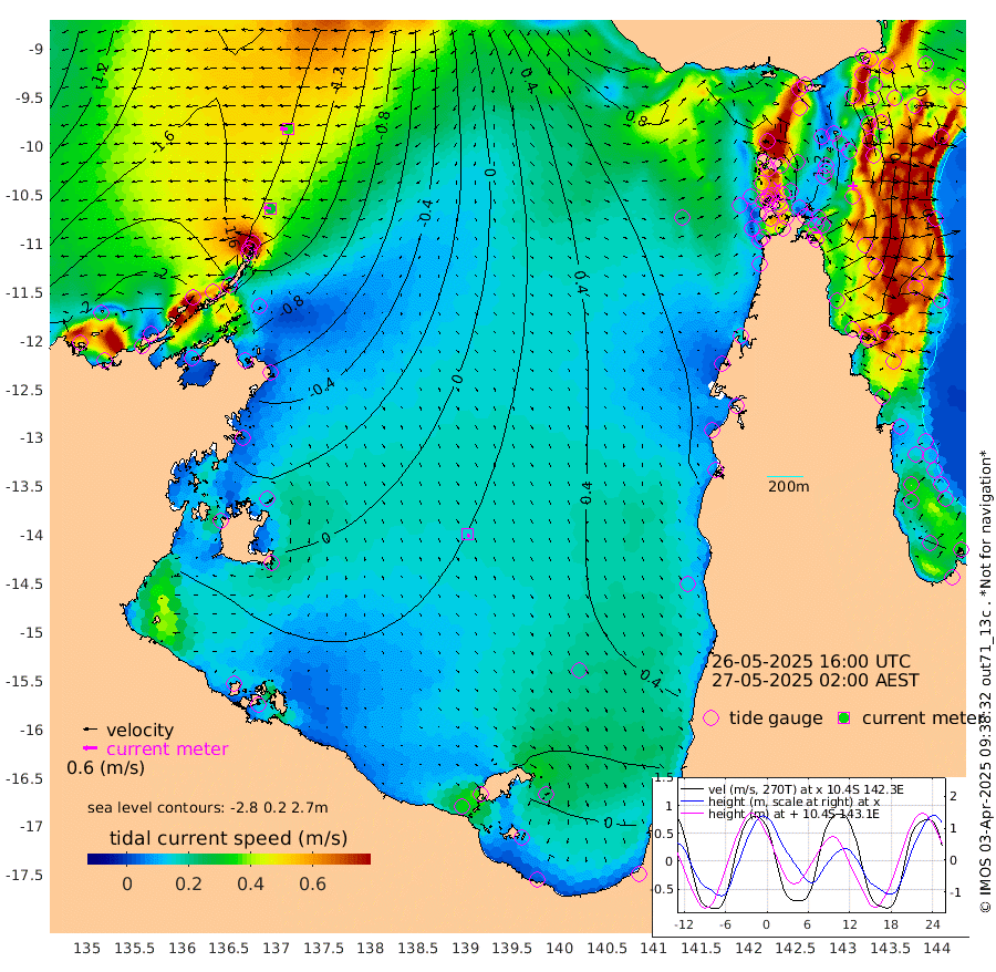 30cm/s -82T +3cm/s rms + 7cm/s -42T. ARA-GOC87 57m 15cm/s 156T +3cm/s rms + 2cm/s -2T. ARA-GOC87 60m 36cm/s -91T +2cm/s rms + 3cm/s 61T. ARA-GOC87 47m 33cm Daru 11cm Bobo Island -30cm Meer Island Barge -29cm Bramble Cay 5cm Unnamed Cay -5cm Pearce Cay -11cm Stephens Island -6cm Merrie England Shoals 30cm Mutacomal Reef -8cm Darnley Island Barge -36cm East Cay 16cm Yorke Island Barge 17cm Rennel Island 21cm Aureed Island 50cm Dungeness Reef 97cm Zagai Island 98cm Yam Island 144cm Dauan Island 140cm Saibai Island 134cm Phipi Reef 106cm Warrior Reef - West 127cm Mabuiag Island Barge 15cm Half Way Island 47cm Coconut Island 36cm Dugong Islet 73cm Poll Island 69cm Kirkcaldie Reef 120cm Suarji Island 83cm Sue Islet 94cm Hawkesbury Island 114cm Alert Patches 104cm Twin Island 106cm Badu Island 122cm St Pauls (Moa Island) 98cm Kubin (Moa Island) 113cm Ince Point 115cm Thursday Island 116cm Nardana Patches 109cm Turtle Head 105cm Round Island 93cm Goods Island 98cm Booby Island 91cm White Rocks Area 102cm Carpentaria 94cm Papou Point 117cm Bampfield Head 81cm Crab Island 96cm Red Wallis Island 98cm Packe Island 40cm Harrington Reef 118cm Herald Camp 46cm Sharp Point 85cm Red Island Point 104cm Possession Island 94cm Alpha Rock 76cm Frederick Point 37cm Wyborn Reef Light 49cm Tetley Island -8cm Triangle Reef 22cm Turtle Head Island -18cm Maclennan Cay -34cm Raine Island 5cm Mcsweeny Reef 0cm Collette Reef -15cm Shadwell Reef -10cm Hannibal Island -31cm Round Point 77cm Vrilya Point -21cm Cape Grenville -27cm Hicks Island -15cm Sir Charles Hardy Island -6cm Harvey Island -34cm Kay Reef -33cm Rocky Island -34cm Chapman Island -32cm Ham Reef -33cm Jubilee Reef -28cm Night Island -33cm Unnamed Reef No. 3 -39cm Morris Island -26cm 1st 3 Mile Opening -32cm Creech Reef -43cm Fife Island -57cm Eden Reef -38cm Stanley Island -56cm Normanby River -223cm Yabooma Island -262cm Hutchison River -233cm Elcho Island -226cm North West Crocodile Island -152cm Cape Wessel -210cm Stevens Island -134cm Guluwuru Island -192cm Hopeful Bay -166cm Auster Point -179cm Two Island Bay -239cm Cadell Strait -99cm Mallison Island -125cm Melville Bay (Gove Harbour) -128cm Truant Island -76cm Cape Arnhem -51cm Cape Grey -39cm Hawk Island -16cm Milner Bay (Groote Eylandt) -11cm Cape Beatrice 31cm West Island 38cm Centre Island 27cm Mornington Island 34cm West Wellesley Islands 20cm Bountiful Island -21cm Albert River Mouth -27cm Sweers Island -11cm Karumba 36cm Nassau River Offshore 56cm Christmas Creek 51cm Archer River 65cm Boyd Point 62cm Weipa (Humbug Point) 54cm Pennefather River 82cm Cullen Point