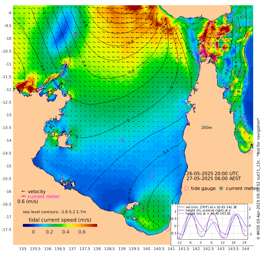 33cm/s -84T +3cm/s rms + 7cm/s -42T. ARA-GOC87 57m 12cm/s -102T +3cm/s rms + 2cm/s -2T. ARA-GOC87 60m 28cm/s -92T +2cm/s rms + 3cm/s 61T. ARA-GOC87 47m -82cm Daru -84cm Bobo Island -20cm Meer Island Barge -39cm Bramble Cay -66cm Unnamed Cay -73cm Pearce Cay -59cm Stephens Island -67cm Merrie England Shoals -82cm Mutacomal Reef -55cm Darnley Island Barge -15cm East Cay -72cm Yorke Island Barge -69cm Rennel Island -75cm Aureed Island -74cm Dungeness Reef -82cm Zagai Island -71cm Yam Island -33cm Dauan Island -39cm Saibai Island -31cm Phipi Reef -69cm Warrior Reef - West -32cm Mabuiag Island Barge -78cm Half Way Island -86cm Coconut Island -81cm Dugong Islet -83cm Poll Island -81cm Kirkcaldie Reef -68cm Suarji Island -83cm Sue Islet 25cm Hawkesbury Island -66cm Alert Patches -74cm Twin Island 12cm Badu Island -76cm St Pauls (Moa Island) -2cm Kubin (Moa Island) -47cm Ince Point -32cm Thursday Island -35cm Nardana Patches -2cm Turtle Head 17cm Round Island 31cm Goods Island 43cm Booby Island 39cm White Rocks Area 11cm Carpentaria -66cm Papou Point 45cm Bampfield Head 31cm Crab Island 35cm Red Wallis Island 15cm Packe Island -95cm Harrington Reef 53cm Herald Camp -28cm Sharp Point -3cm Red Island Point -36cm Possession Island -75cm Alpha Rock -82cm Frederick Point -89cm Wyborn Reef Light -91cm Tetley Island -23cm Triangle Reef -99cm Turtle Head Island -15cm Maclennan Cay 6cm Raine Island -62cm Mcsweeny Reef -51cm Collette Reef -19cm Shadwell Reef -56cm Hannibal Island -37cm Round Point 15cm Vrilya Point -29cm Cape Grenville -20cm Hicks Island -9cm Sir Charles Hardy Island -9cm Harvey Island -12cm Kay Reef 3cm Rocky Island 11cm Chapman Island 8cm Ham Reef -2cm Jubilee Reef -5cm Night Island 6cm Unnamed Reef No. 3 0cm Morris Island 2cm 1st 3 Mile Opening -1cm Creech Reef -1cm Fife Island 4cm Eden Reef -1cm Stanley Island -3cm Normanby River 58cm Yabooma Island 44cm Hutchison River 46cm Elcho Island 50cm North West Crocodile Island -16cm Cape Wessel 12cm Stevens Island -50cm Guluwuru Island 32cm Hopeful Bay -1cm Auster Point -4cm Two Island Bay -9cm Cadell Strait -127cm Mallison Island -28cm Melville Bay (Gove Harbour) -38cm Truant Island -29cm Cape Arnhem -14cm Cape Grey -5cm Hawk Island 5cm Milner Bay (Groote Eylandt) 13cm Cape Beatrice 21cm West Island 18cm Centre Island 57cm Mornington Island 56cm West Wellesley Islands 112cm Bountiful Island 111cm Albert River Mouth 109cm Sweers Island 117cm Karumba 72cm Nassau River Offshore 63cm Christmas Creek 50cm Archer River 35cm Boyd Point 60cm Weipa (Humbug Point) 6cm Pennefather River 36cm Cullen Point